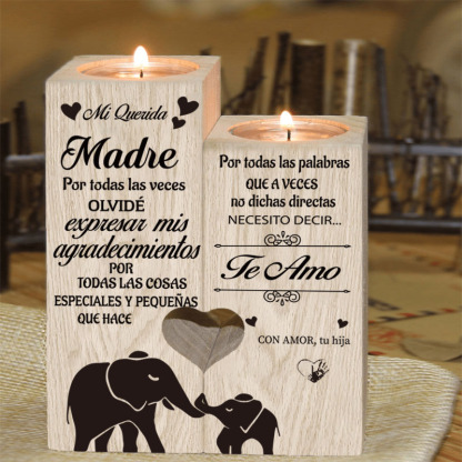 A mi querida madre(hija)-Candelero de madera de dos piezas sin candela