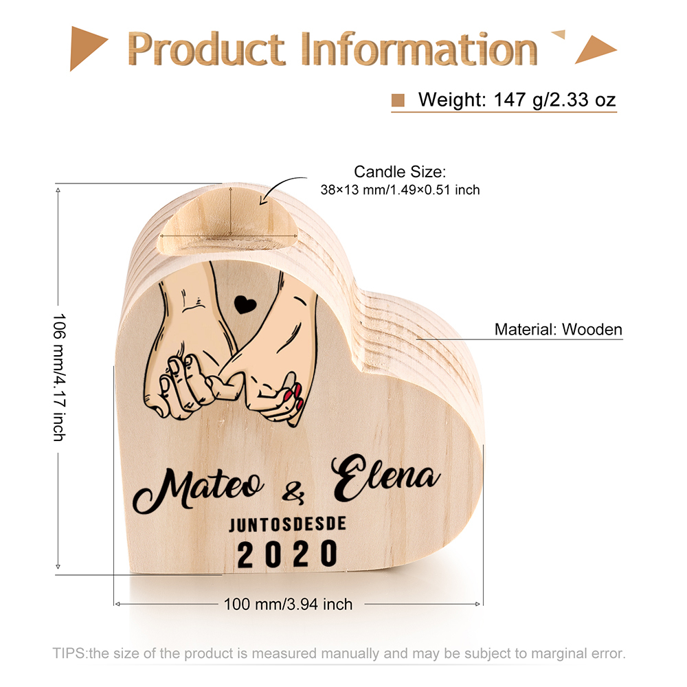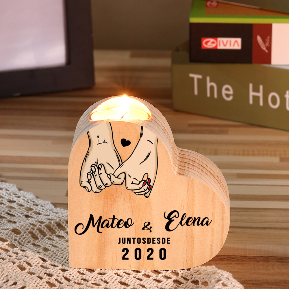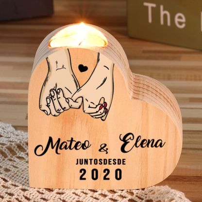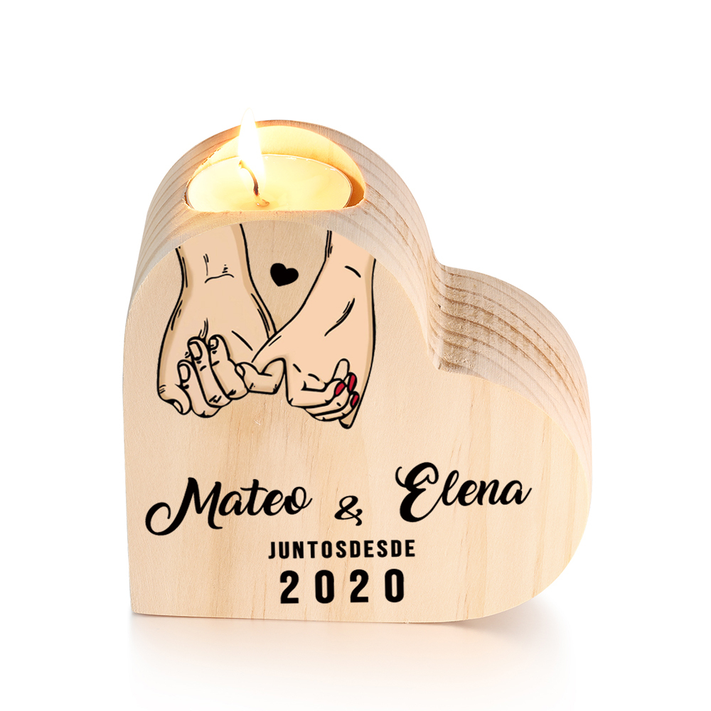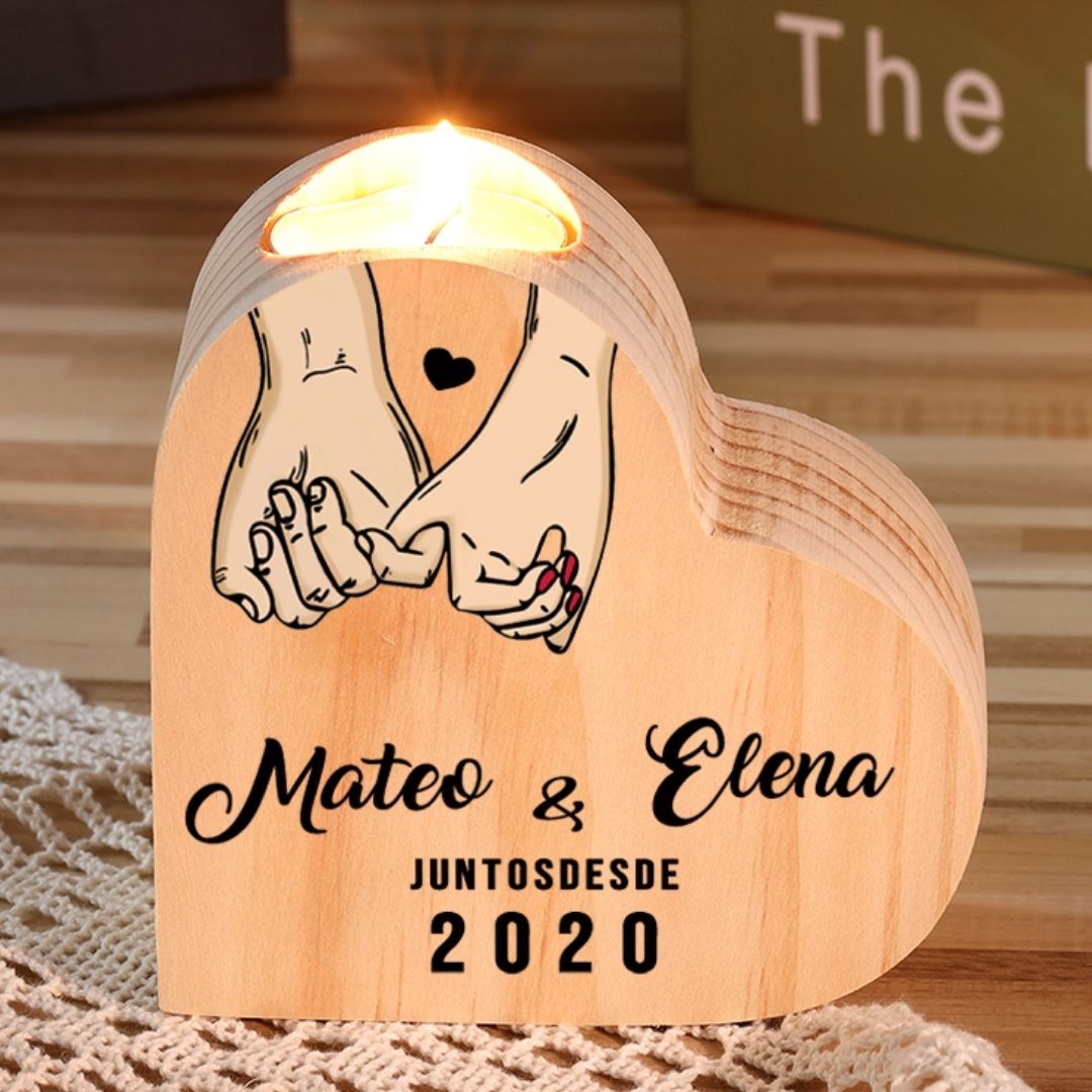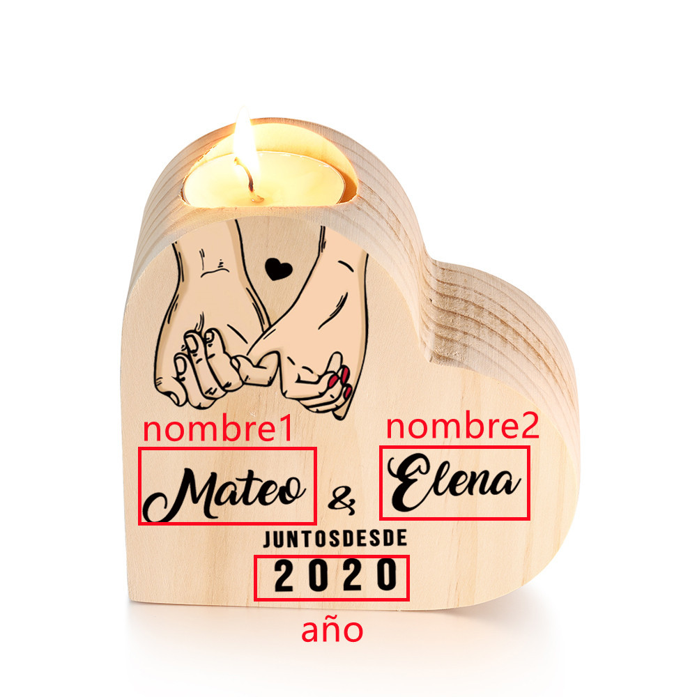 A mi querido/a-Candelero de corazón de madera personalizado con 2 nombres y año sin candela