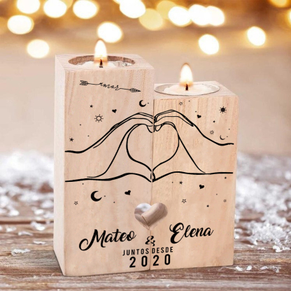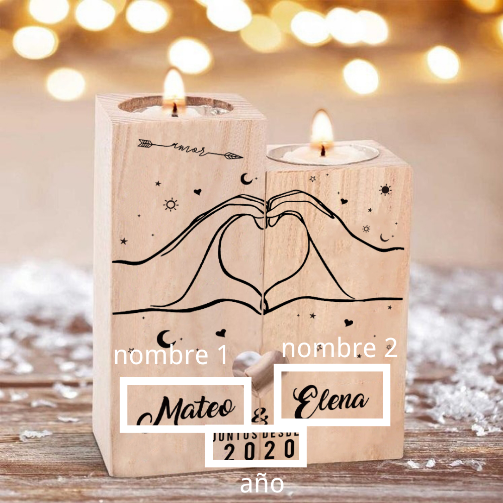 A mi querido/a-Candelero de madera de dos piezas sin candela con nombres y año personalizados