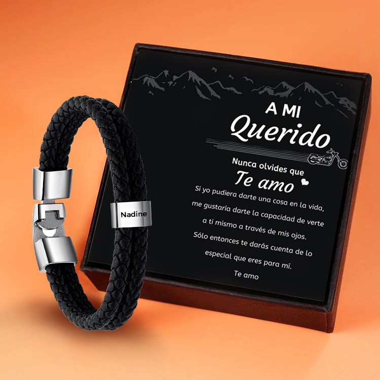 A mi querido-Pulsera de cuero trenzado 1 aro con 1 nombre personalizado pulsera de hombre