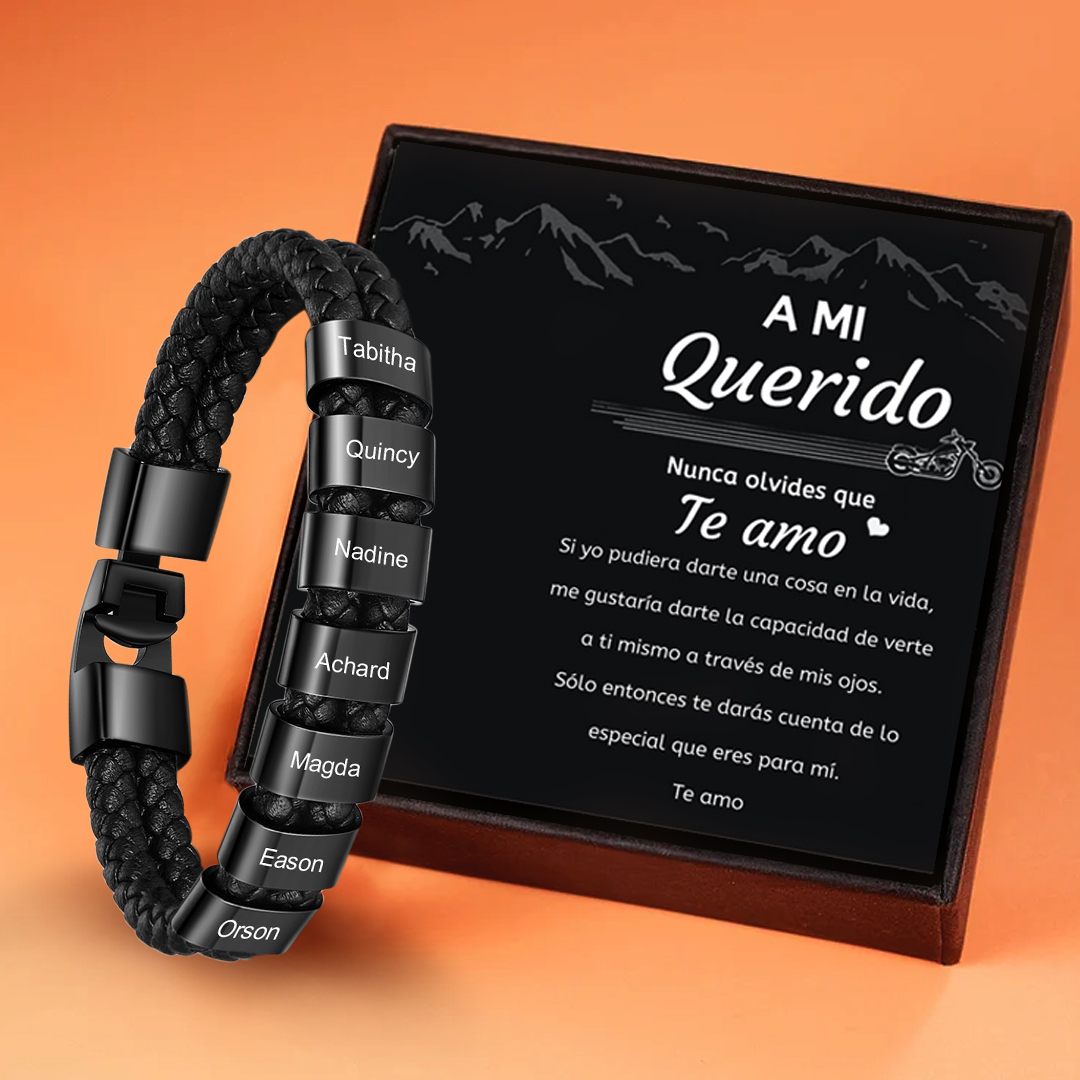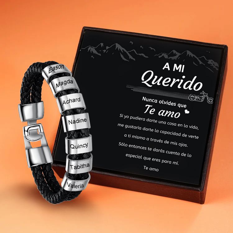 A mi querido-Pulsera de cuero trenzado Pulsera de hombre con 7 aros personalizados con 7 nombres