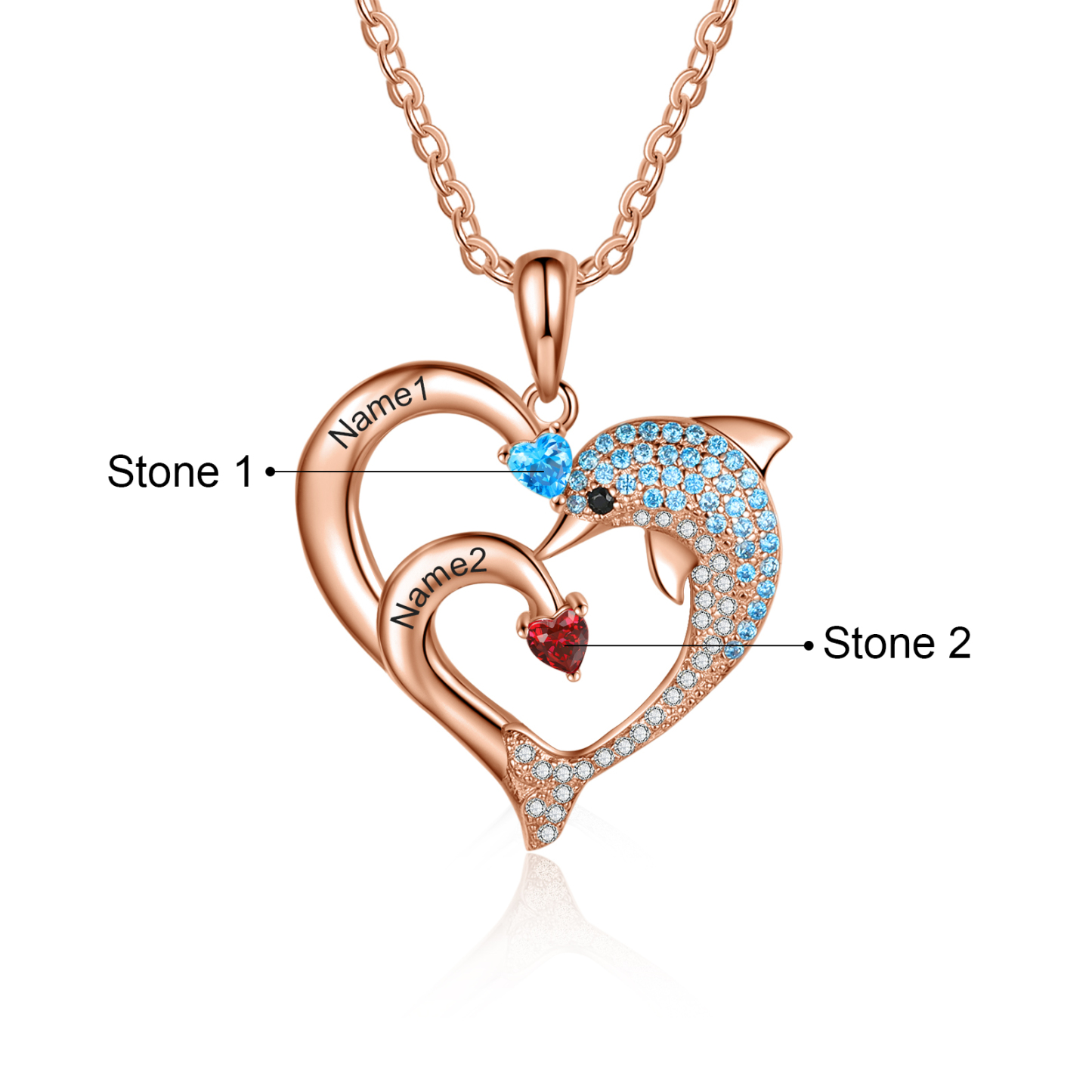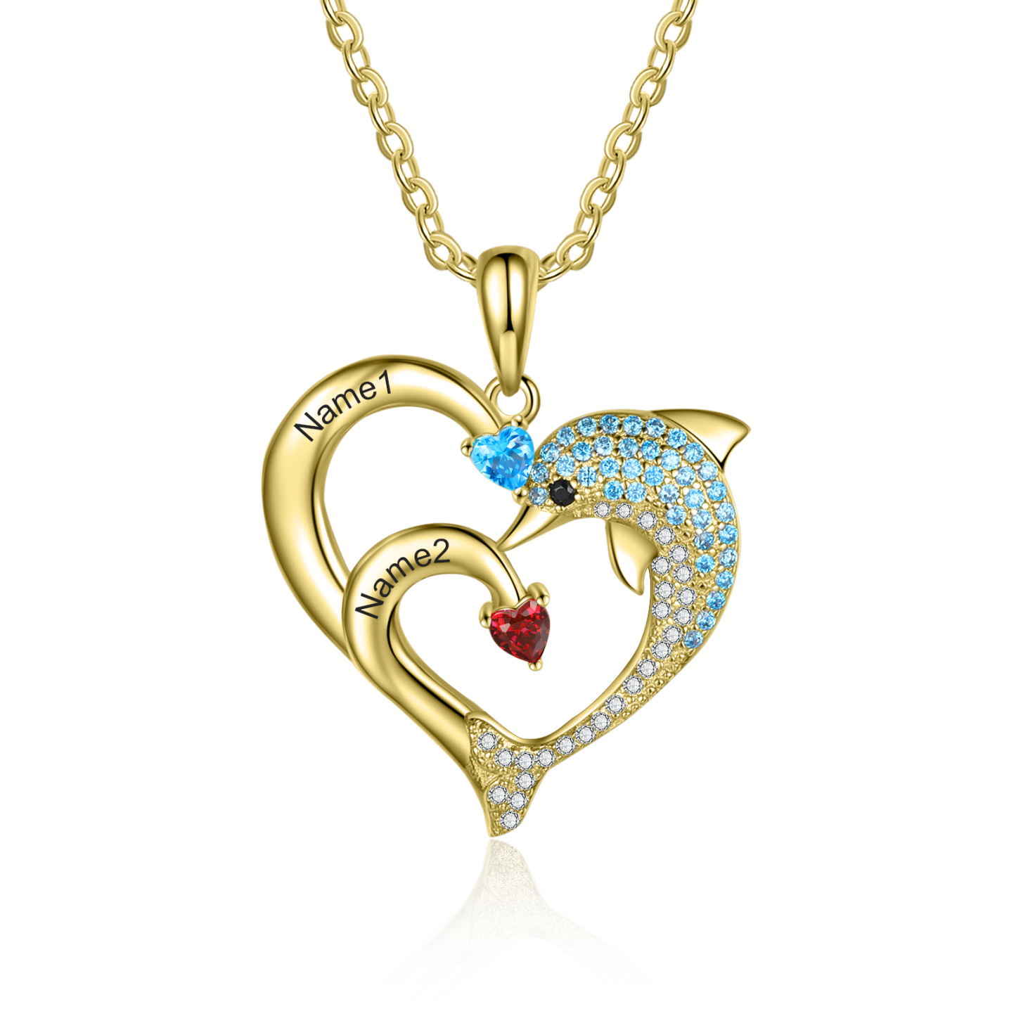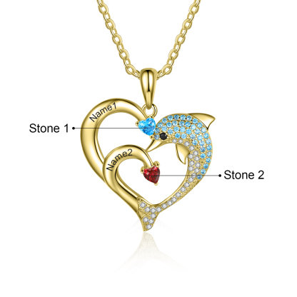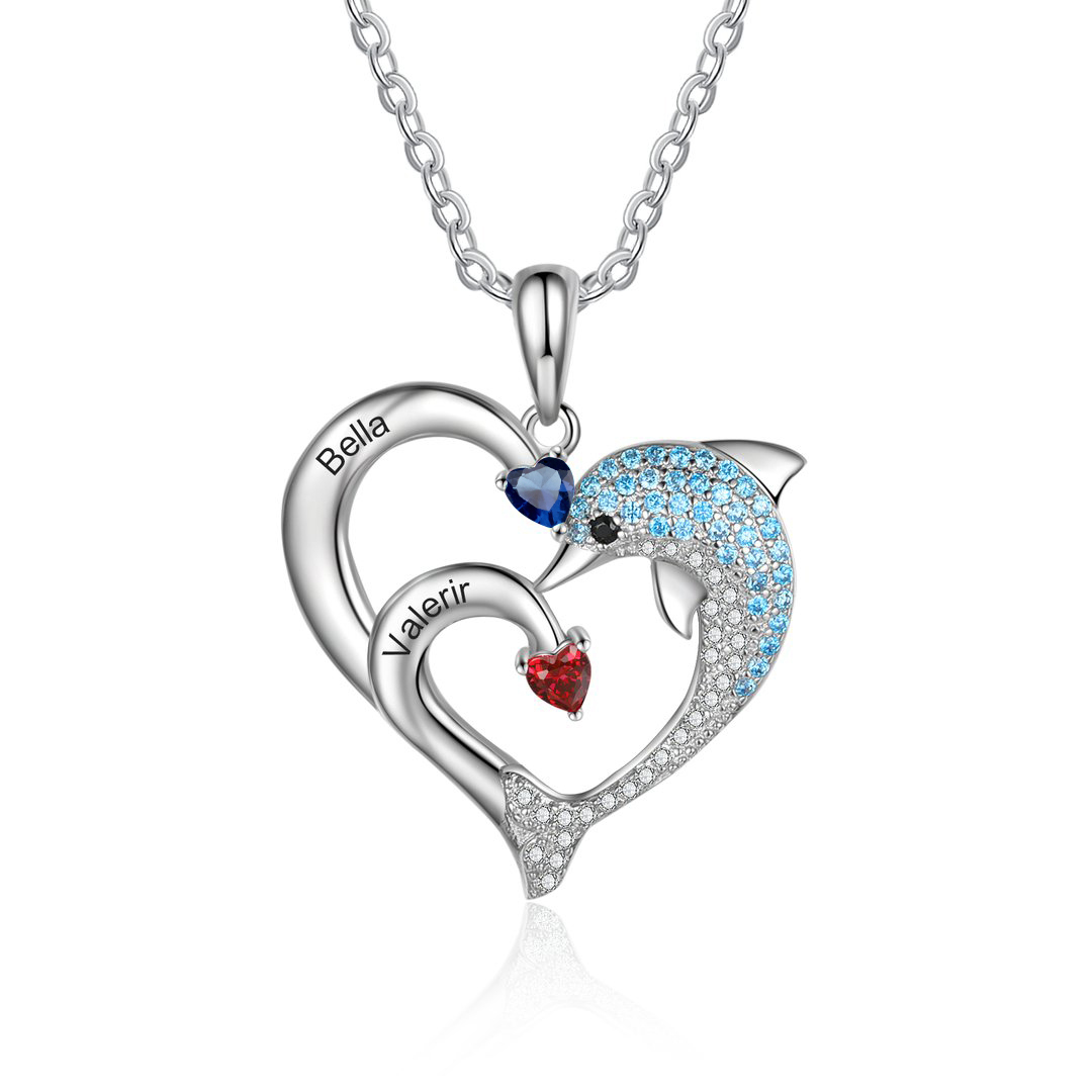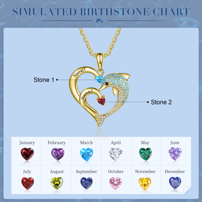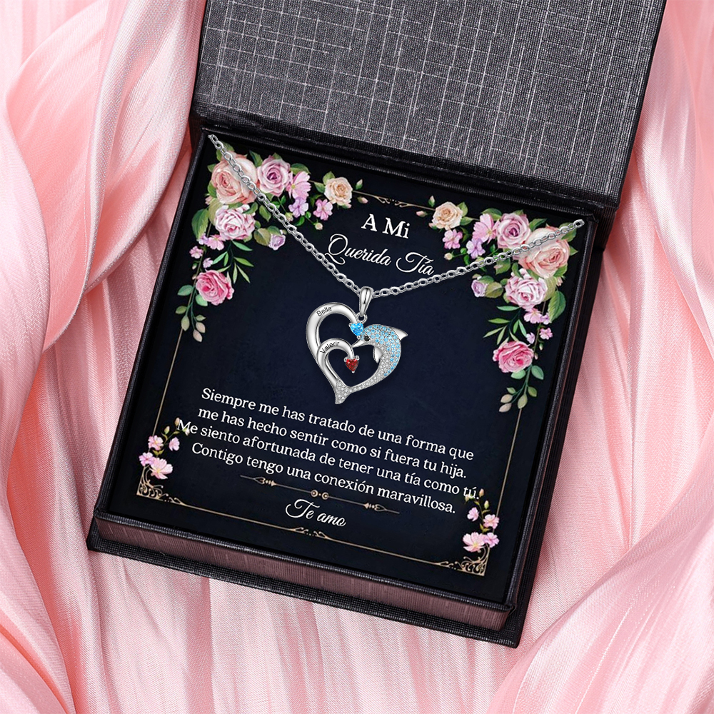 A mi tía-Collar en corazón delfín 2 nombres y 2 piedras de nacimiento personalizados