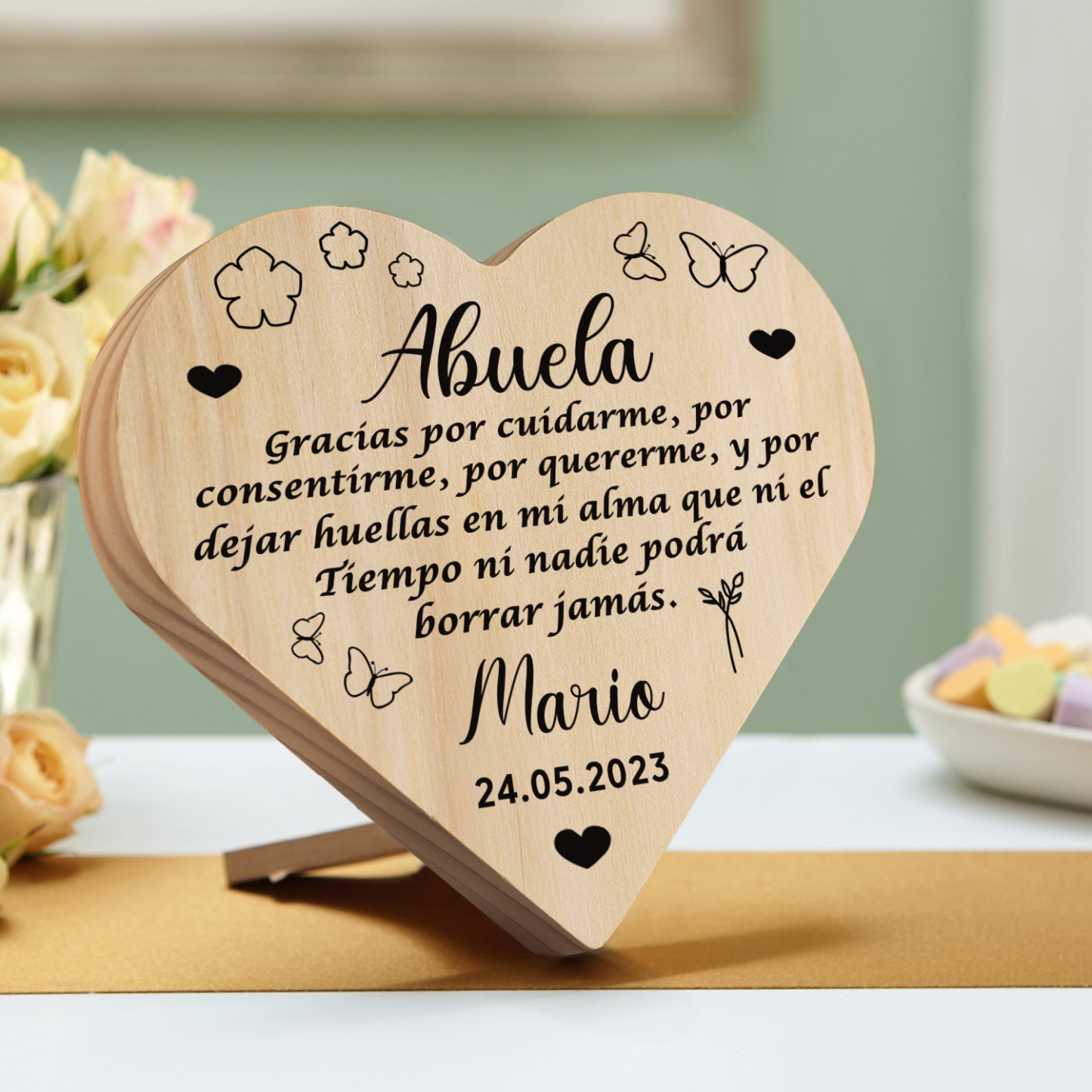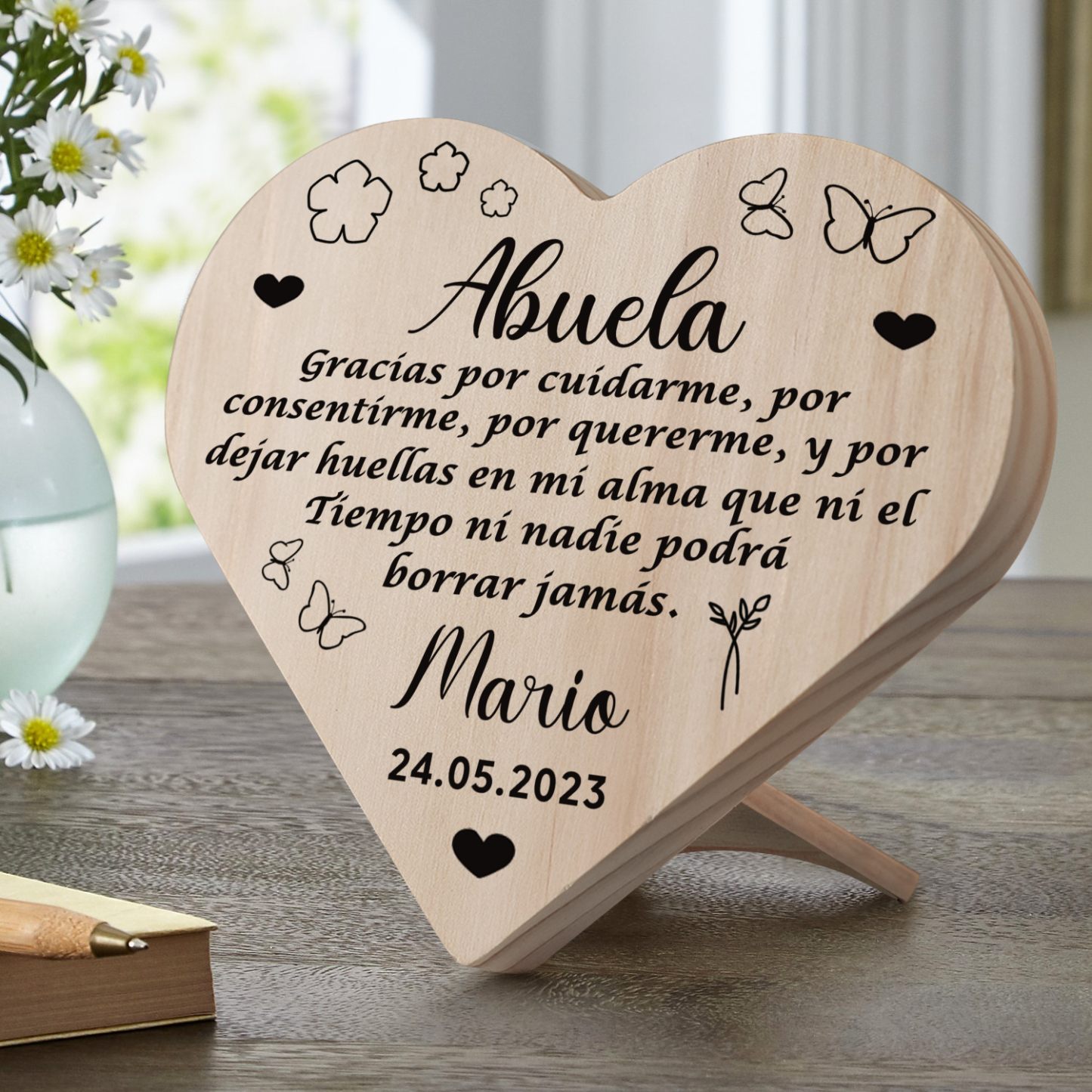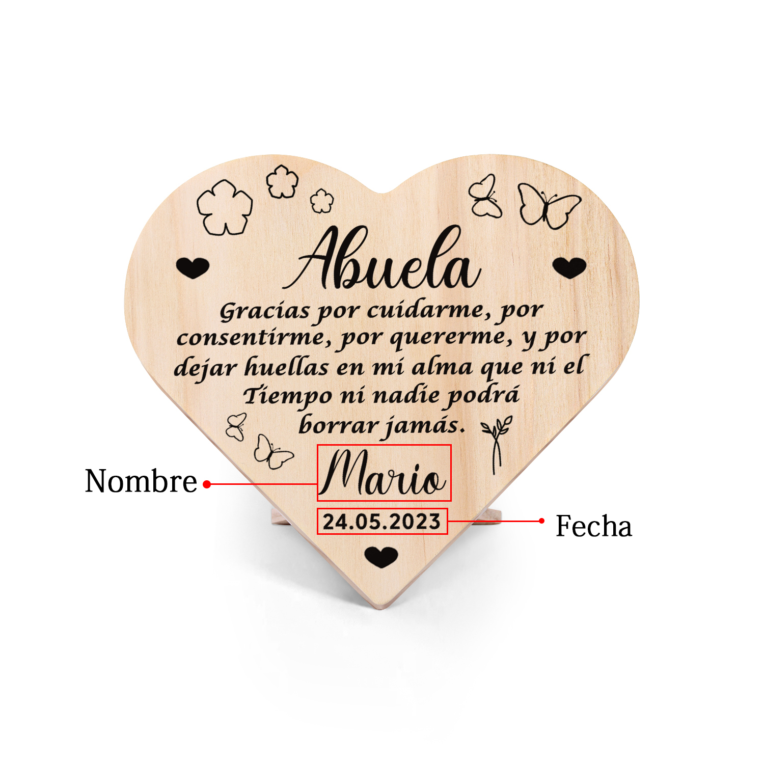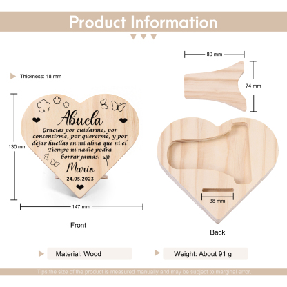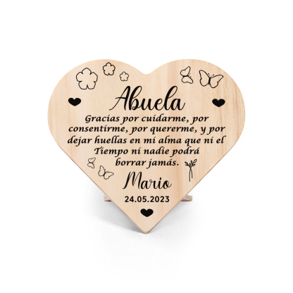 Adorno de madera en forma de corazón para mi abuela personalizado con 1 nombre y fecha