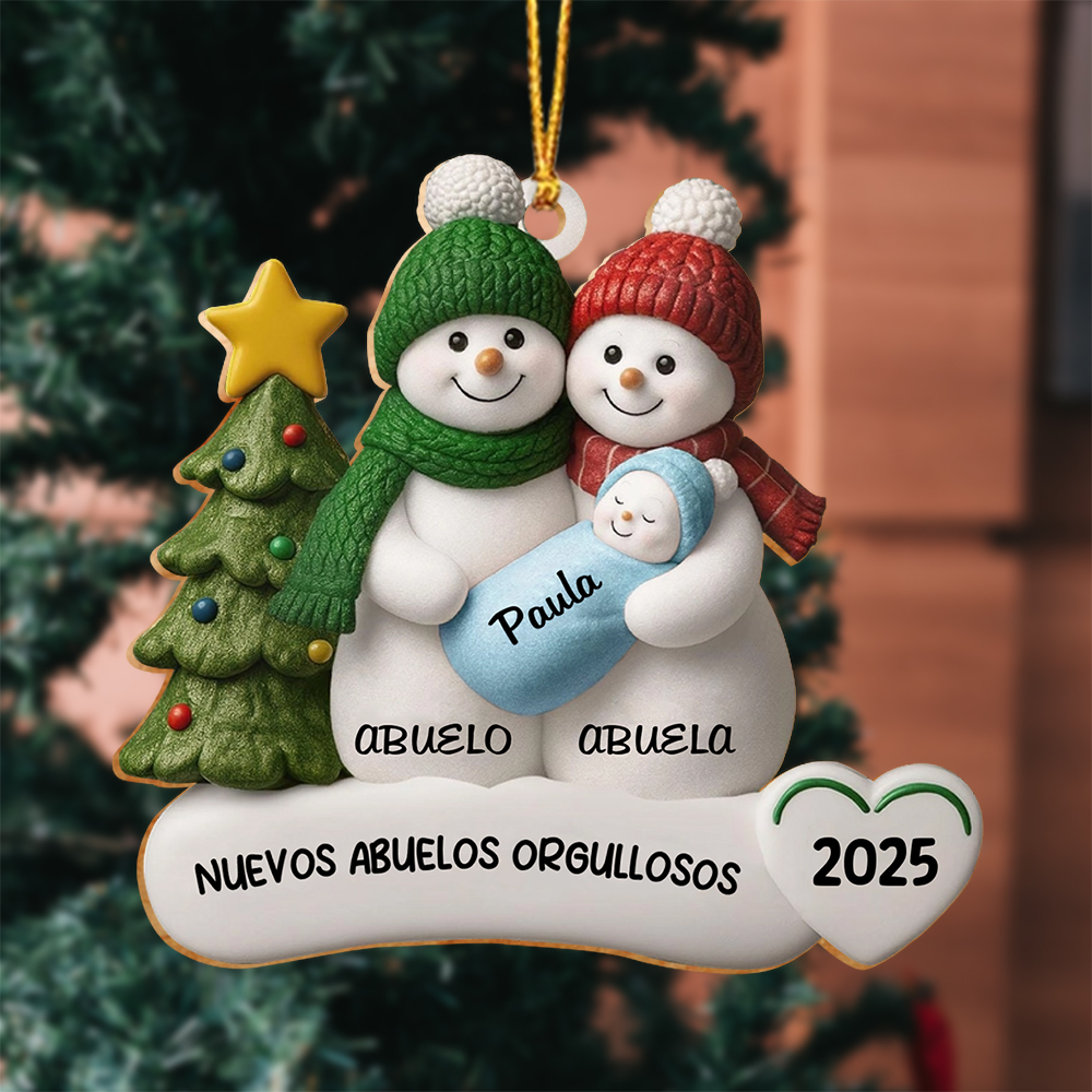 Palabras clave: adorno personalizado para abuelos, regalo para nuevos abuelos, decoración personalizada con nombre del bebé, recuerdo de Navidad 2025, regalo para abuelo y abuela, adorno para anuncio familiar, regalo de Navidad sentimental