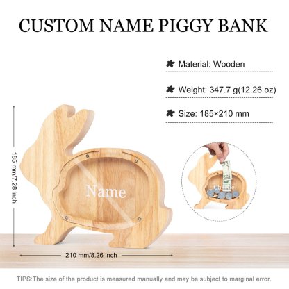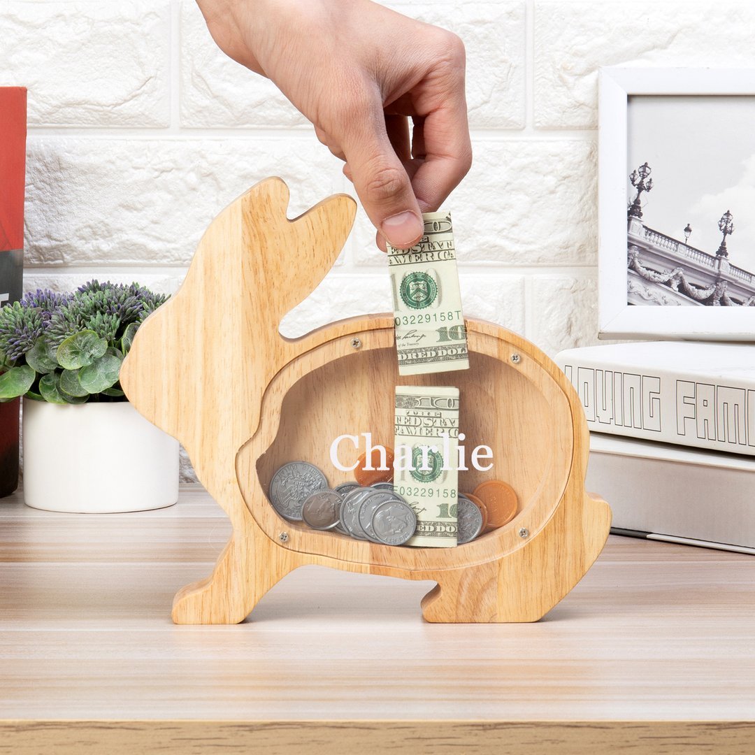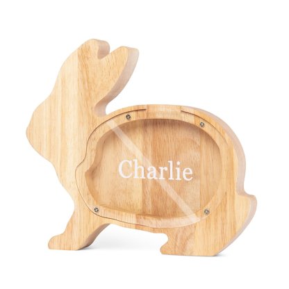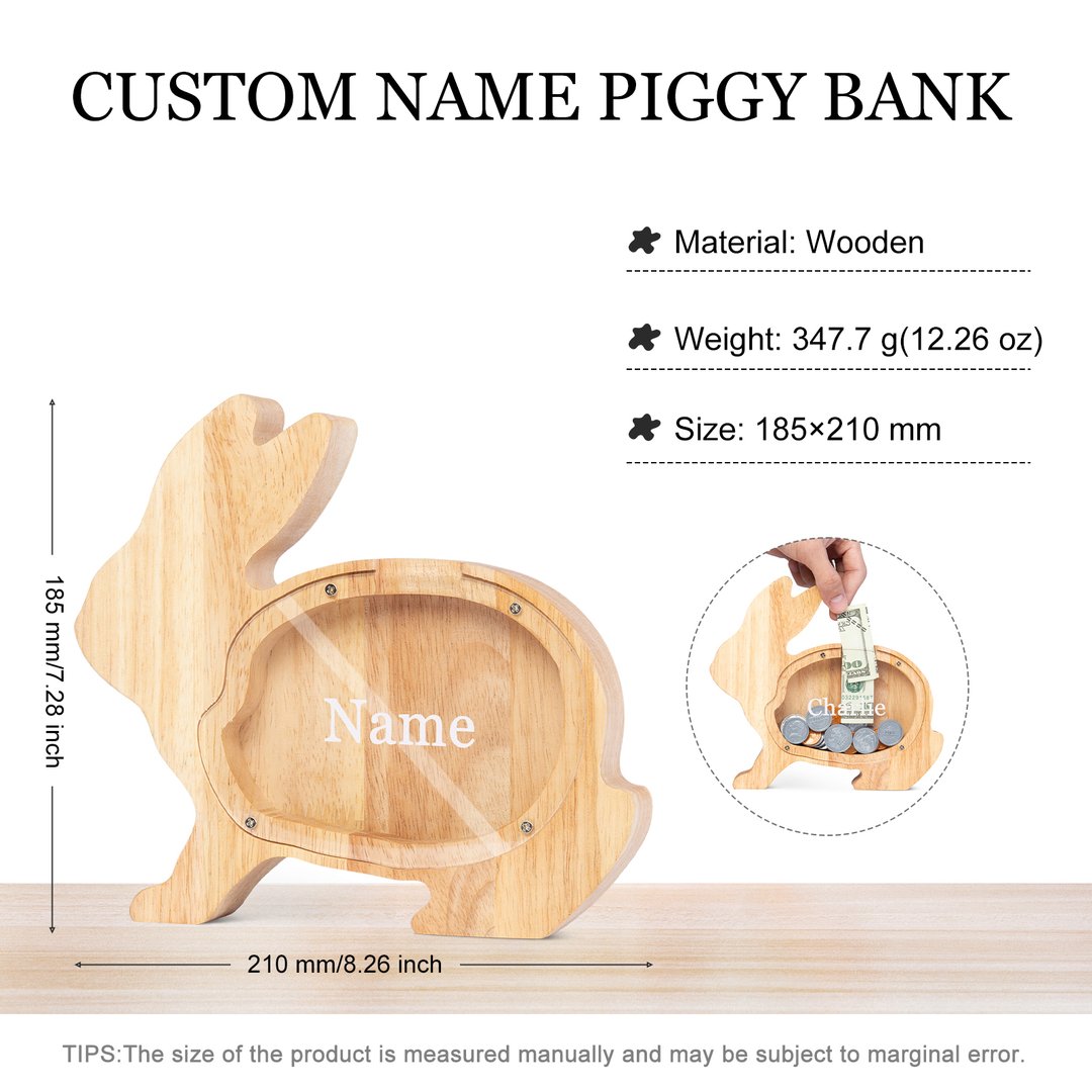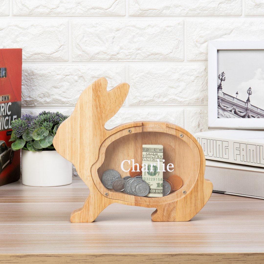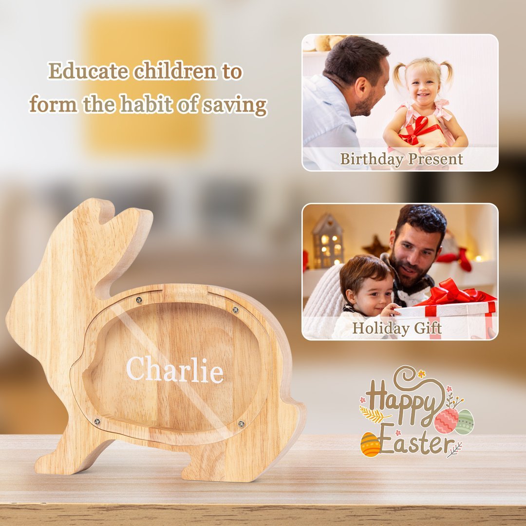 Alcancía de madera en forma de conejito personalizada con 1 nombre hucha