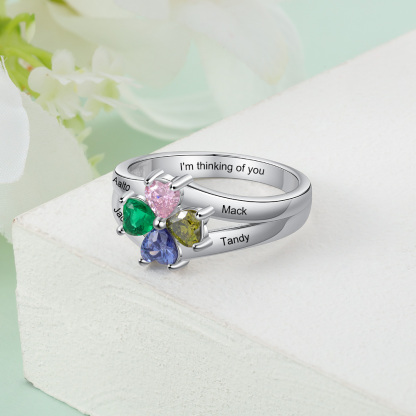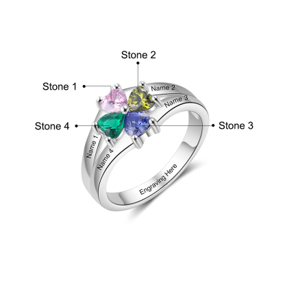 Anillo 4 Nombres Personalizados con 4 Piedras de Nacimiento con 1 Texto