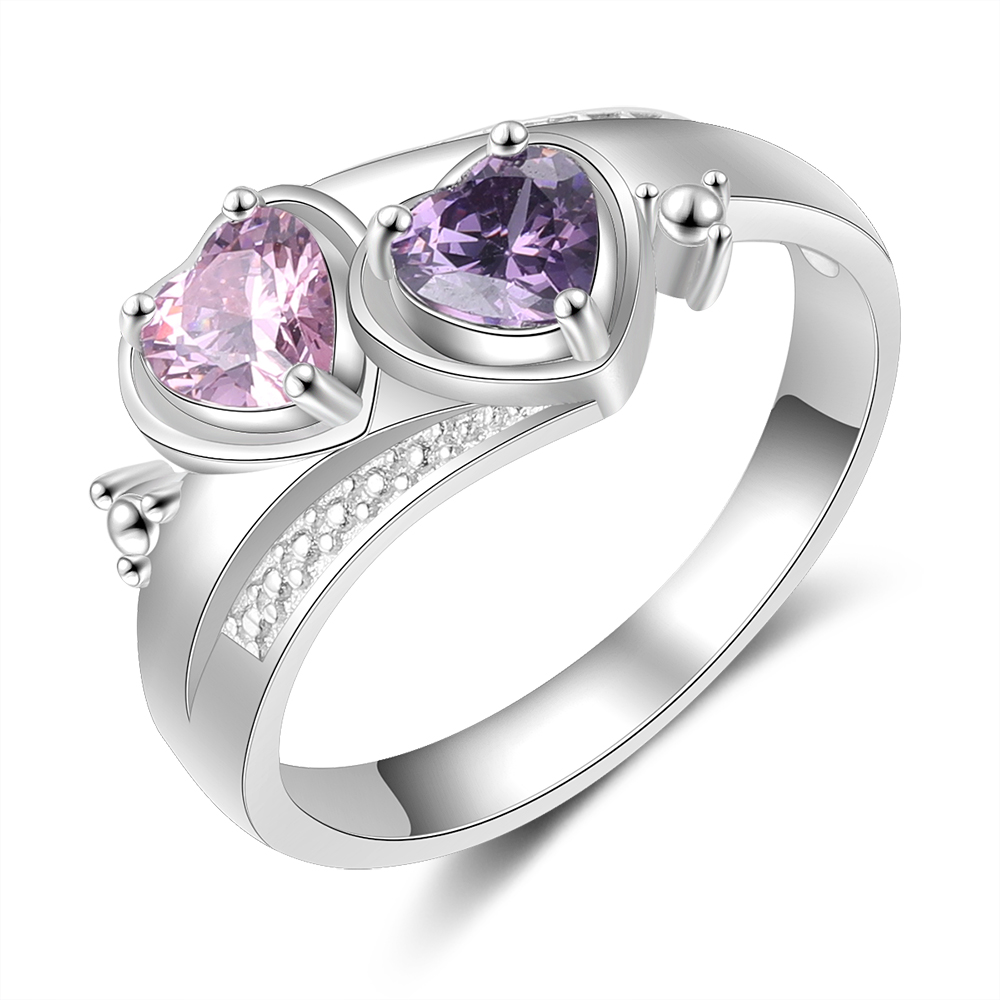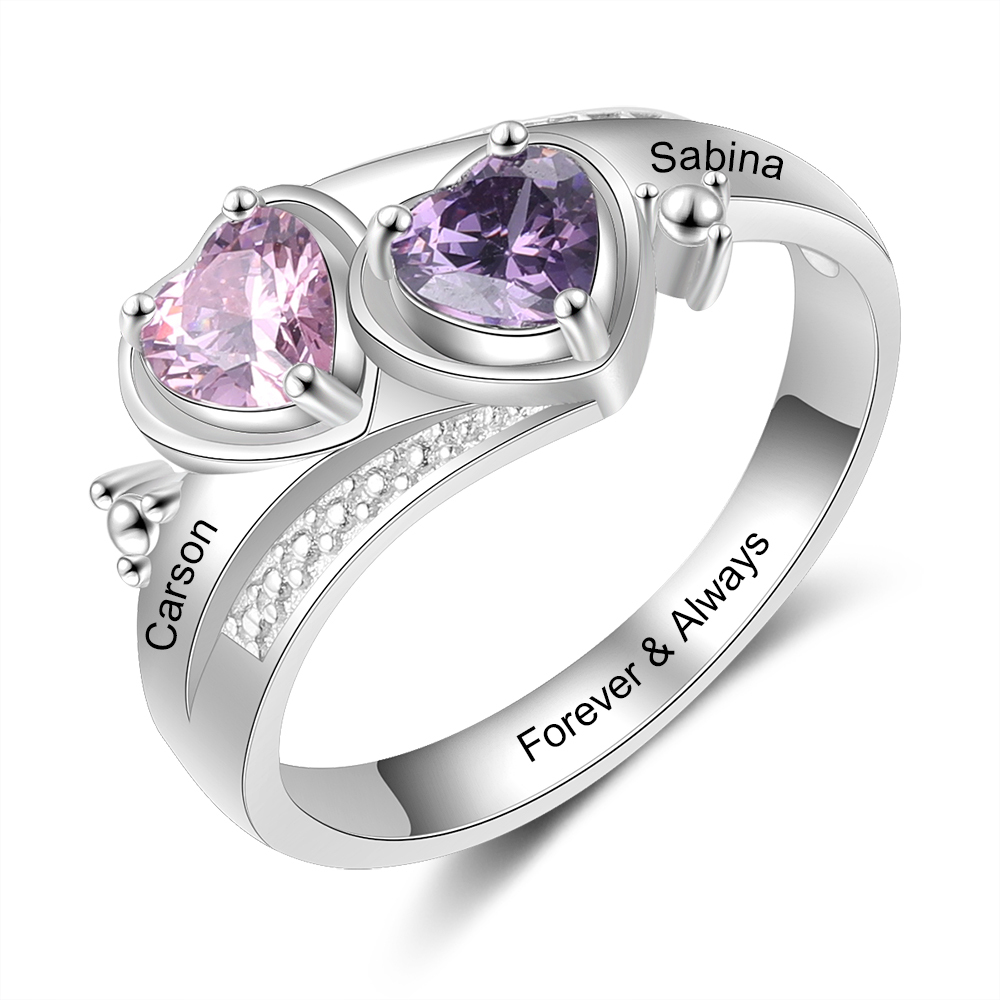 Anillo con 2 nombres personalizados con 2 piedras de nacimiento y 1 texto