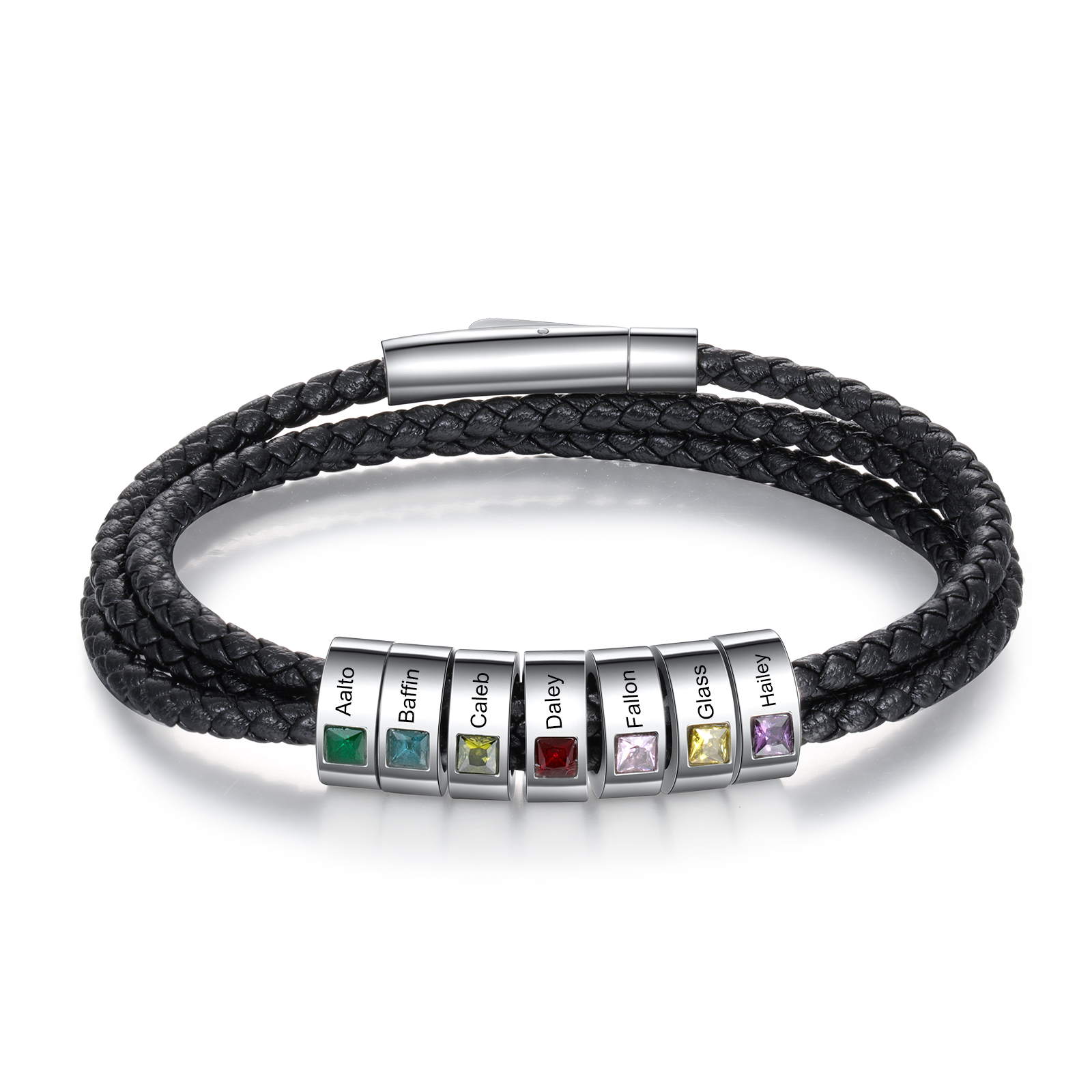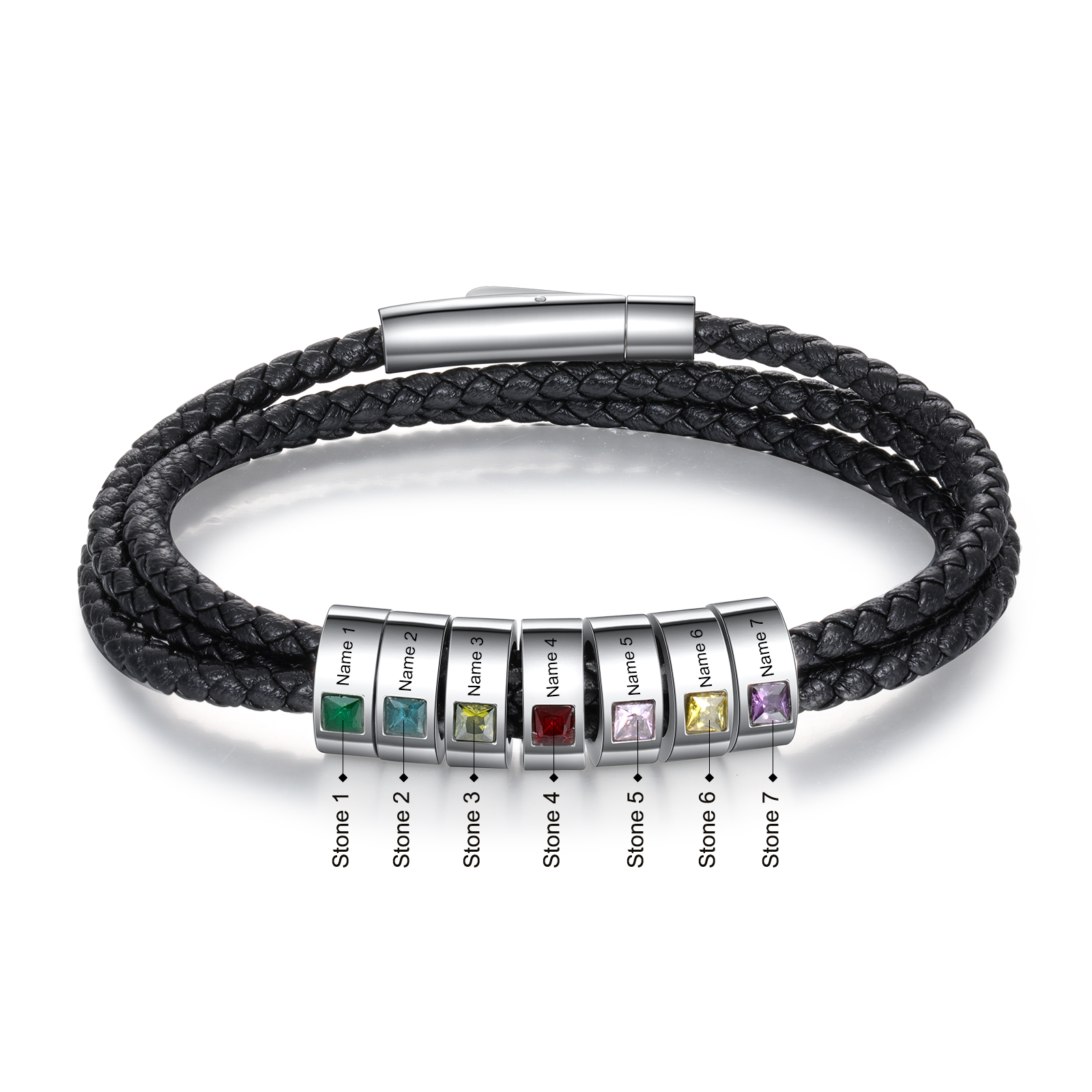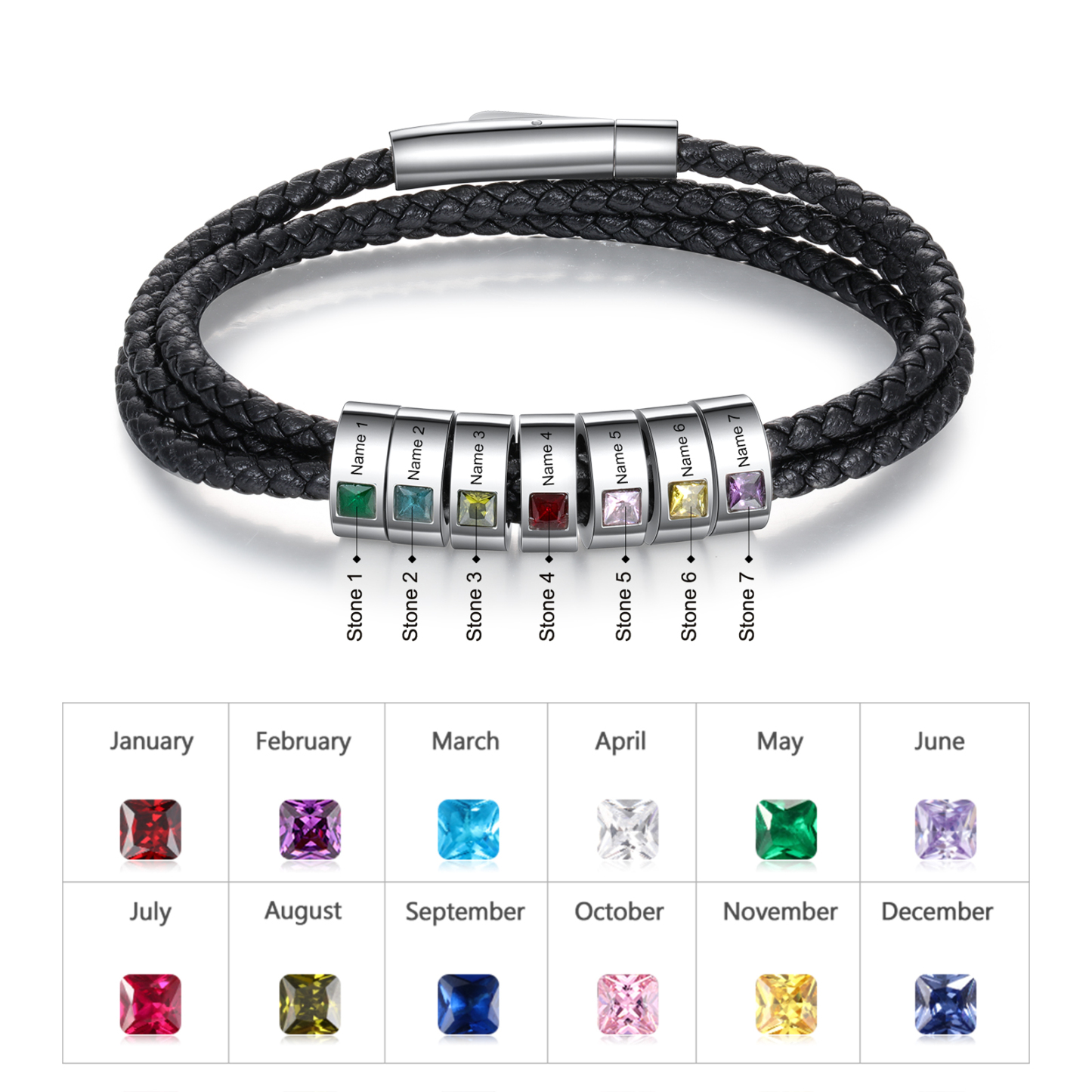 Pulsera personalizada con 7 nombres y 7 piedras de nacimiento para hombre
