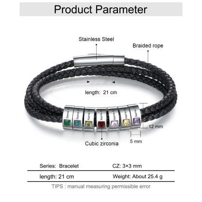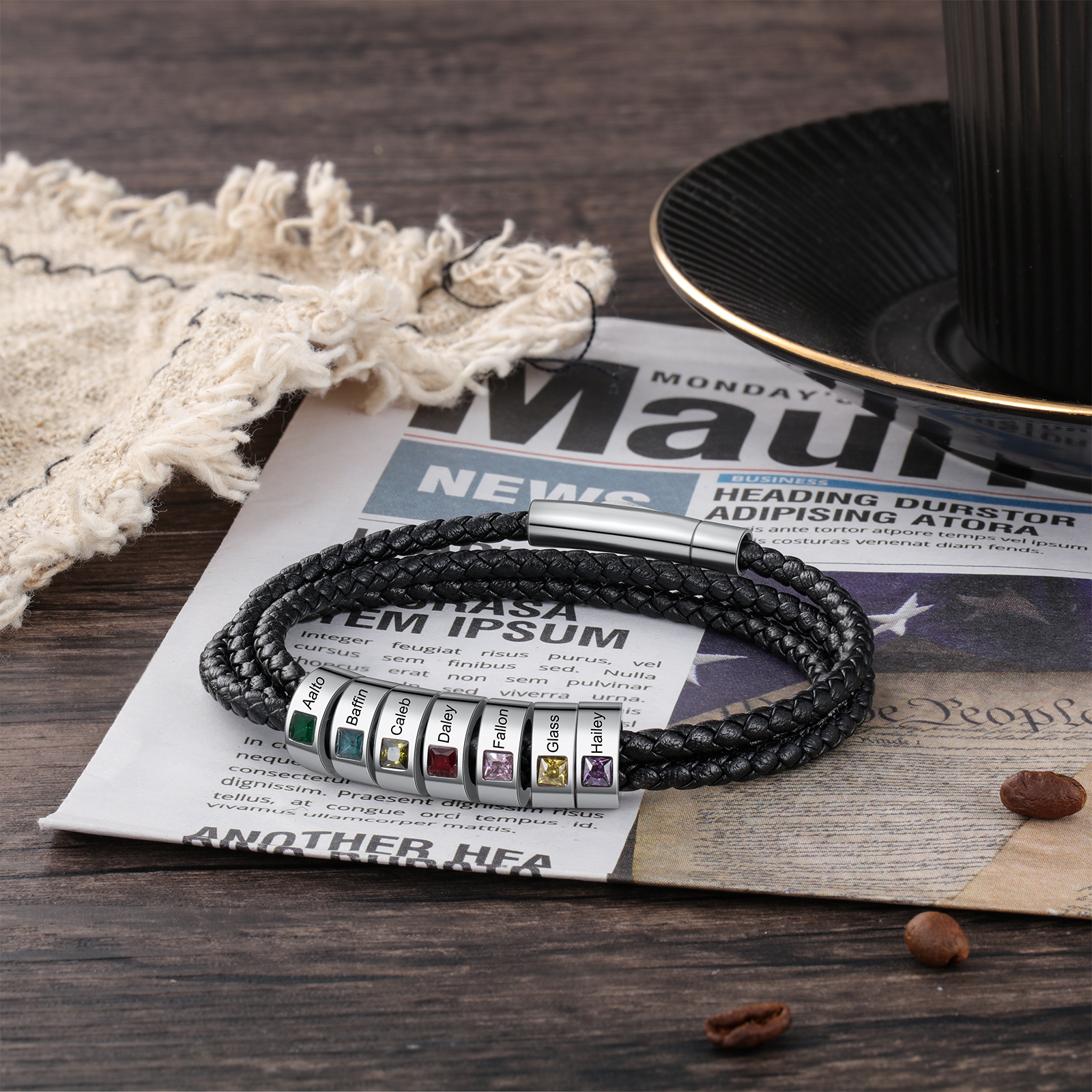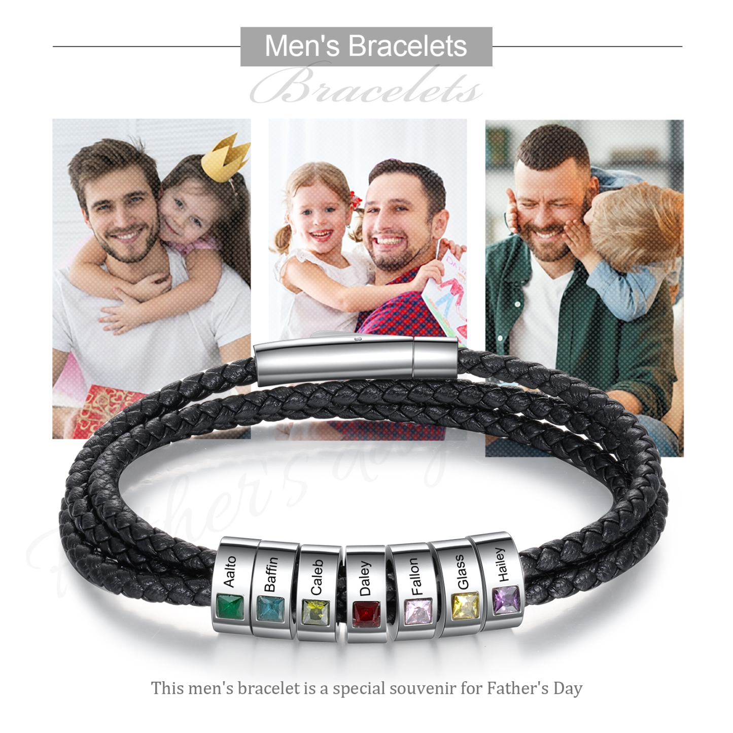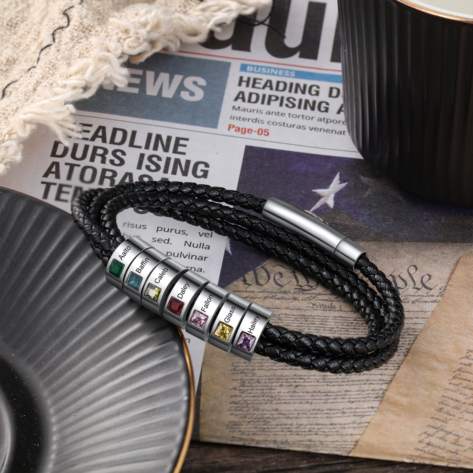 Pulsera personalizada con 7 nombres y 7 piedras de nacimiento para hombre