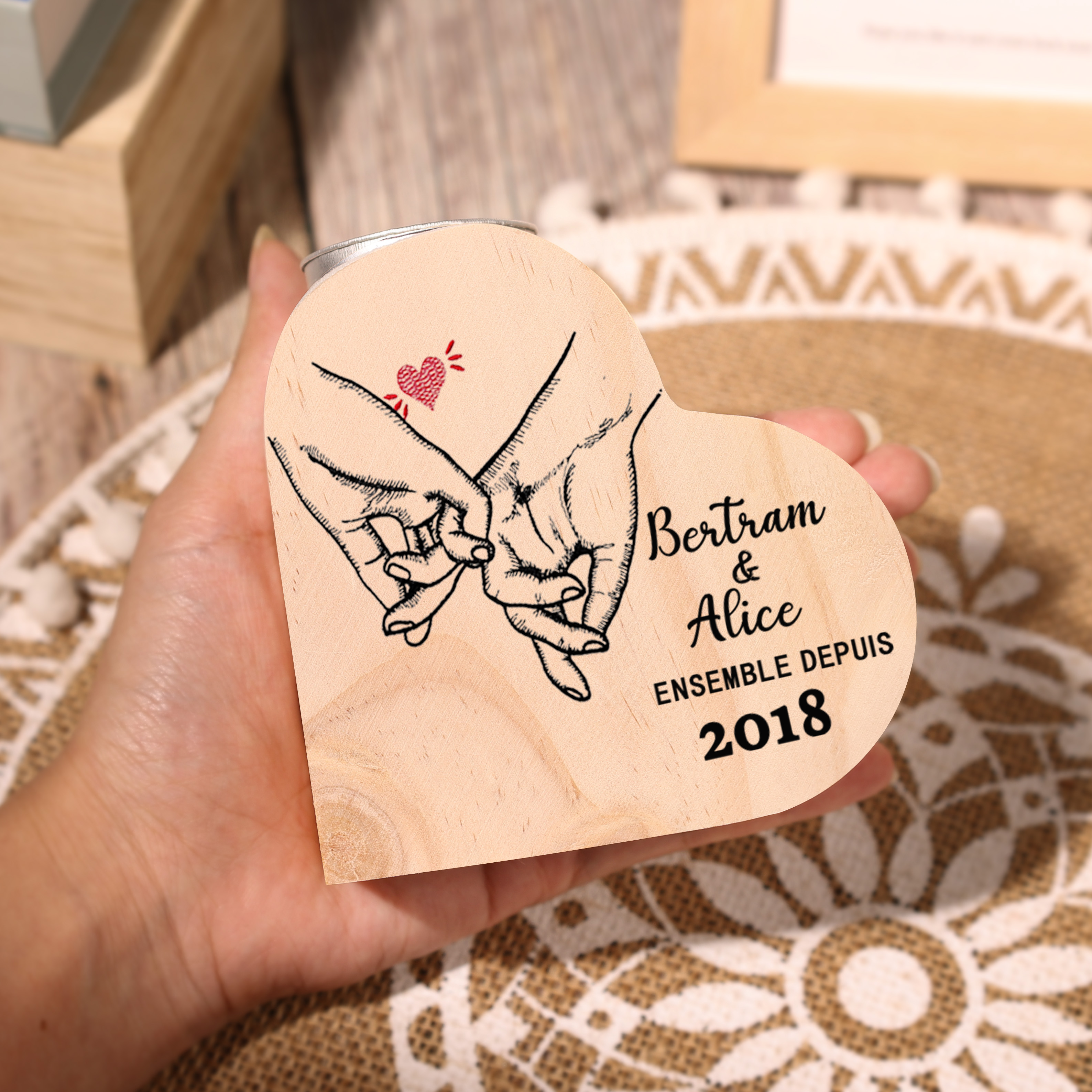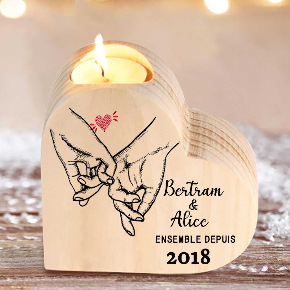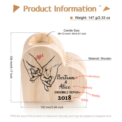 Candelero corazón 2 nombres y texto con año personalizados sin candela