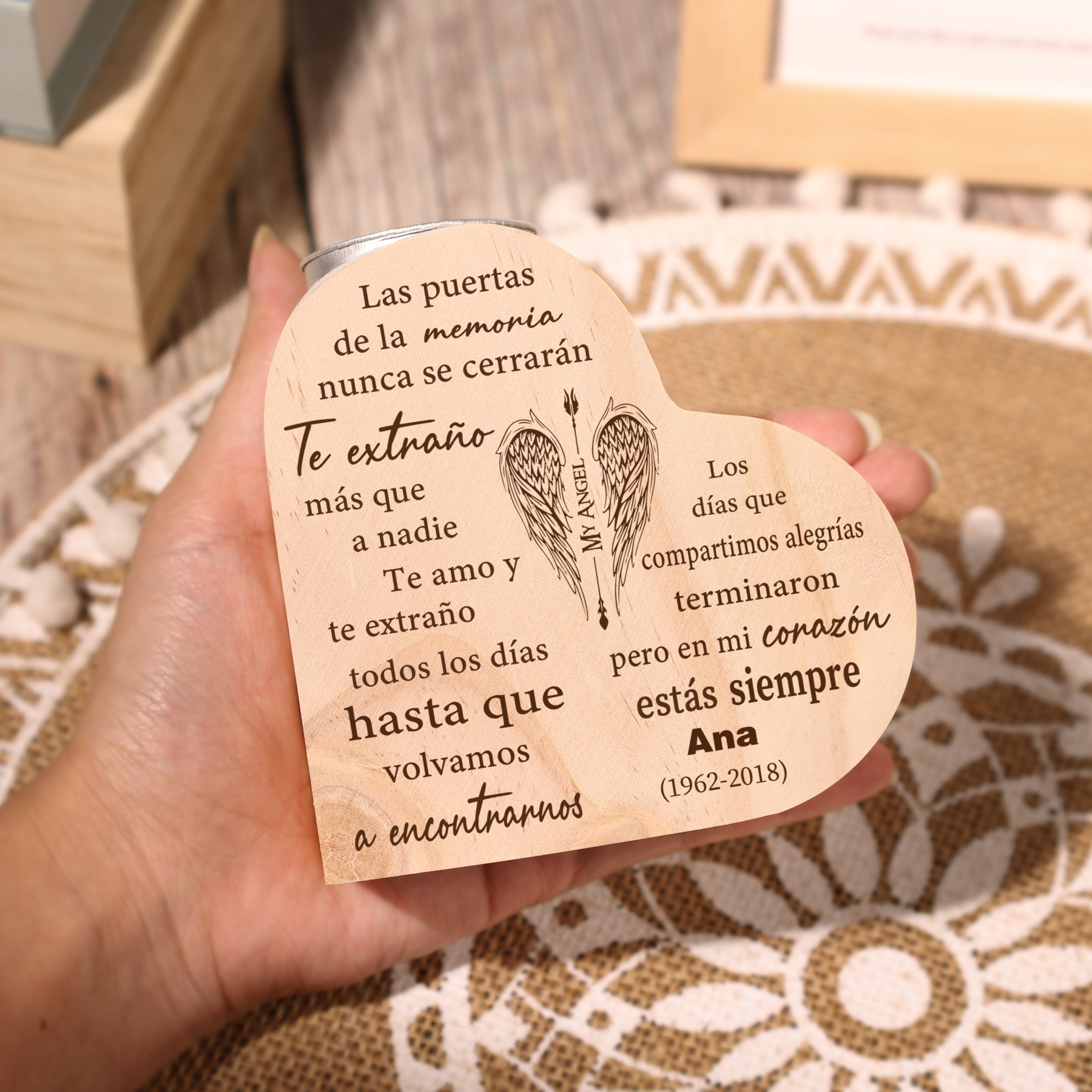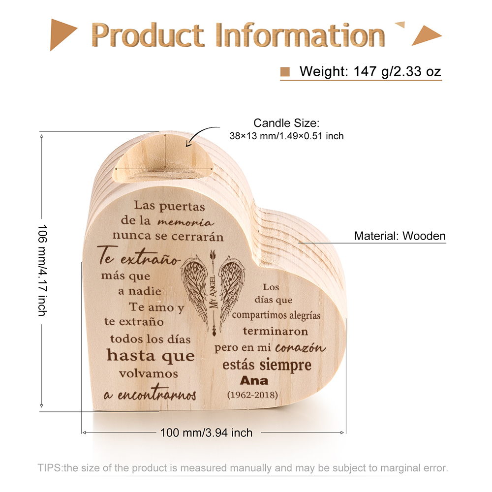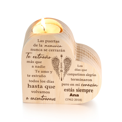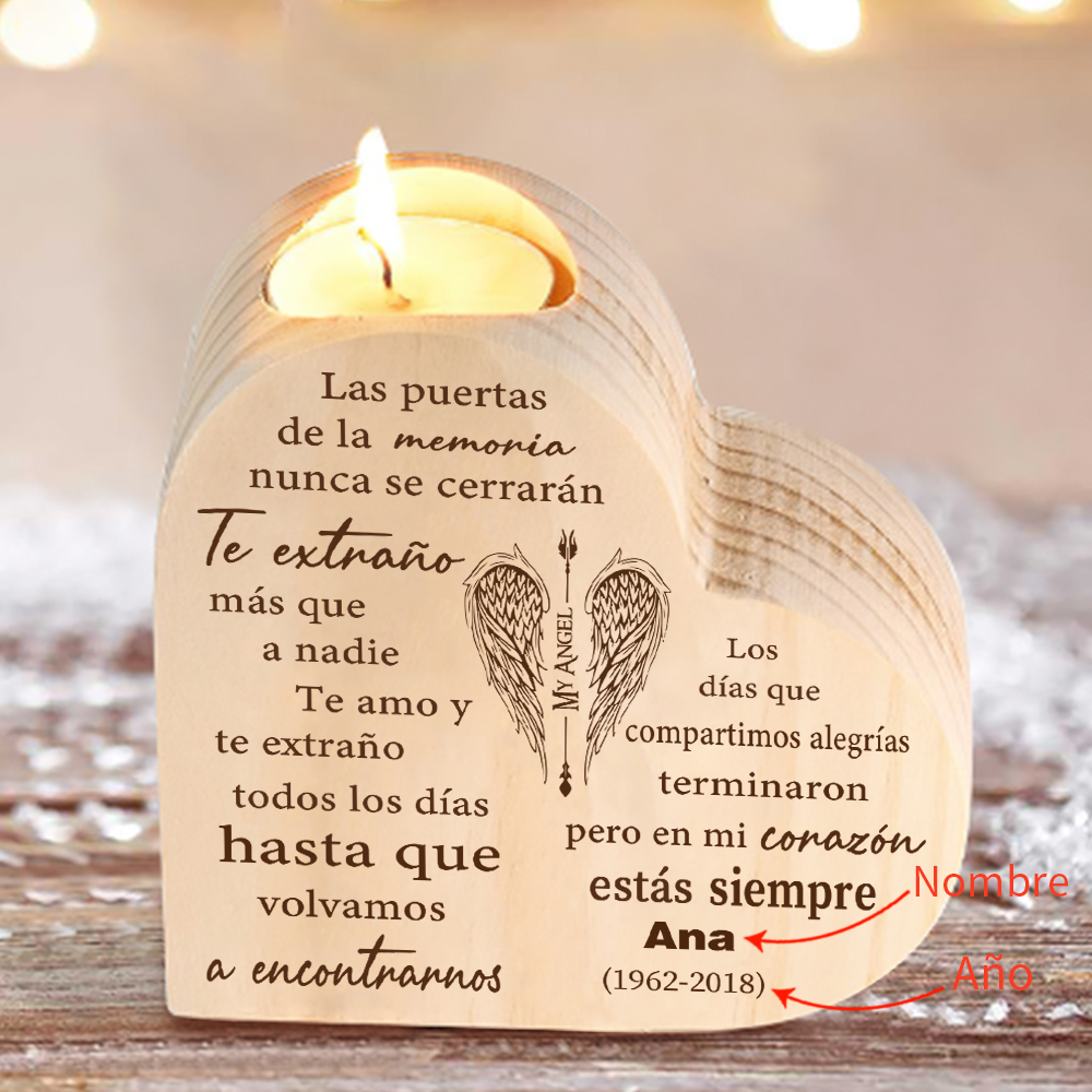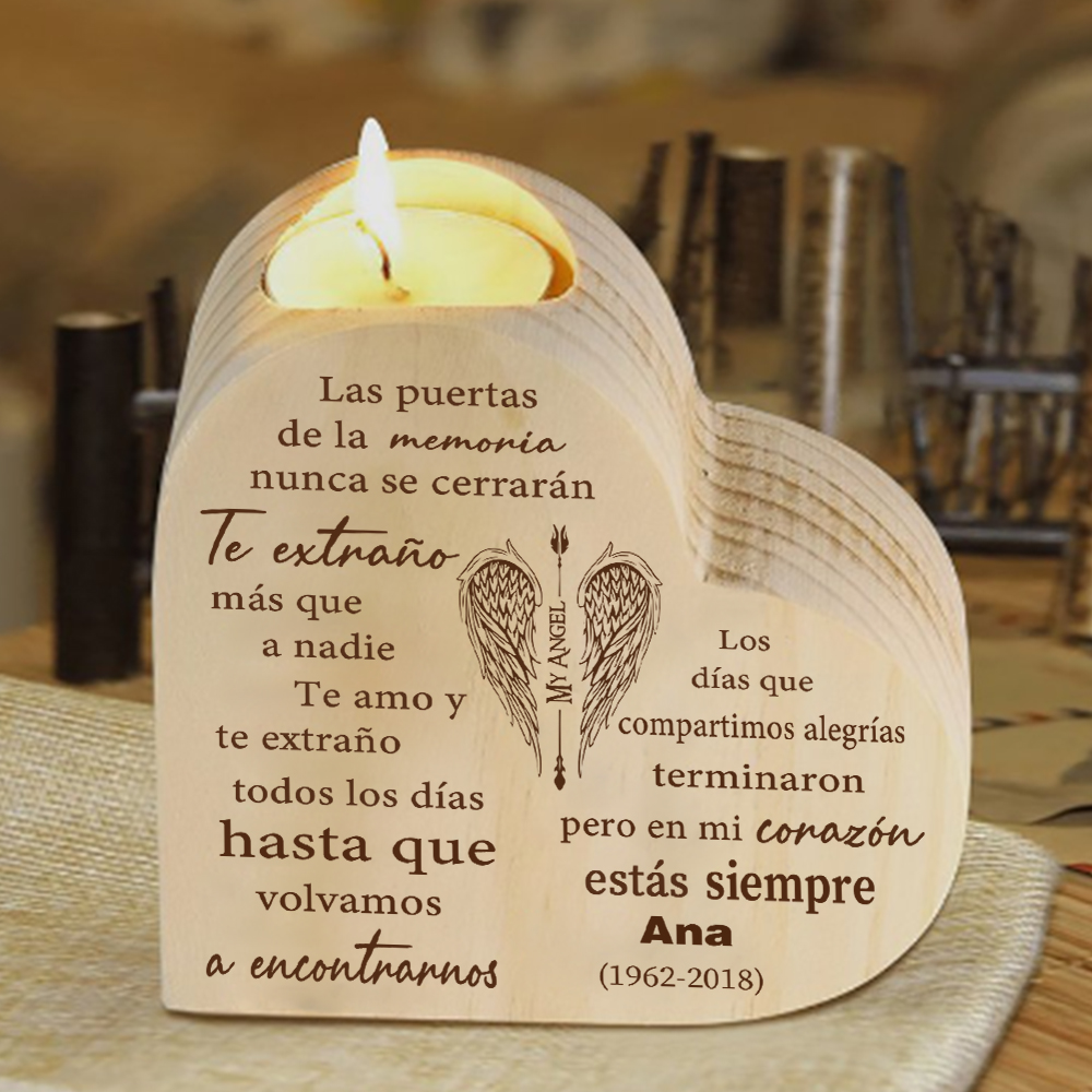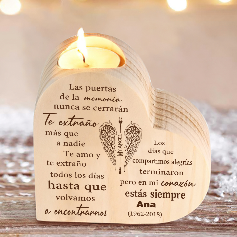 Candelero de corazón en memoria de ser querido de madera nombre y año personalizados sin vela
