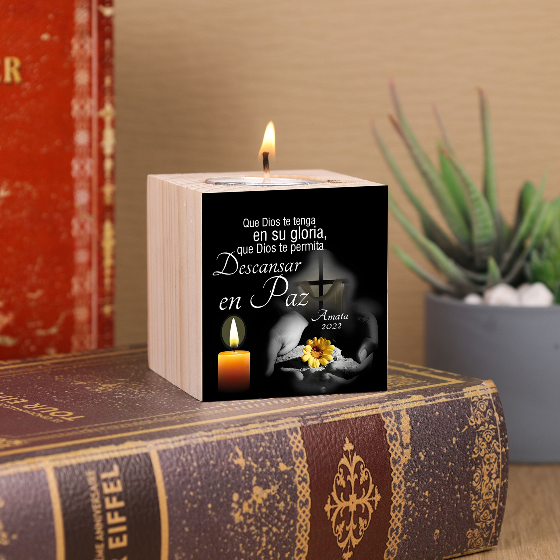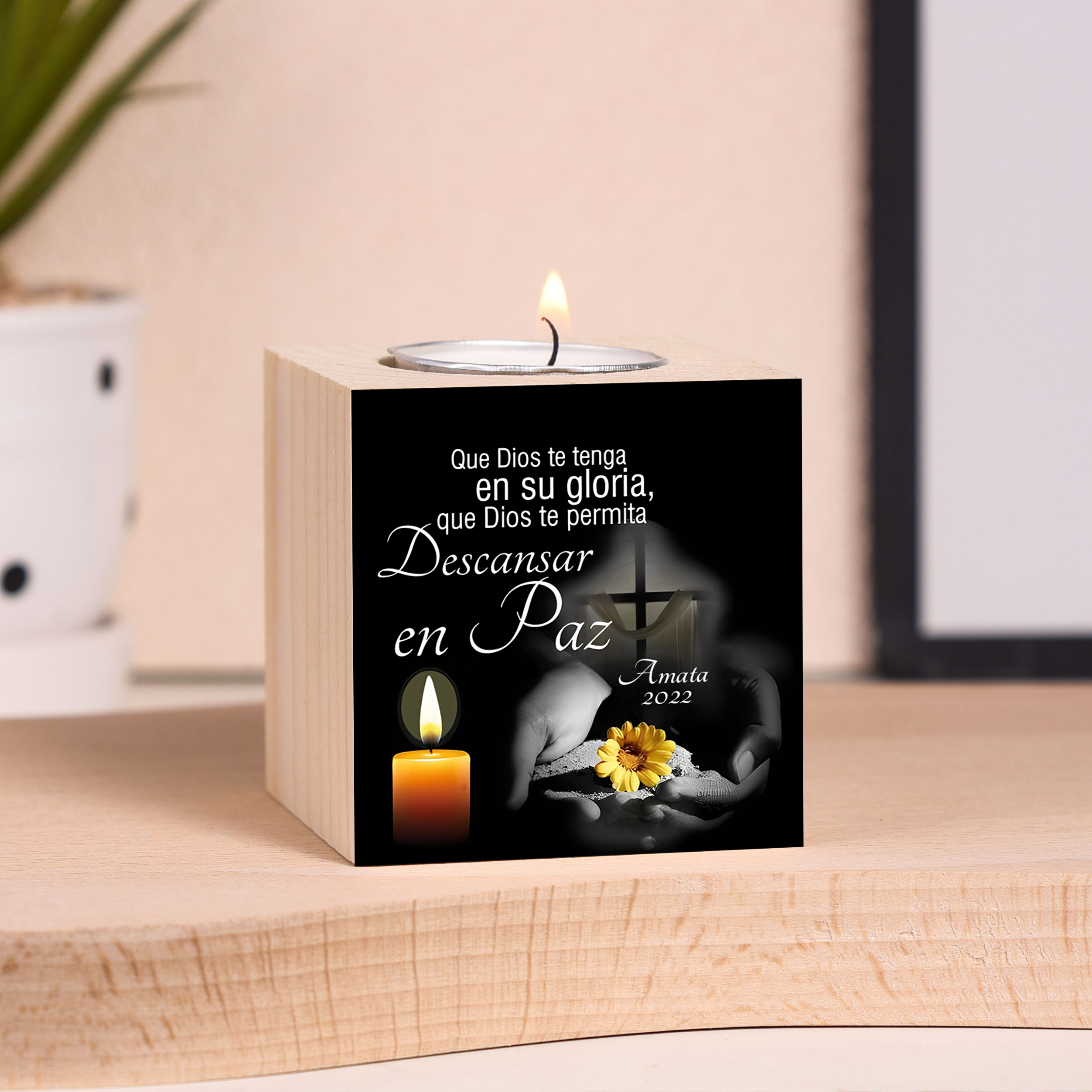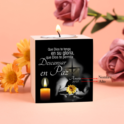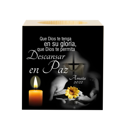 Candelero en memoria de ser querido de madera nombre y año personalizados sin vela