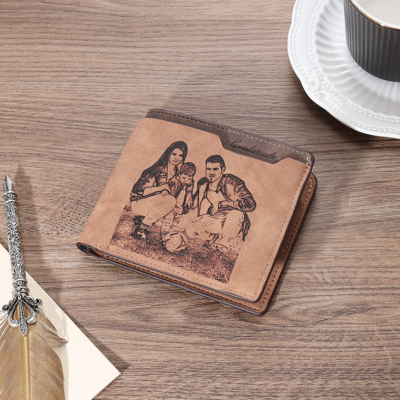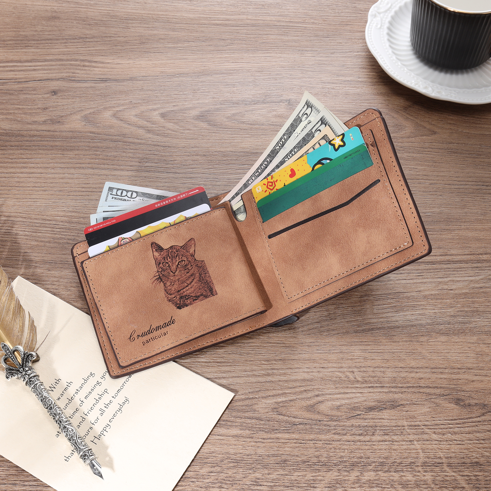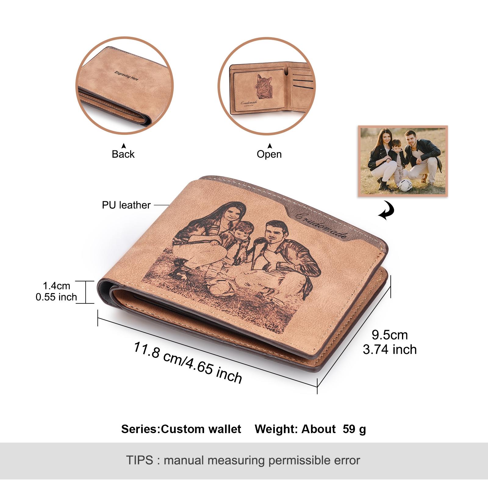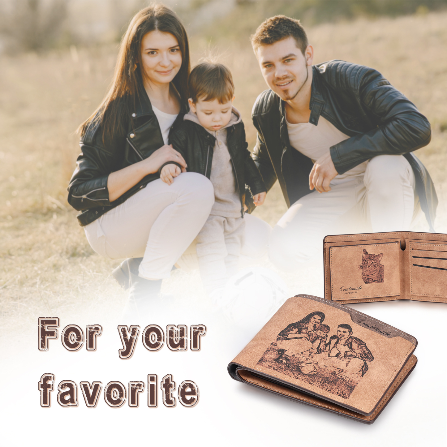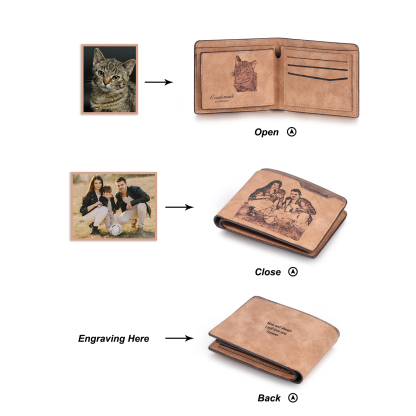 Cartera, billetera 2 fotos personalizadas con 1 texto(3 filas) monedero clásico para hombre