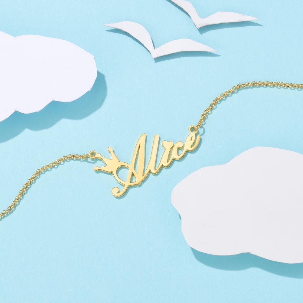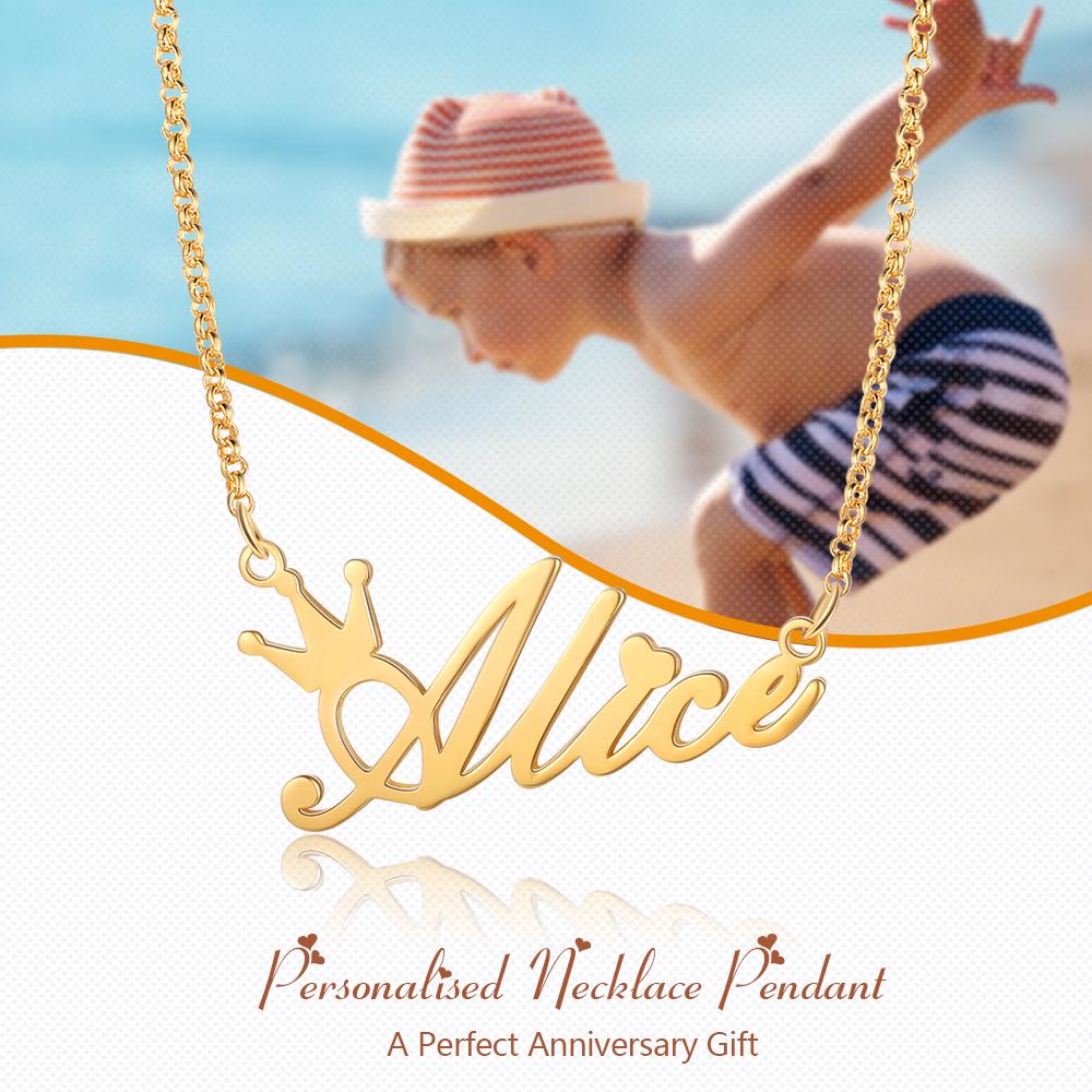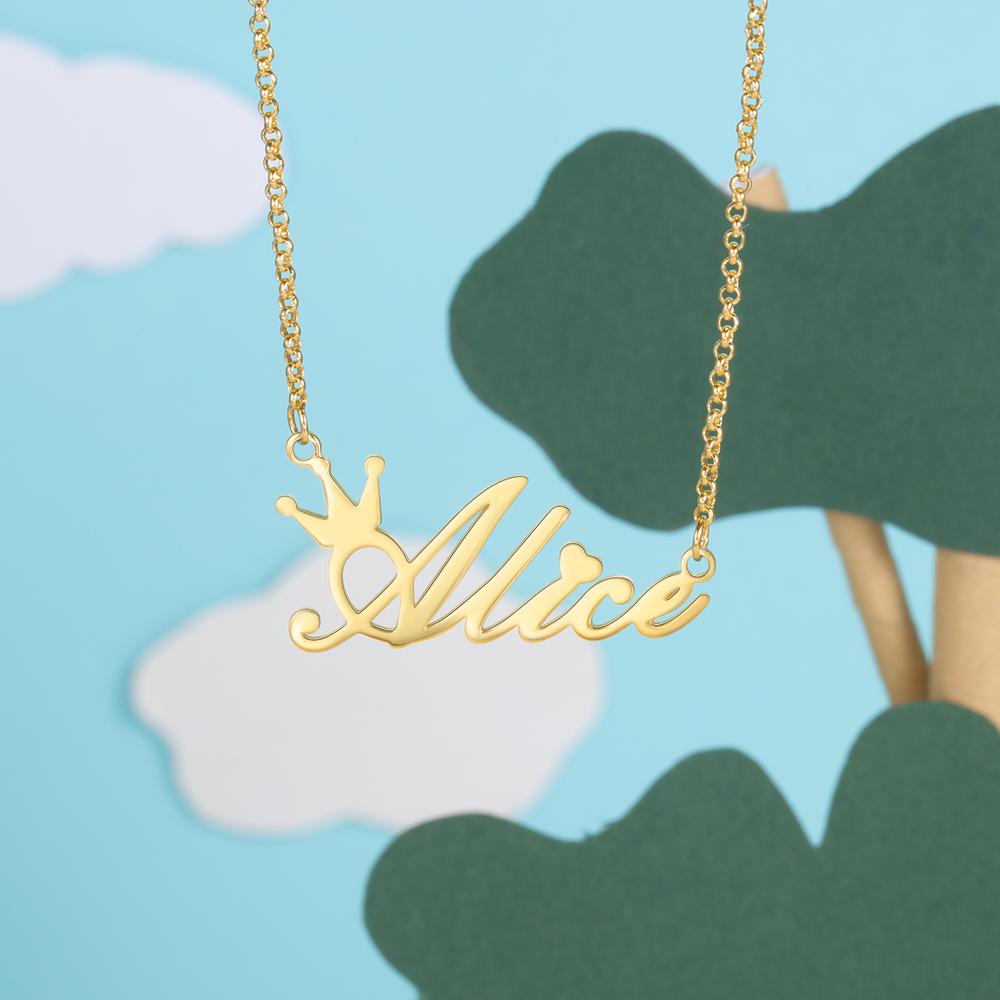 Collar para mujer con 1 nombre personalizado con corona para mujer