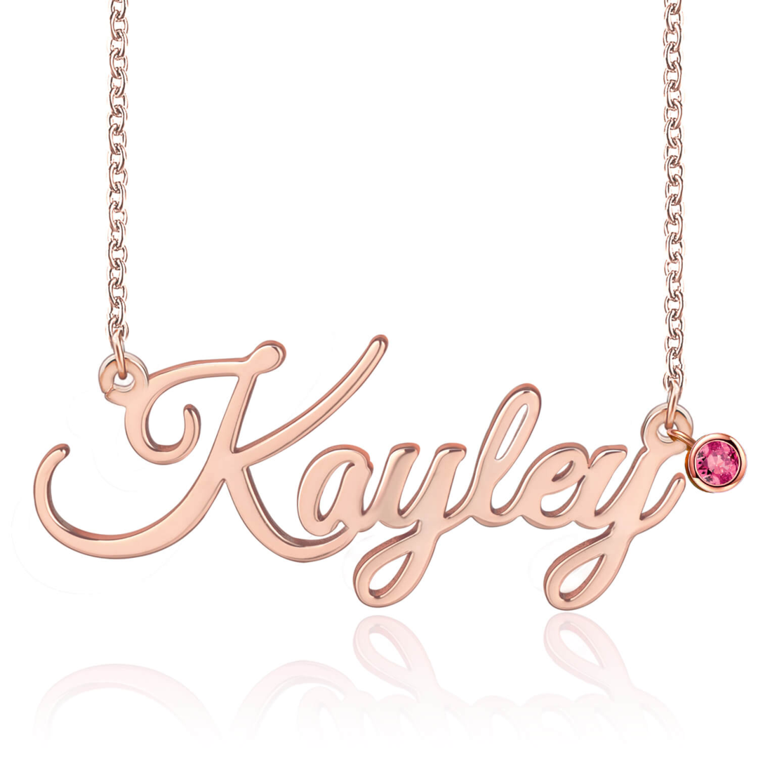 Collar para mujer con 1 nombre personalizado y 1 piedra de nacimiento