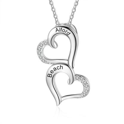 Collar para mujer con 2 nombres personalizados Colgante de 2 corazones de plata 925