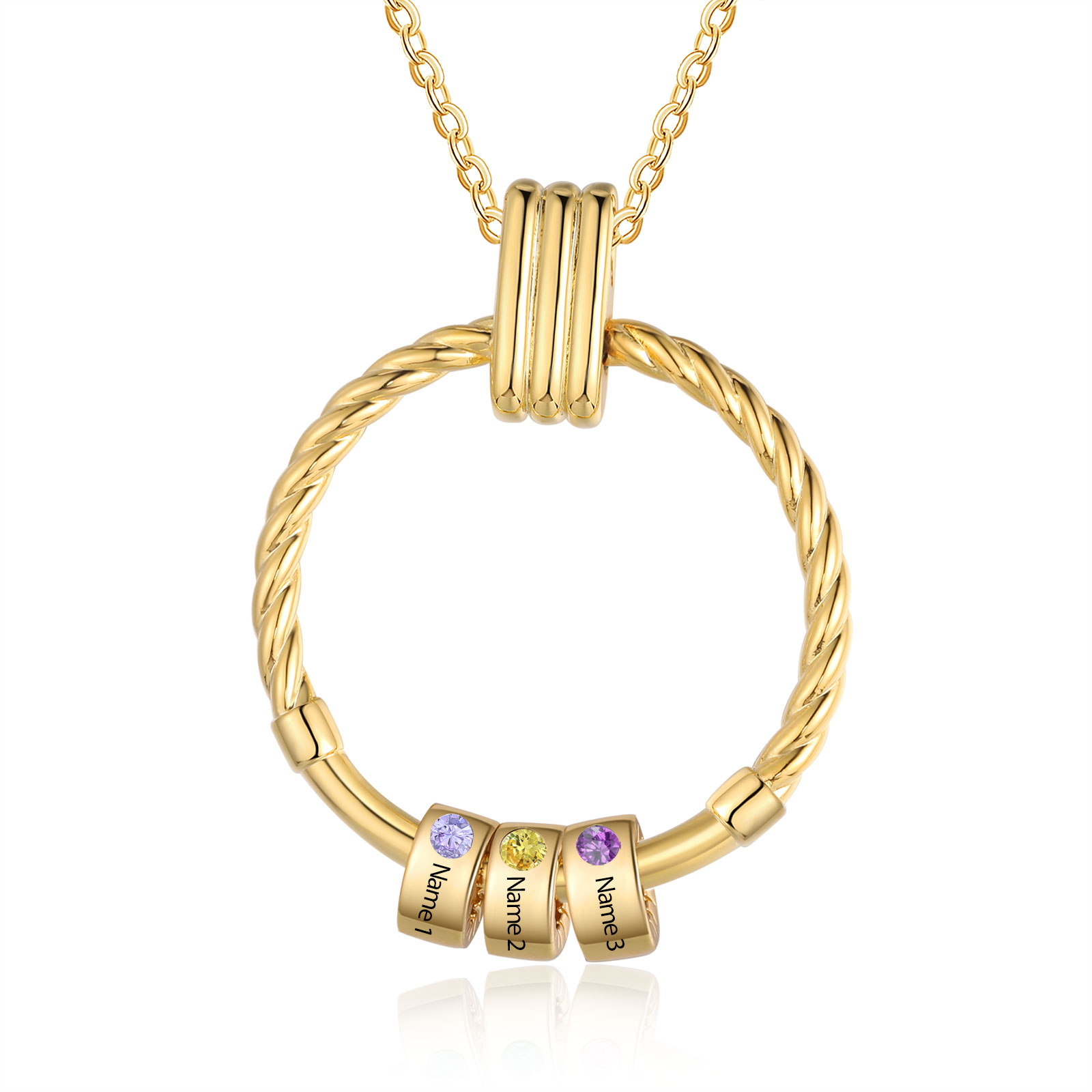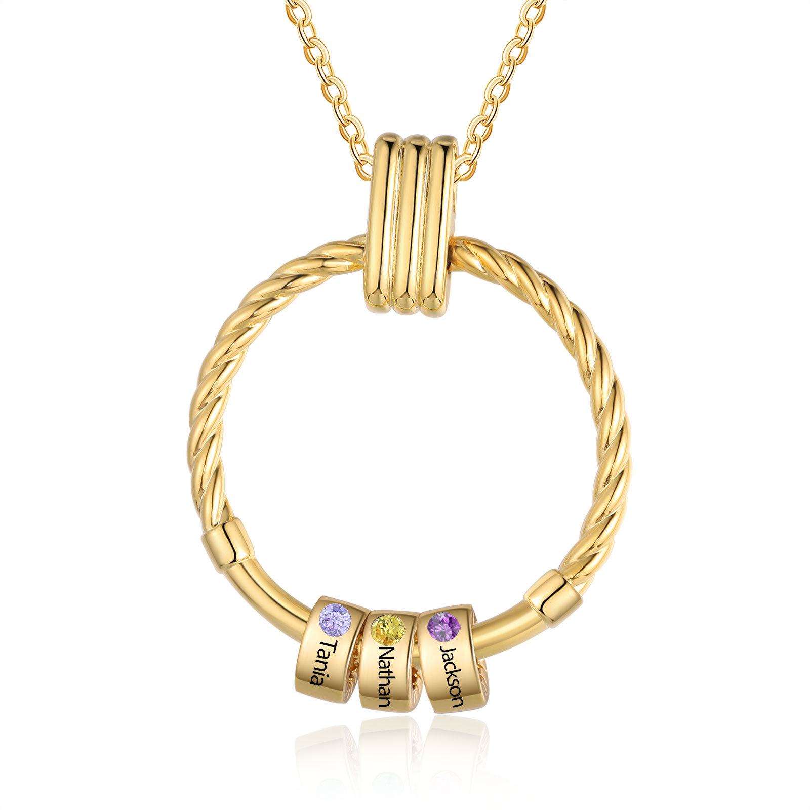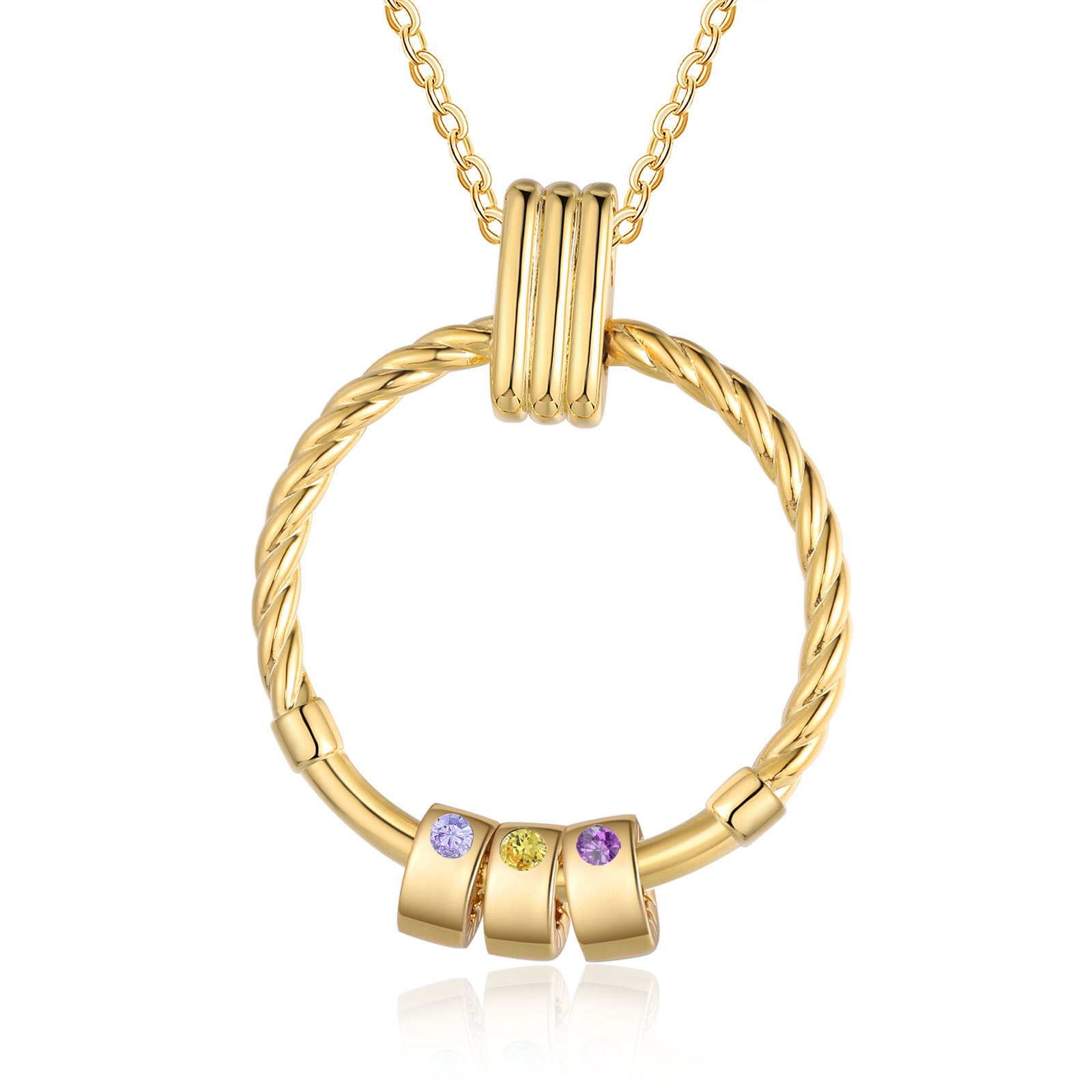 Collar para mujer con colgante con aros de 3 piedras de nacimiento y 3 nombres personalizados