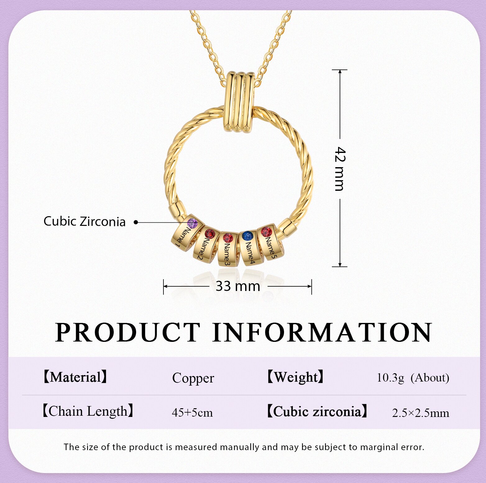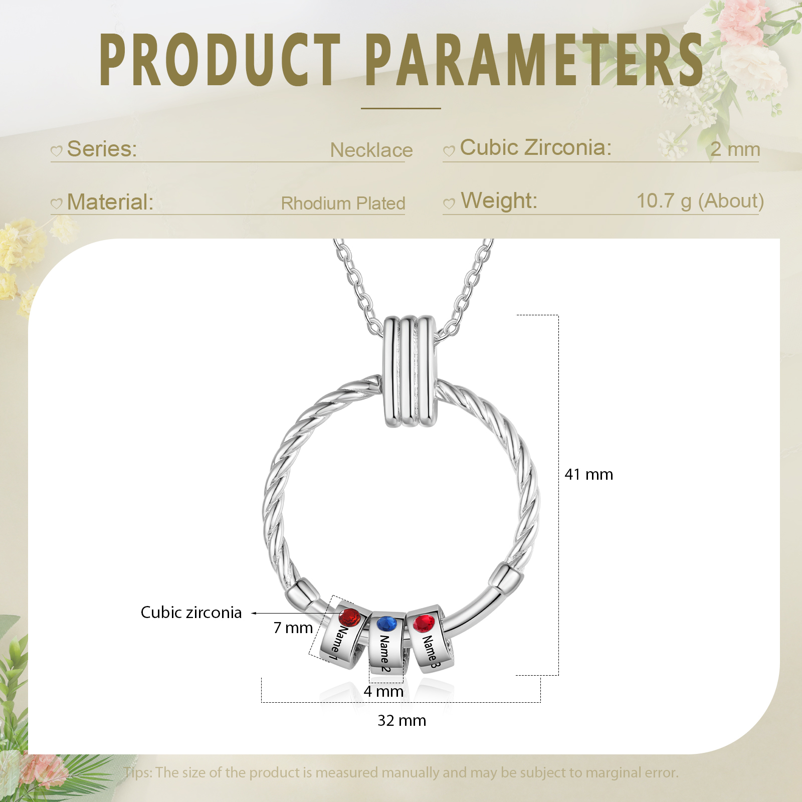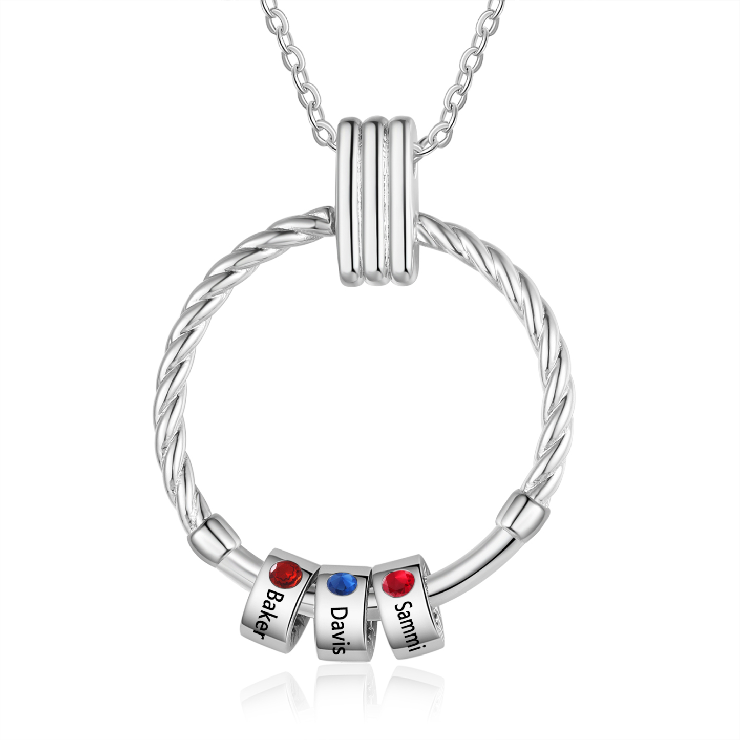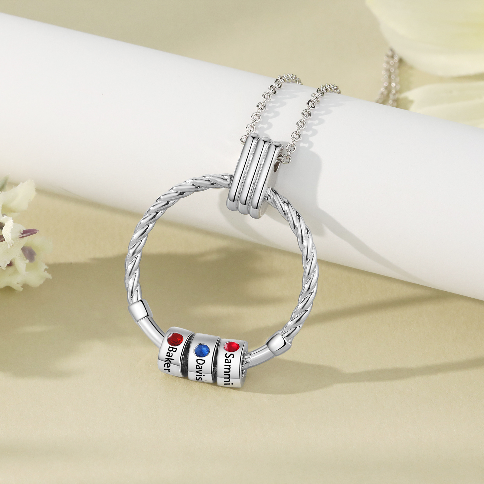Collar para mujer con colgante con aros de 3 piedras de nacimiento y 3 nombres personalizados