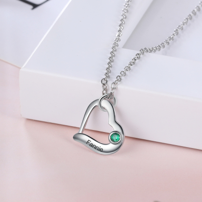 Collar para Mujer con Colgante de 1 Corazón 1 Nombre Personalizado con 1 Piedra de Nacimiento