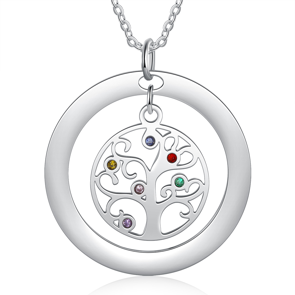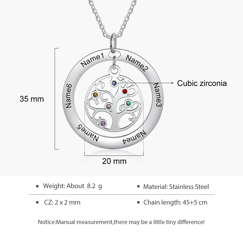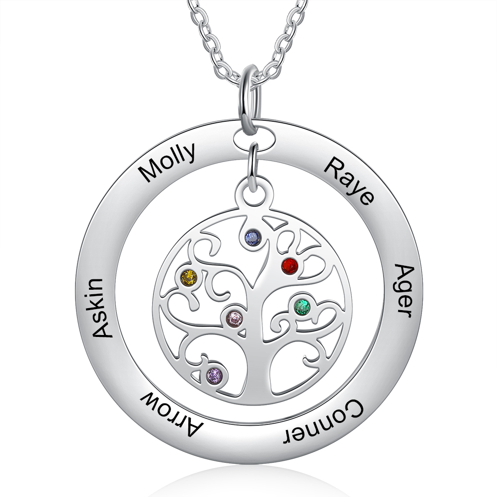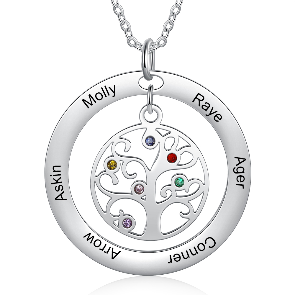 Collar para mujer con colgante de árbol de la vida árbol genealógico 6 nombres y 6 piedras de nacimiento personalizados