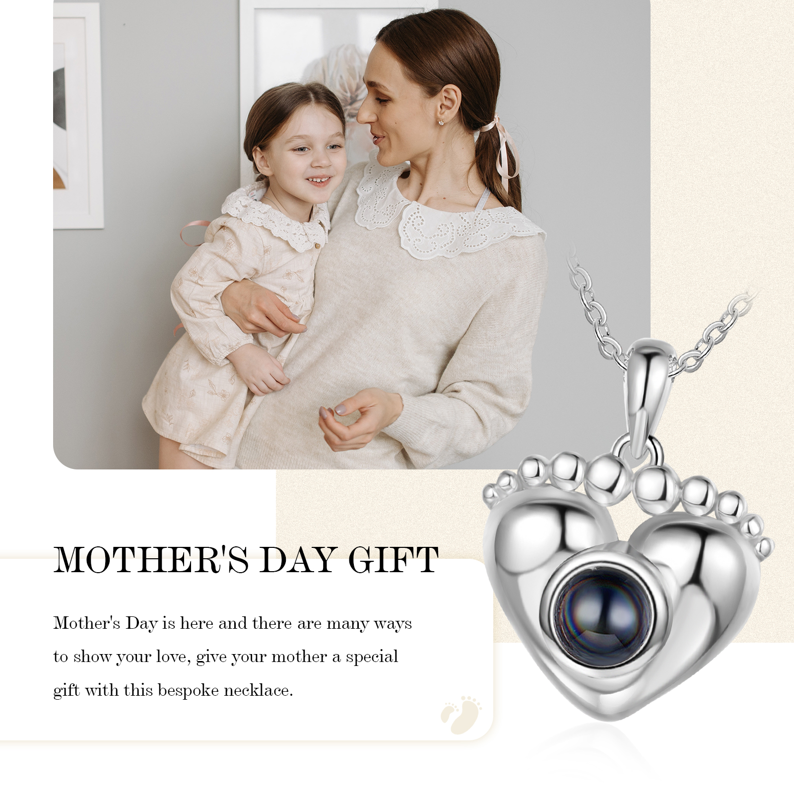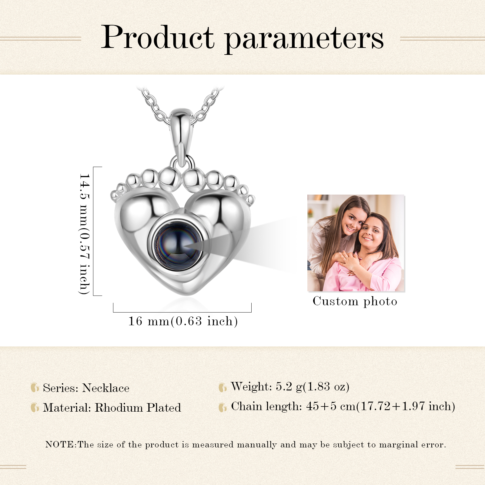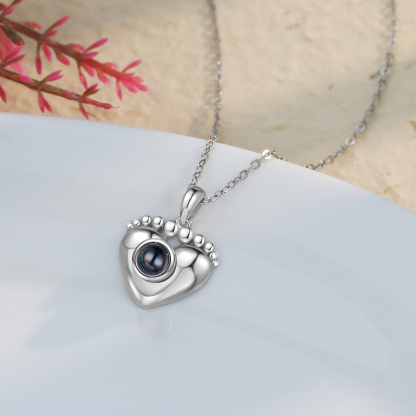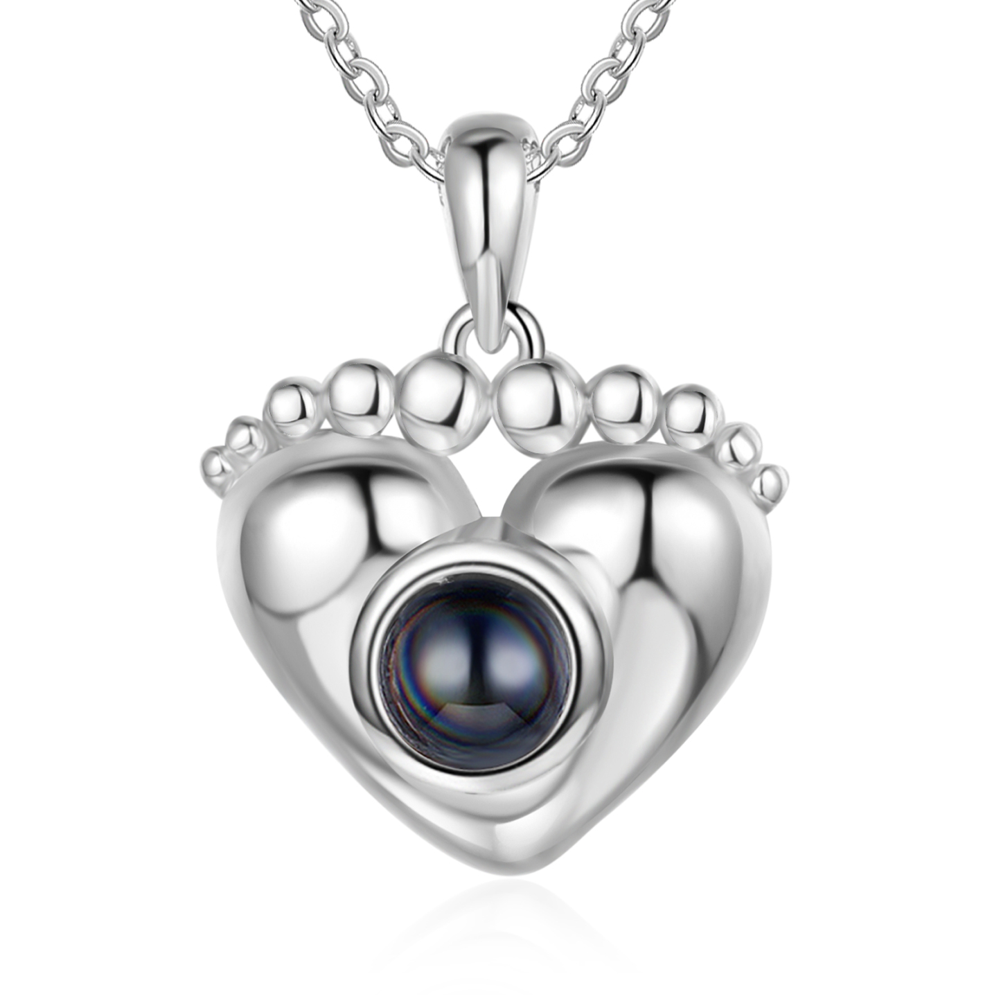 Collar para mujer con colgante de pies de bebé con foto de proyección
