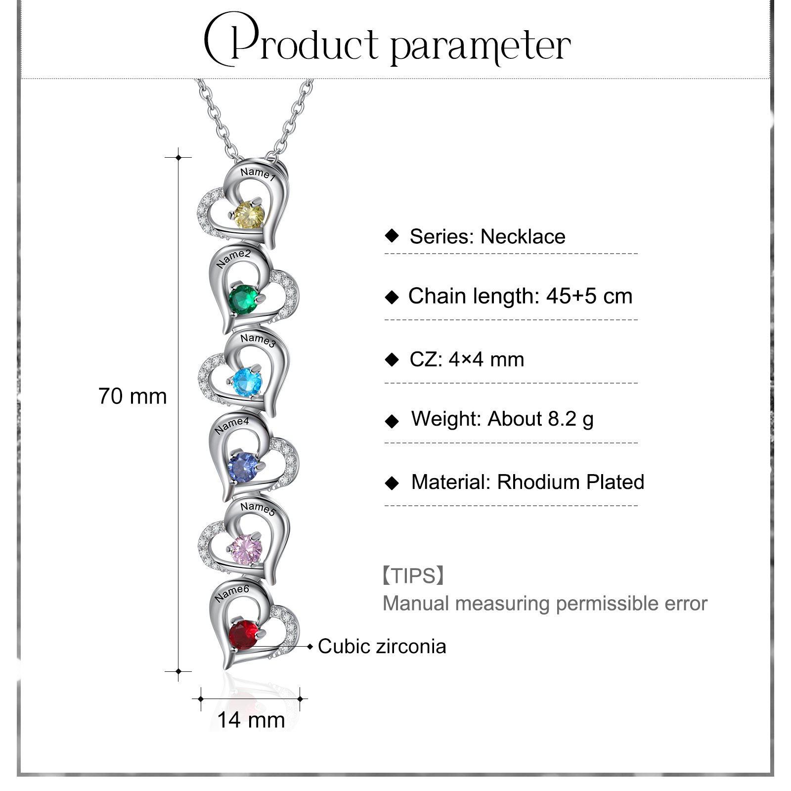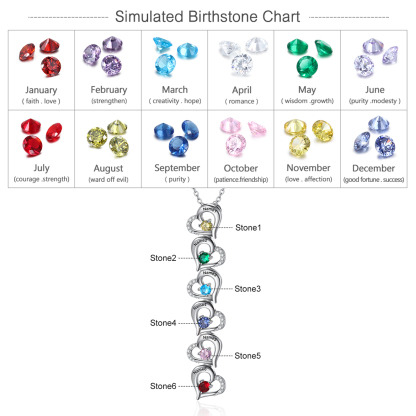Collar para mujer con colgantes de corazón con 6 nombres personalizados y 6 piedras de nacimiento