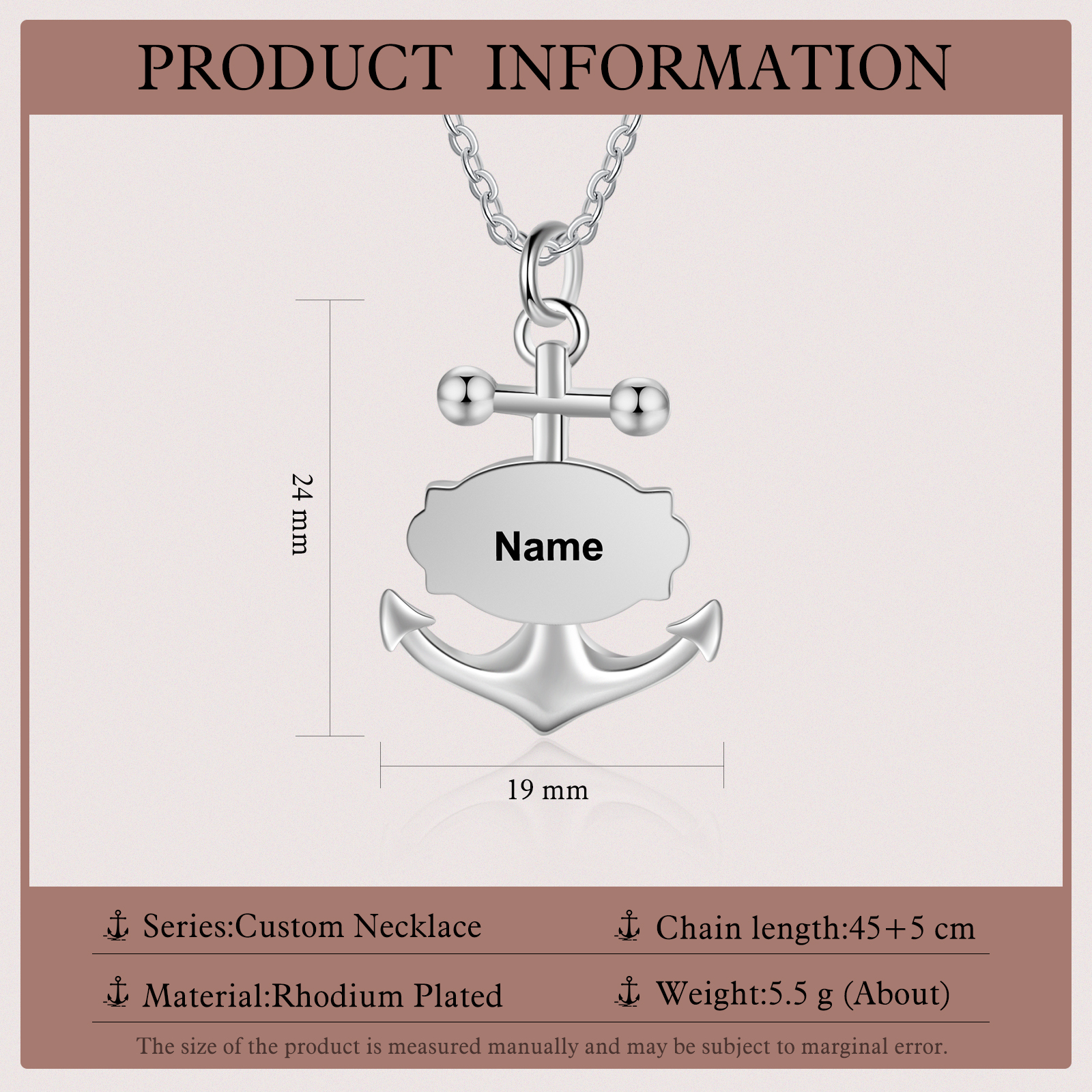 Collar para niño de ancla marina náutica 1 nombre personalizado