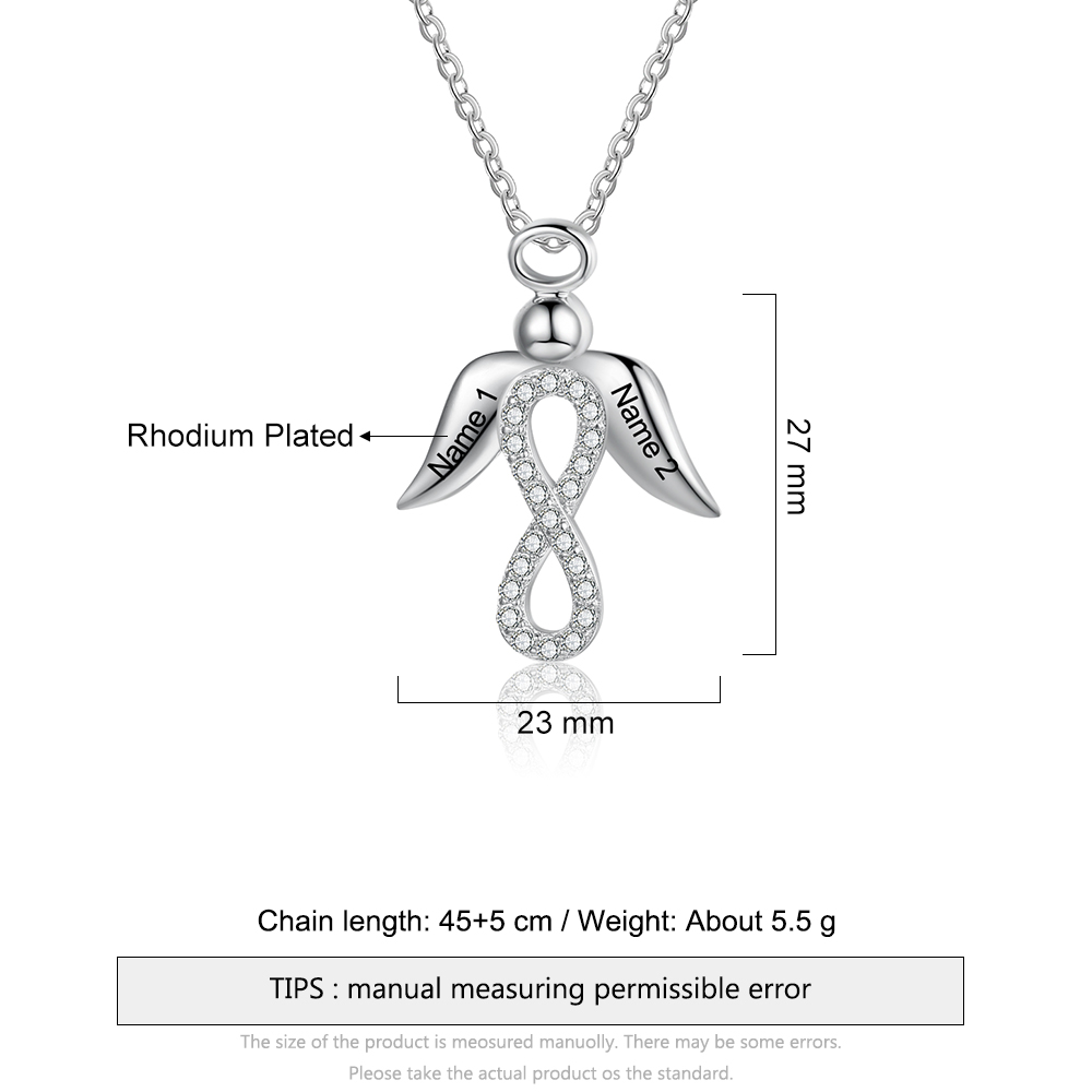 Collar para hombre de ángel con alas con infinito 2 nombres personalizados