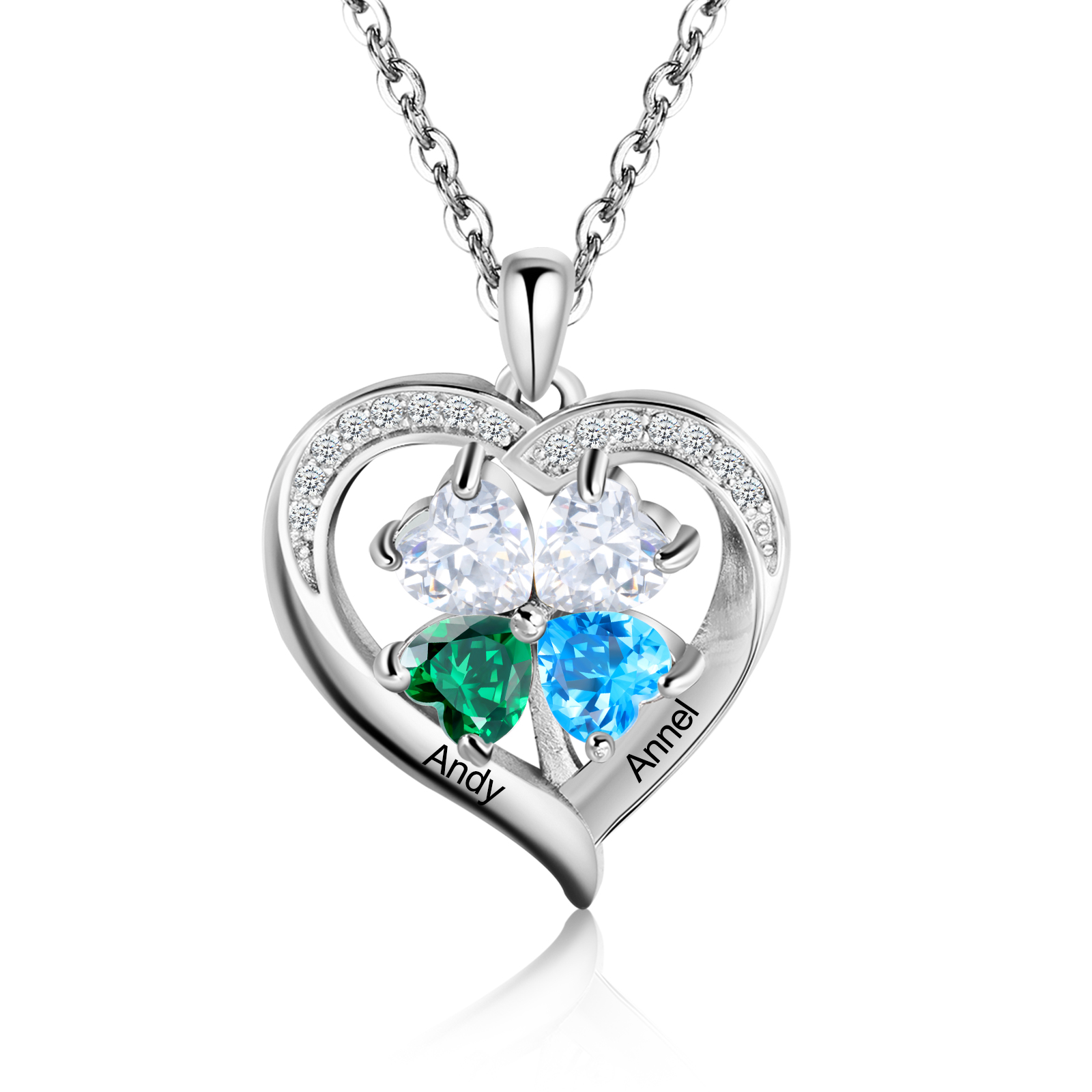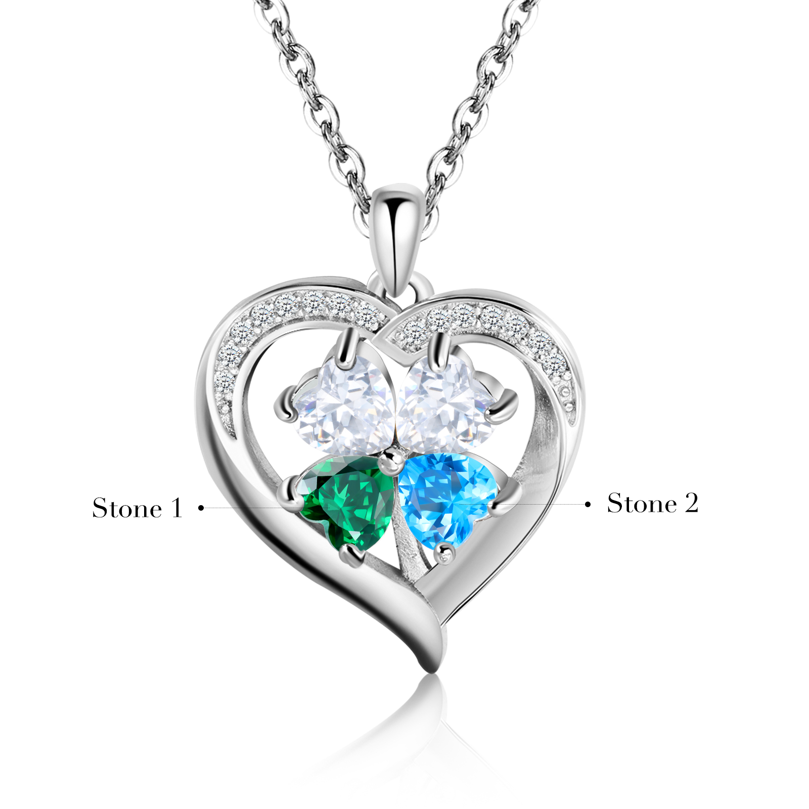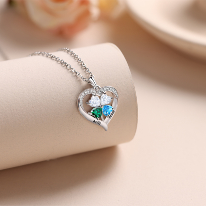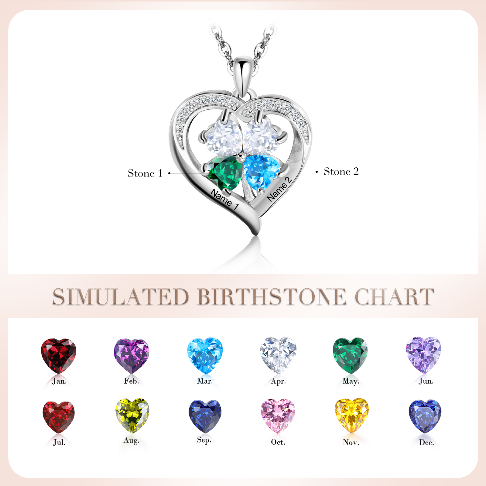 Collar para mujer de corazón 2 nombres personalizados con 2 piedras de nacimiento