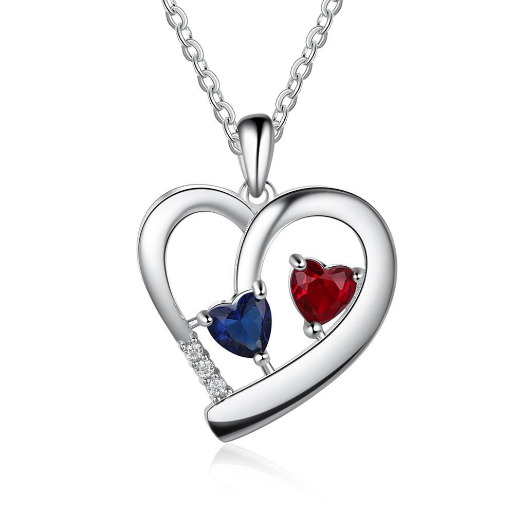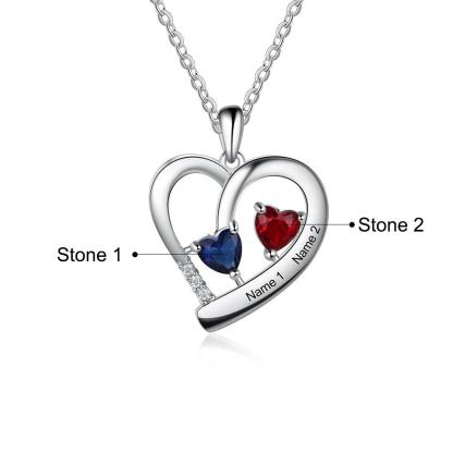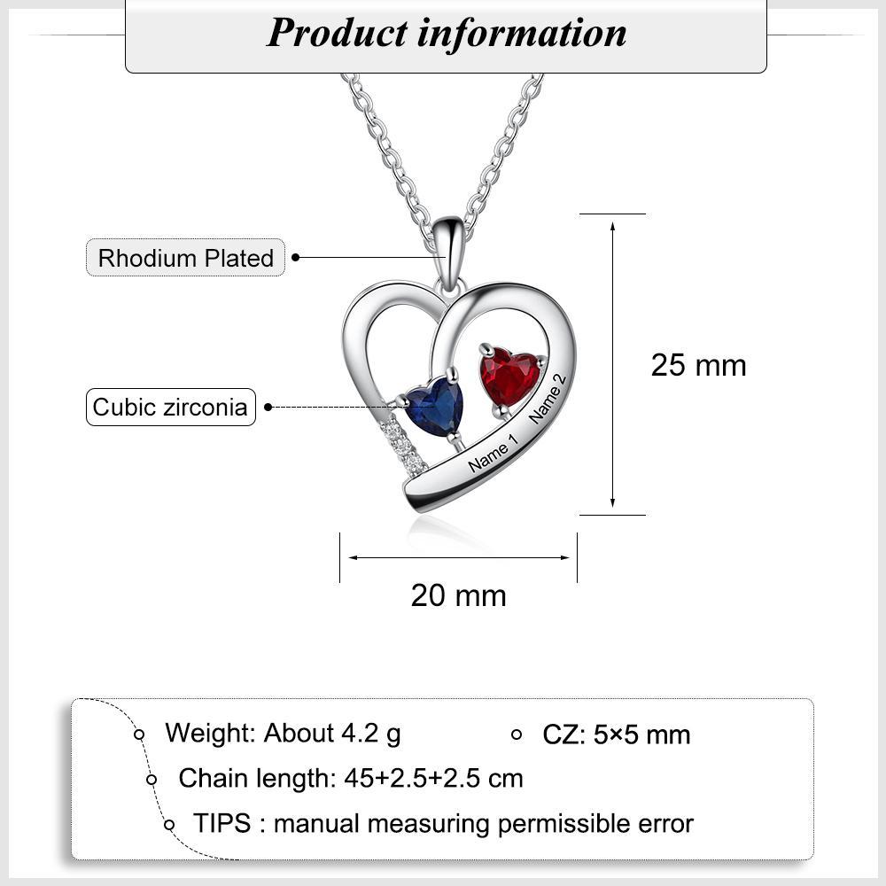 Collar para mujer de corazón con 2 piedras de nacimiento y 2 nombres personalizados