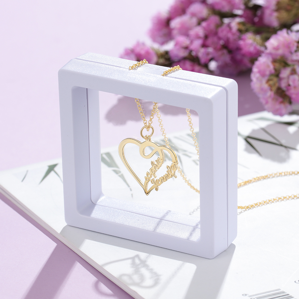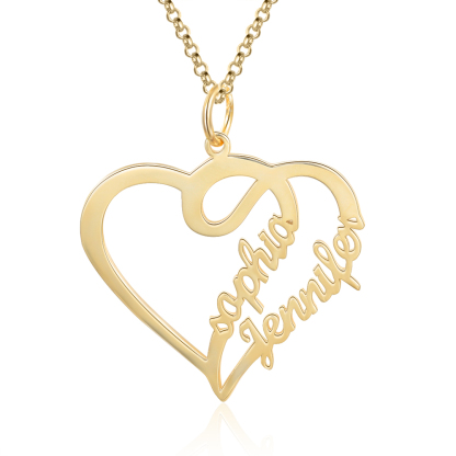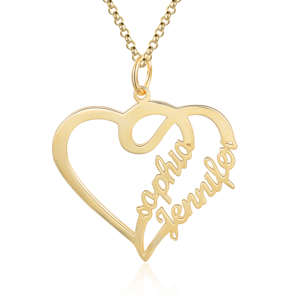 Collar para mujer de corazón de plata 925 personalizado con 2 nombres