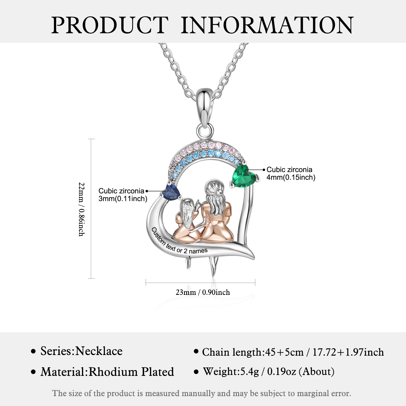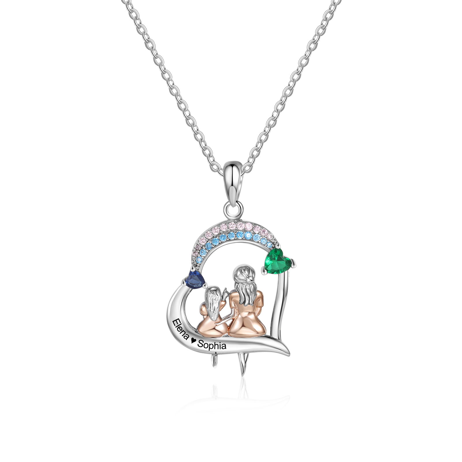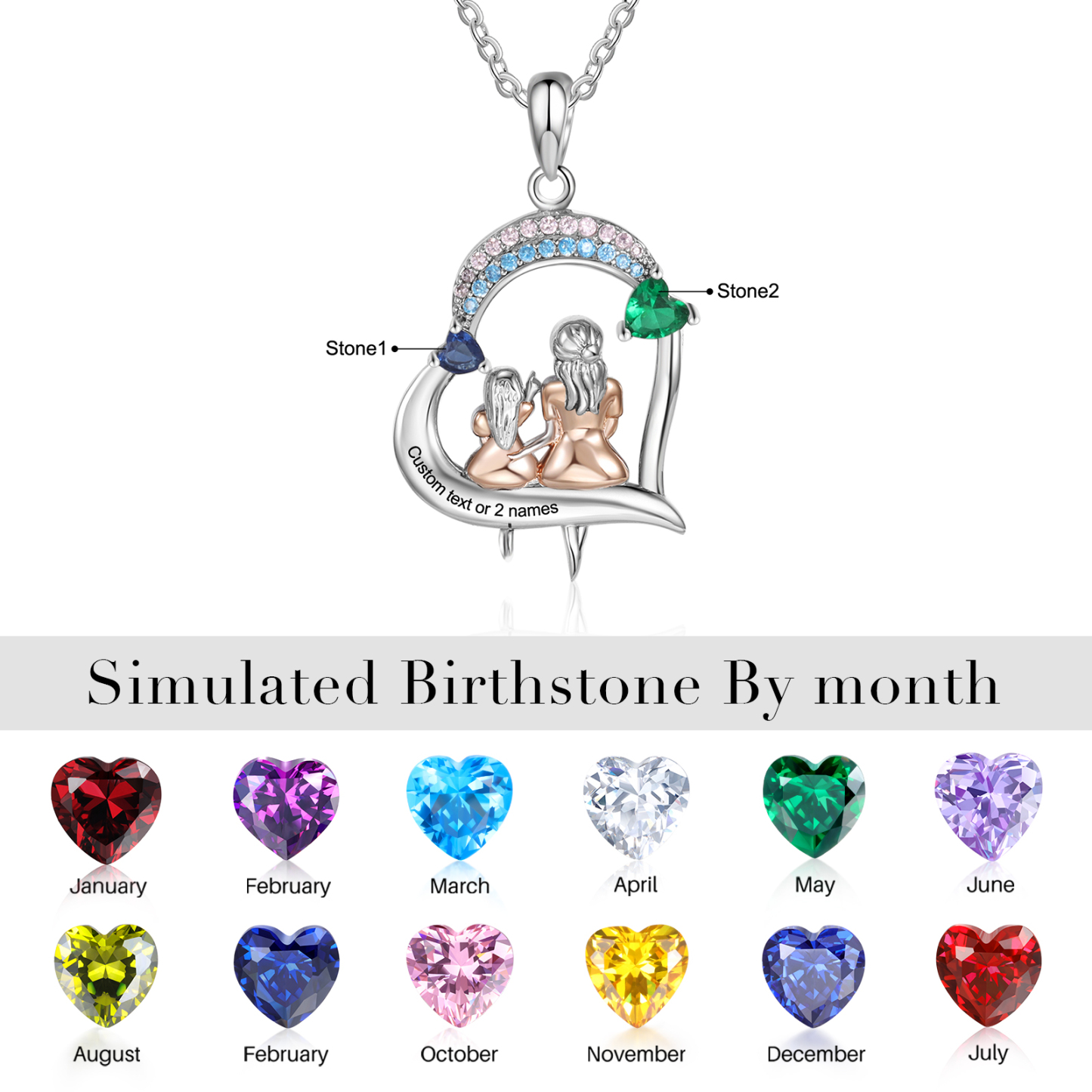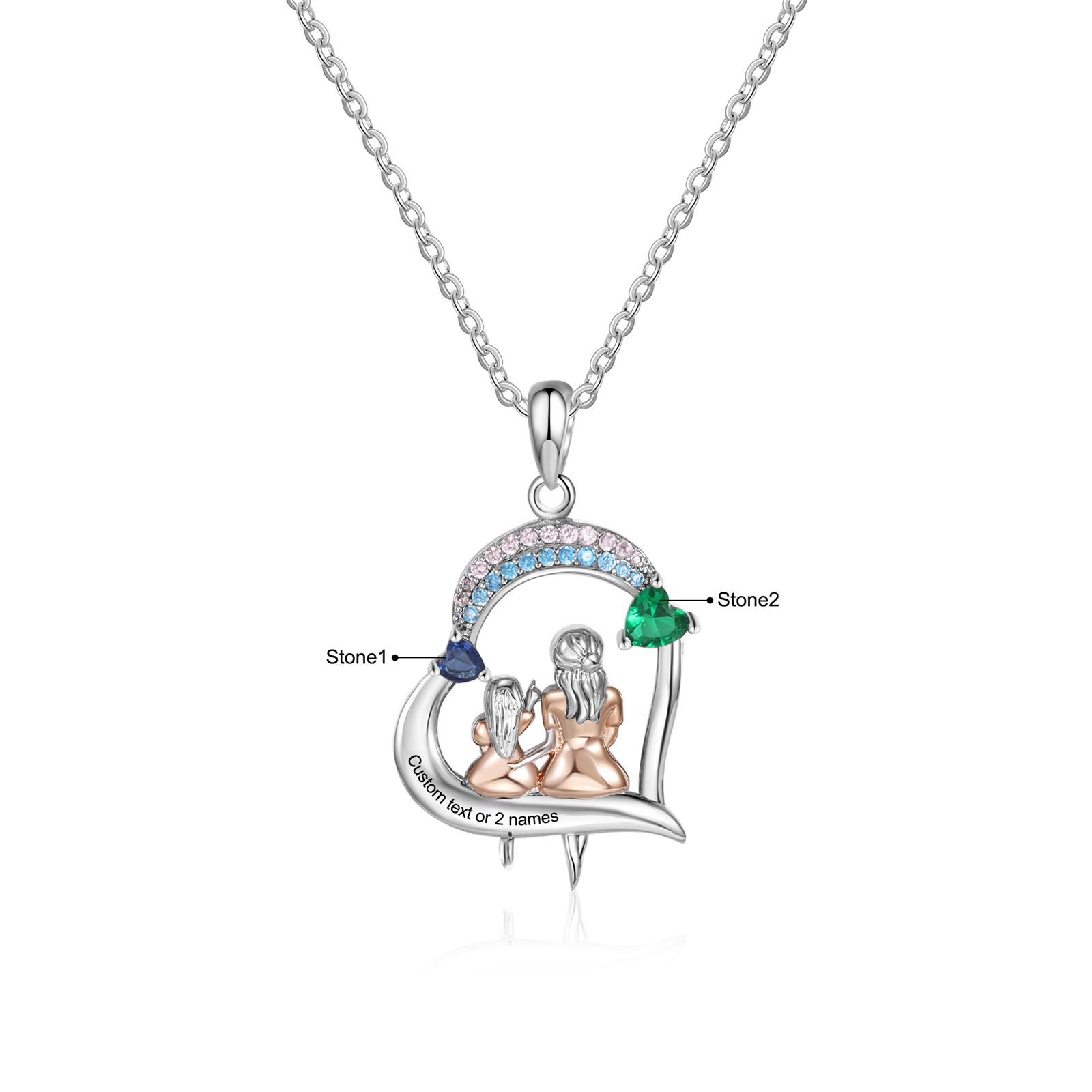Collar de corazón mamá e hija 1 texto y 2 piedras personalizados
