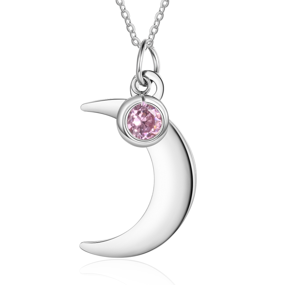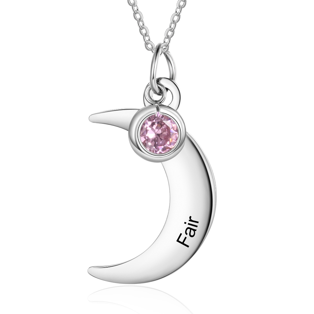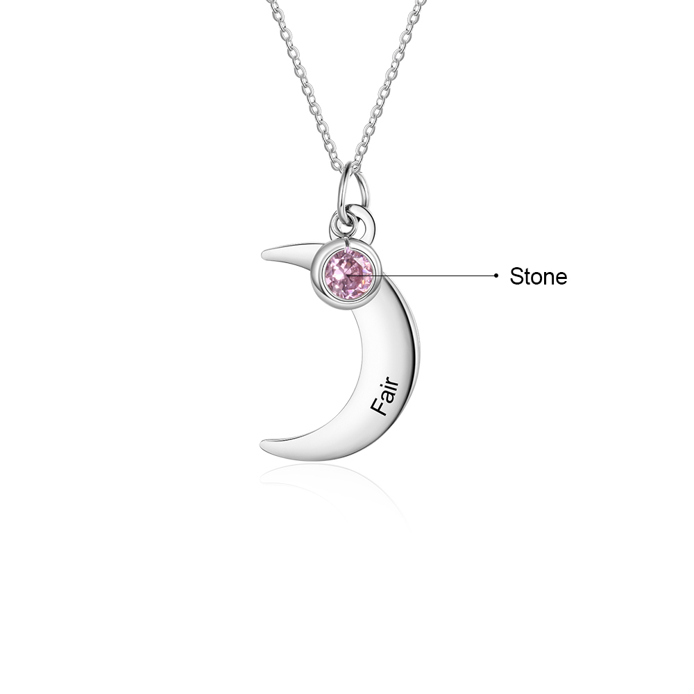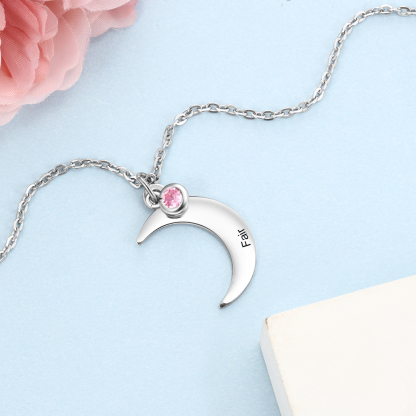 Collar para mujer de luna 1 nombre personalizado y 1 piedra de nacimiento