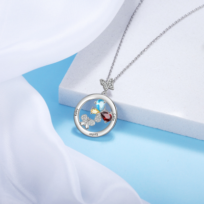 Collar para mujer de mariposa 3 nombres y 3 piedras de nacimiento personalizados