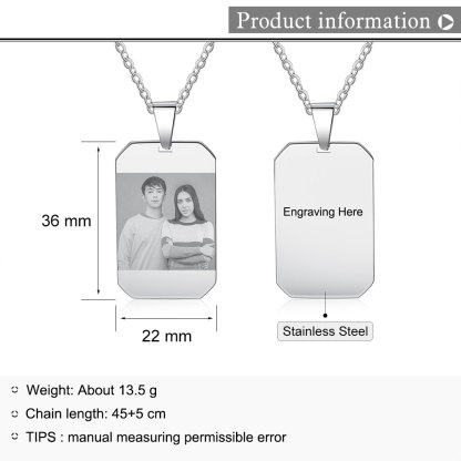 Collar para hombre de placa con 1 foto y 1 texto personalizado