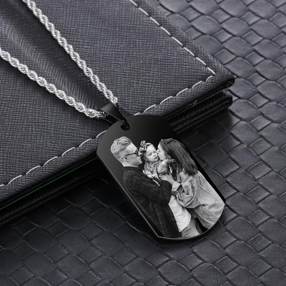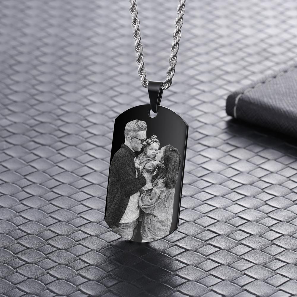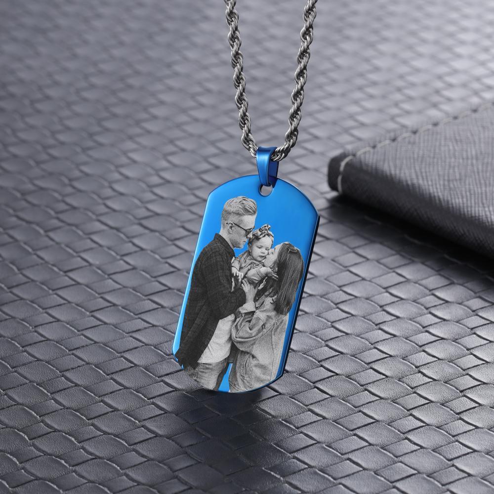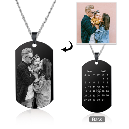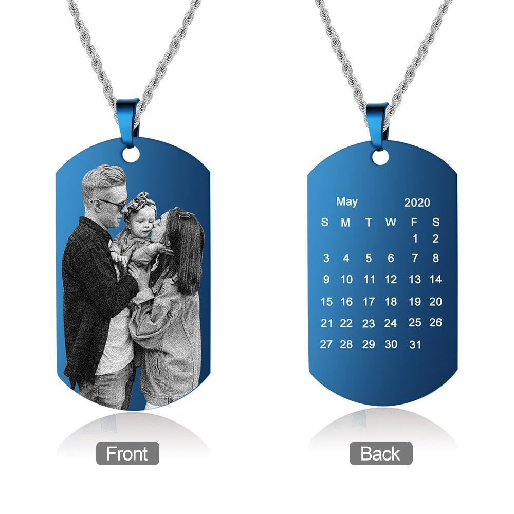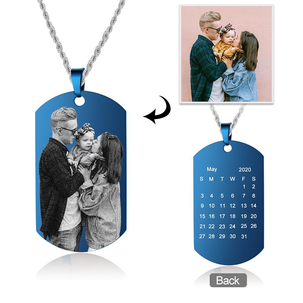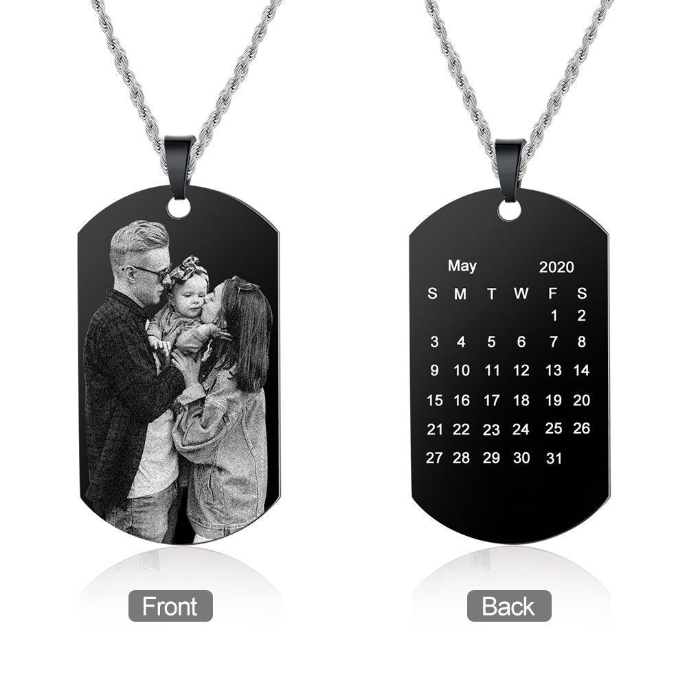 Collar para hombre de placa personalizado con 1 foto y calendario