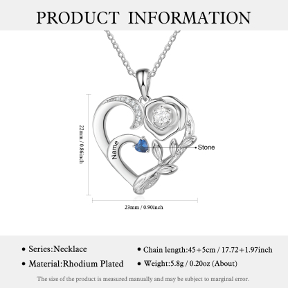 Collar para mujer de rosa con 1 nombre personalizado y 1 piedra de nacimiento