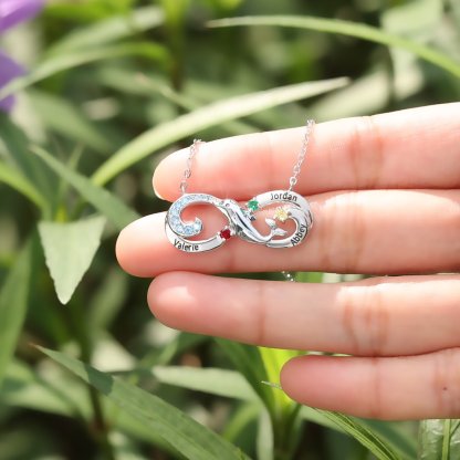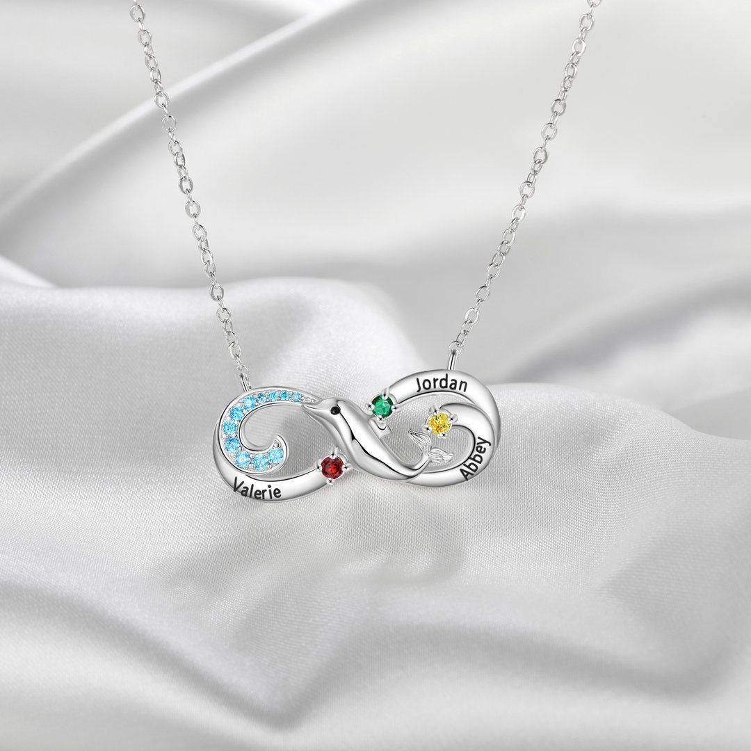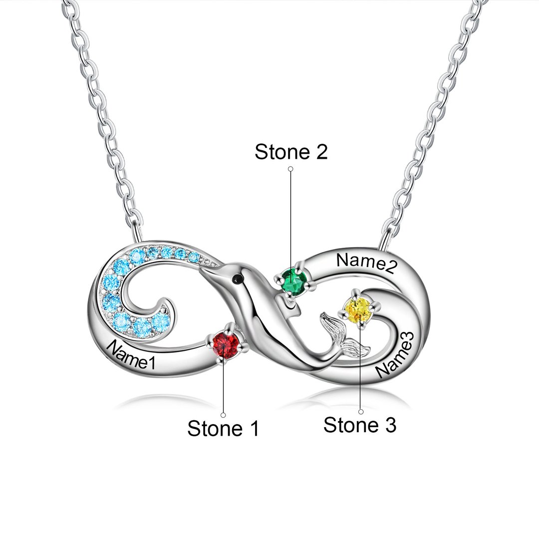 Collar para mujer infinito 3 nombres personalizados con 3 piedras de nacimiento delfín