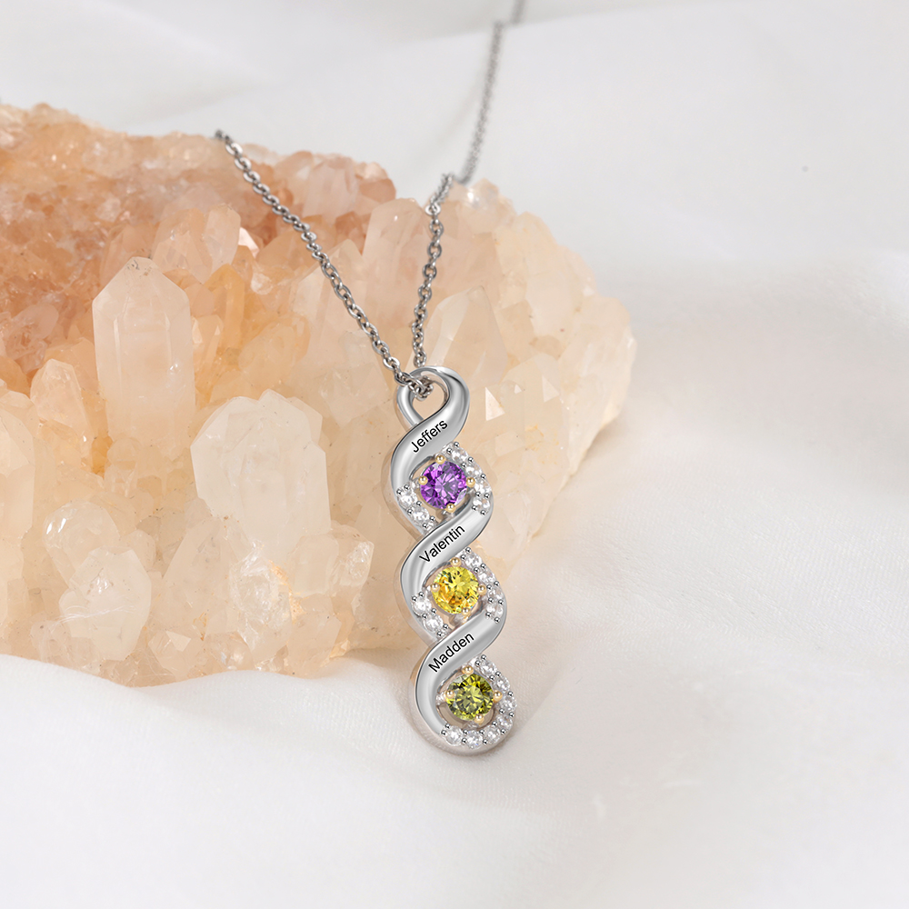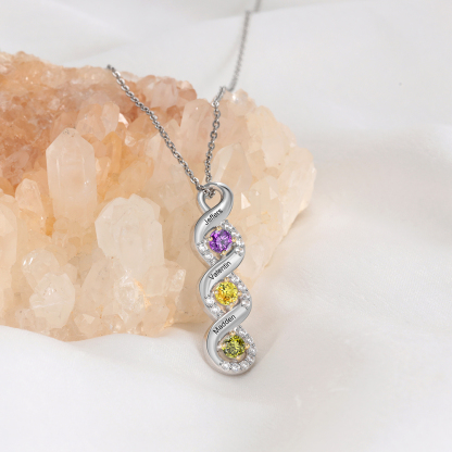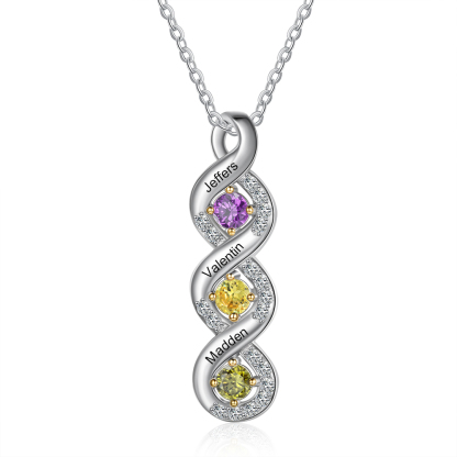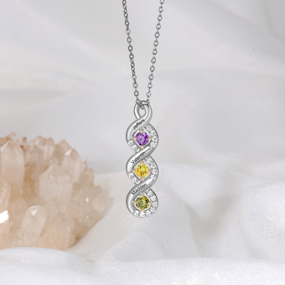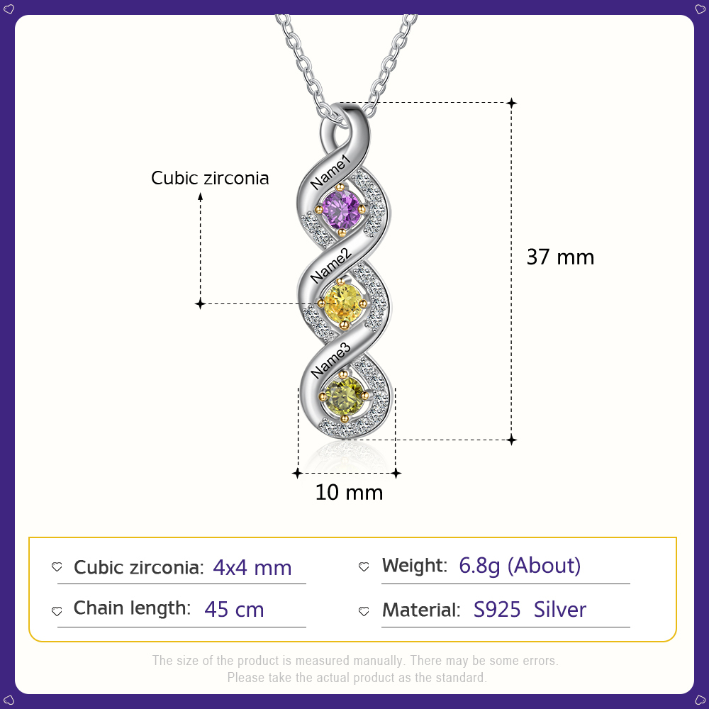 Collar para mujer "infinito" de plata 925 3 piedras de nacimiento y 3 nombres personalizados