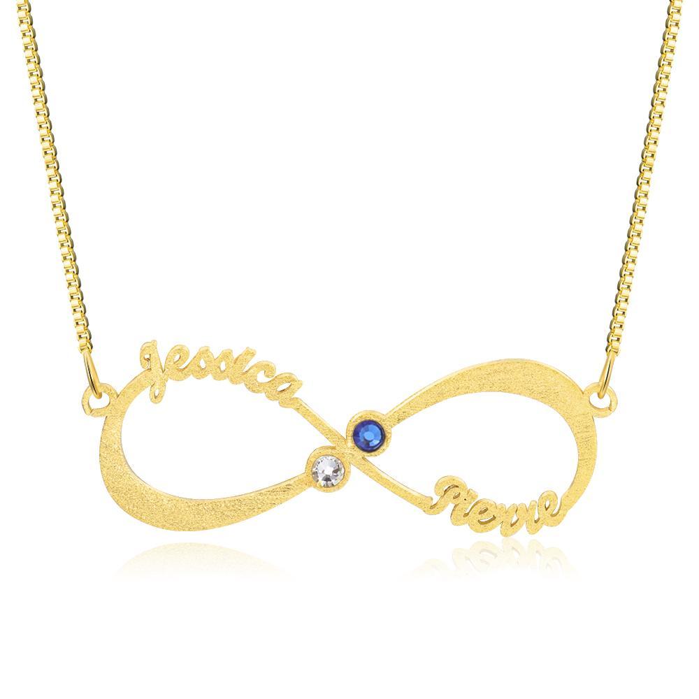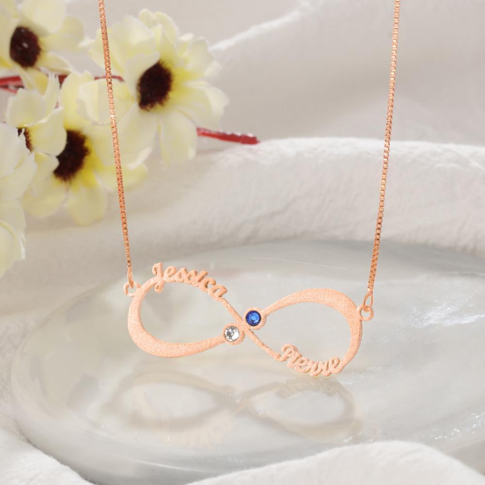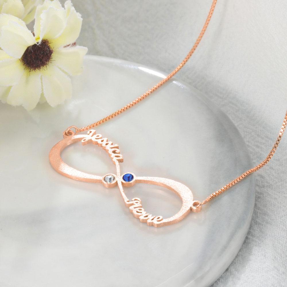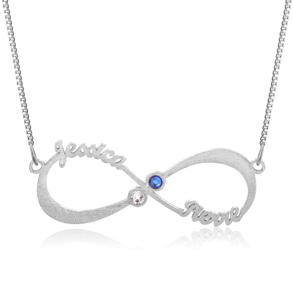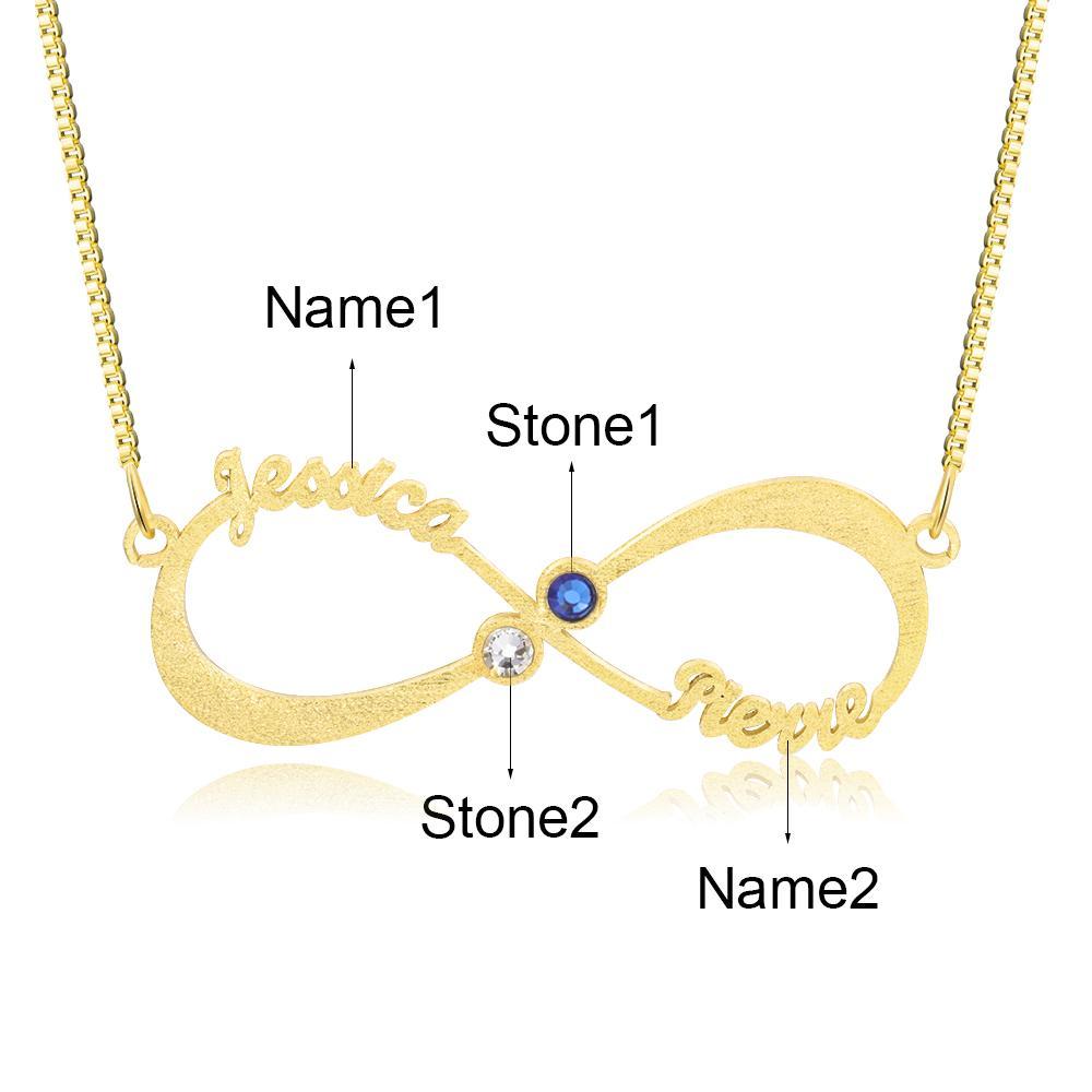 Collar para mujer infinito personalizado de 2 nombres con 2 piedras de nacimiento