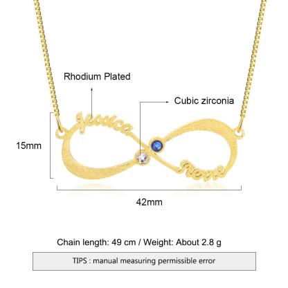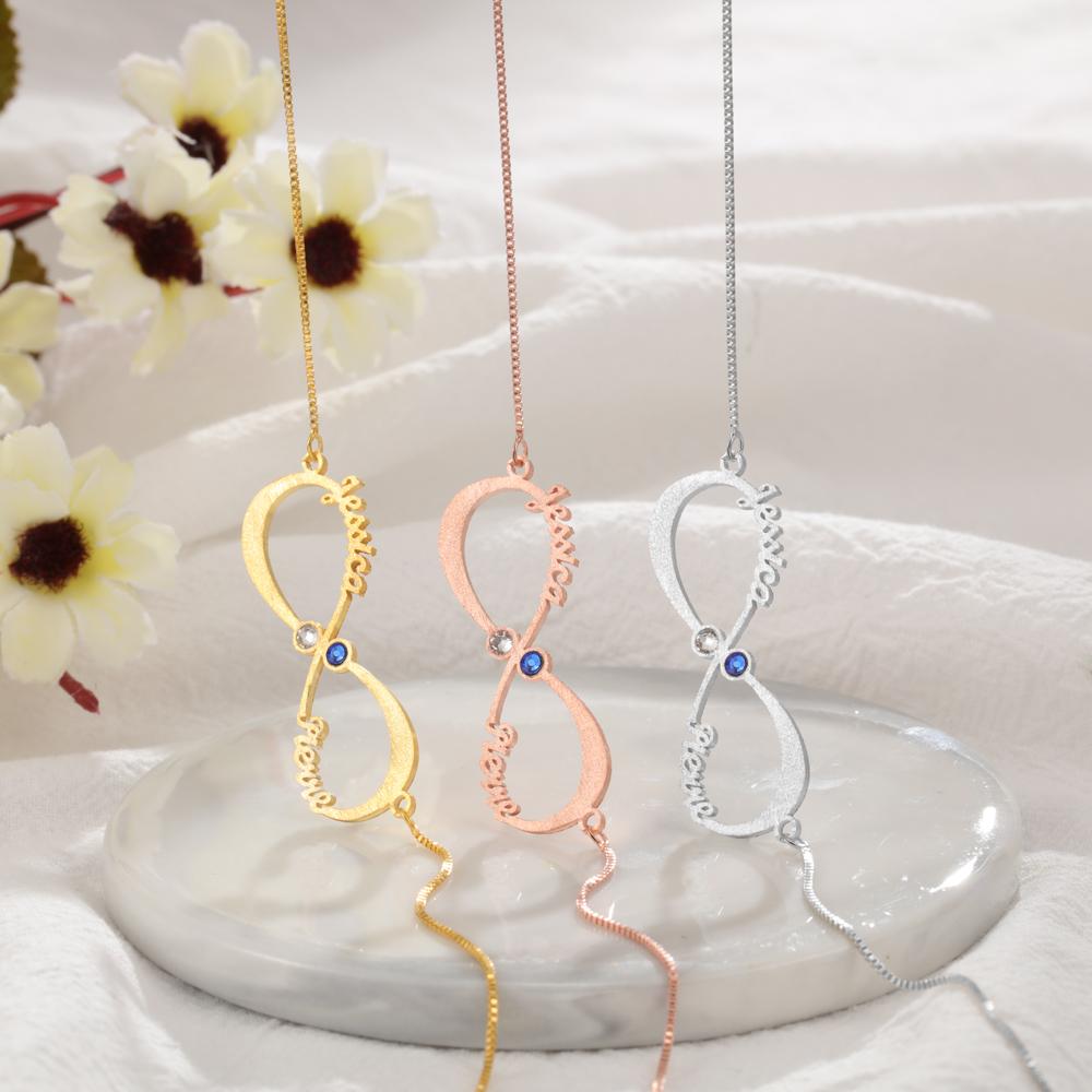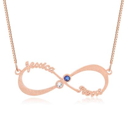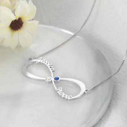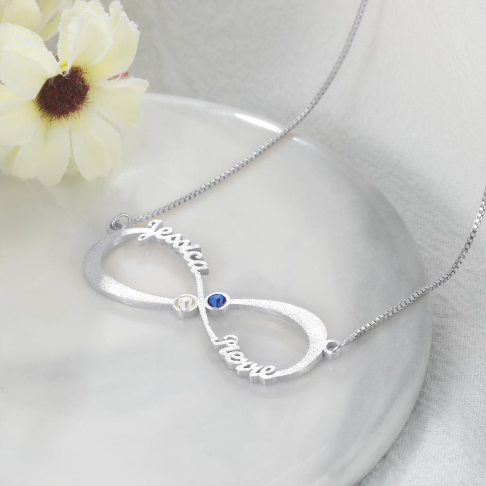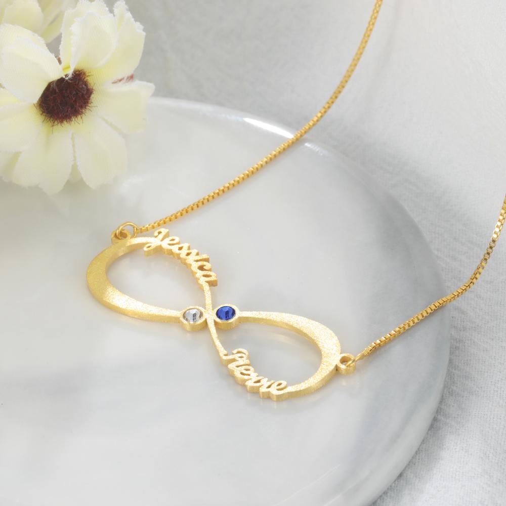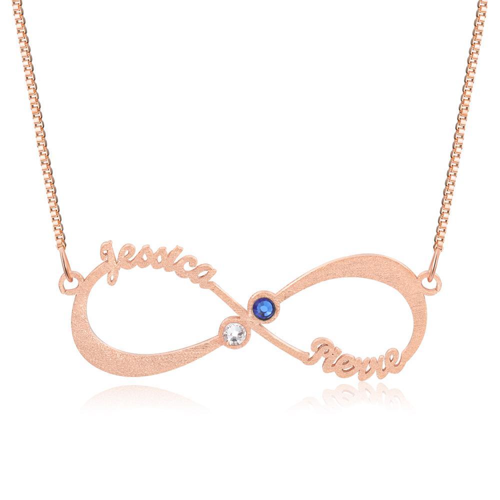 Collar para mujer infinito personalizado de 2 nombres con 2 piedras de nacimiento
