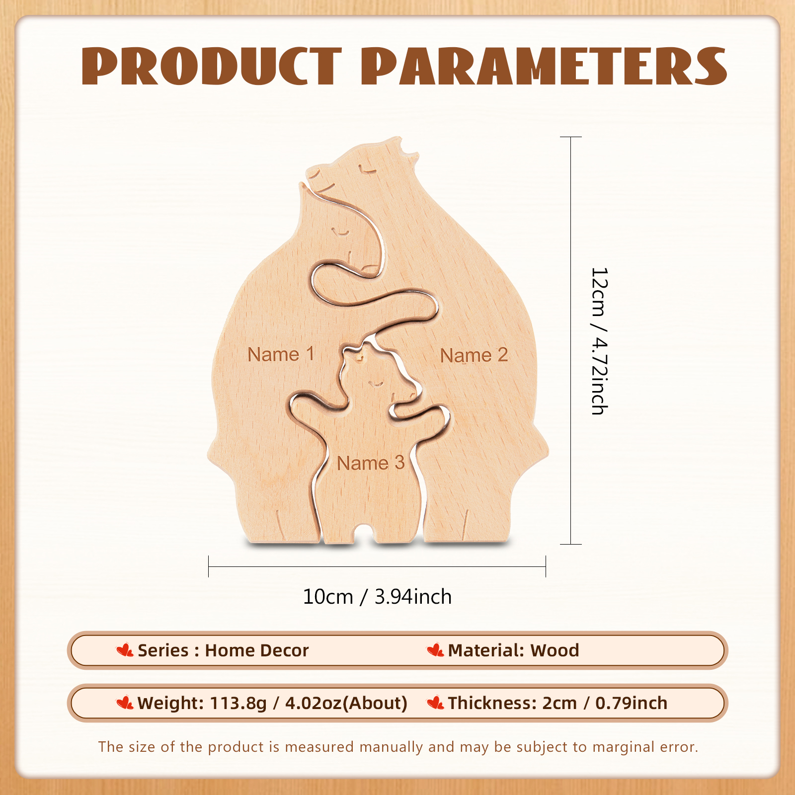 Decoración de madera Canguros abrazándose con 3 Nombres personalizados para la FAMILIA
