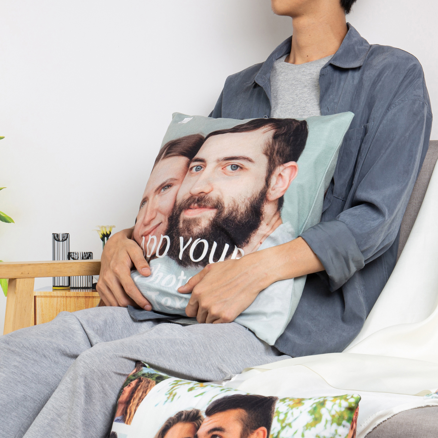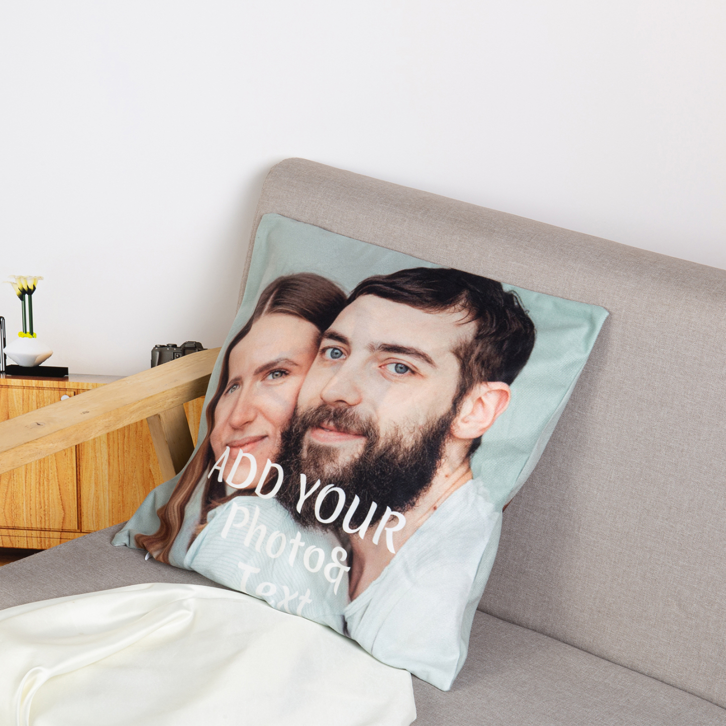Funda de Cojín 1 Texto y 1 Foto Personalizados 45x45cm Funda de Almohada