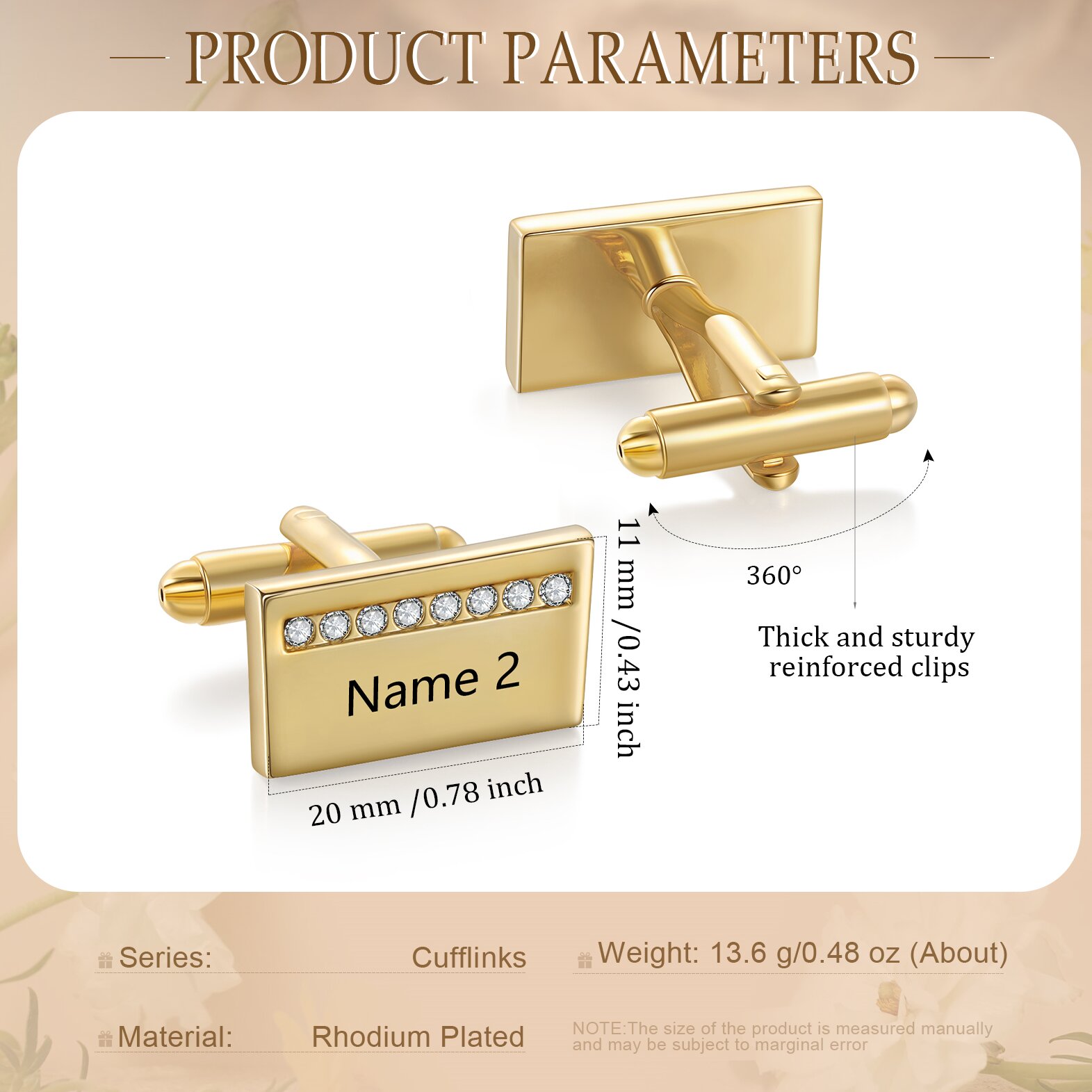 Hechos de acero inoxidable, los gemelos personalizados se pueden grabar con 2 monogramas. Te hará más elegante y con más temperamento.