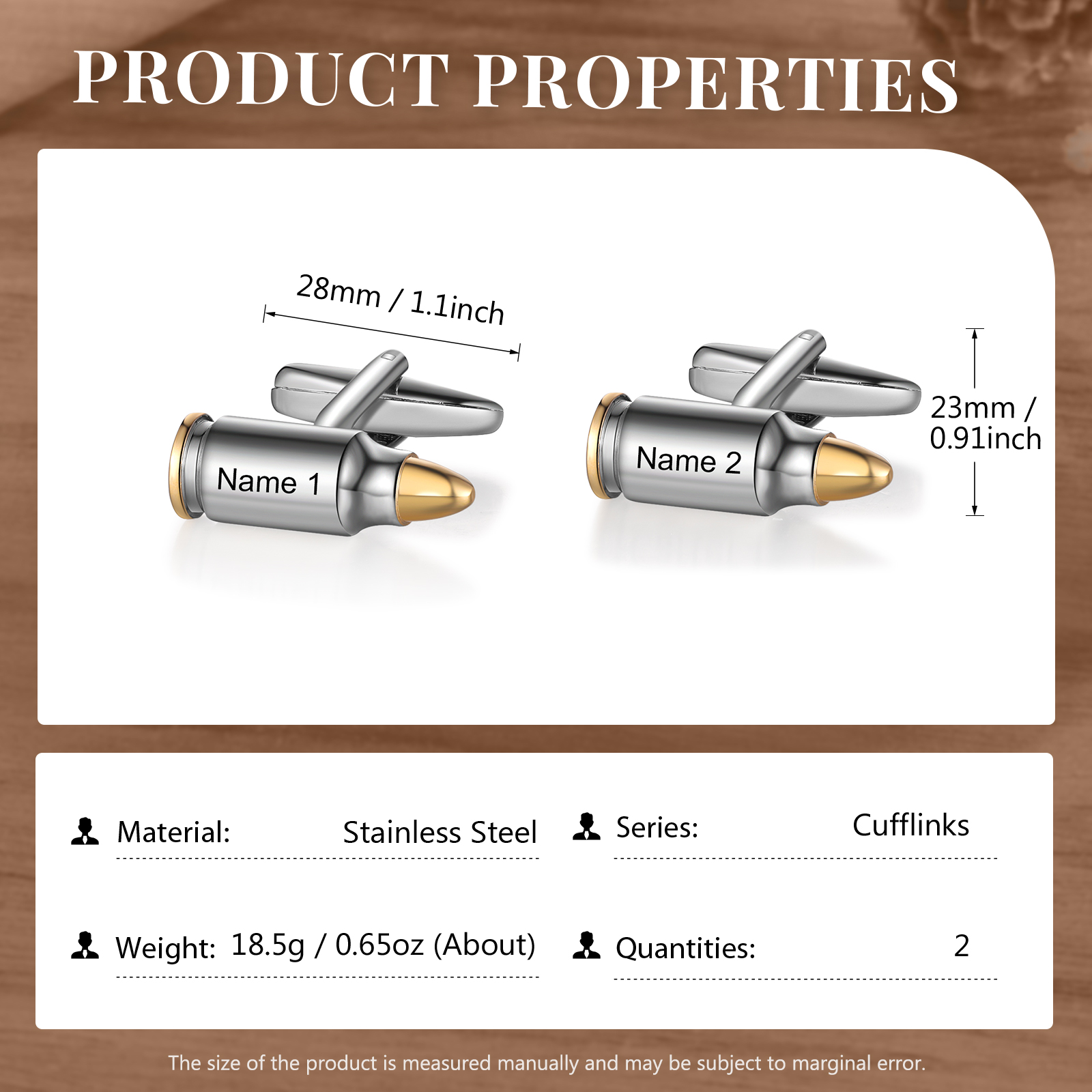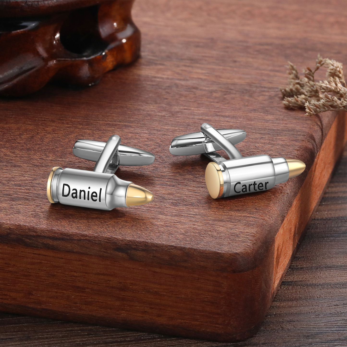 Gemelos en forma de bala con 2 nombres personalizados