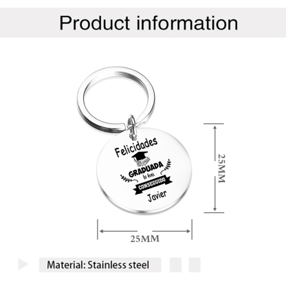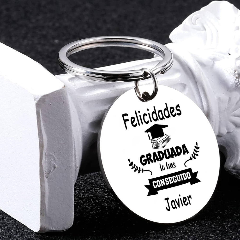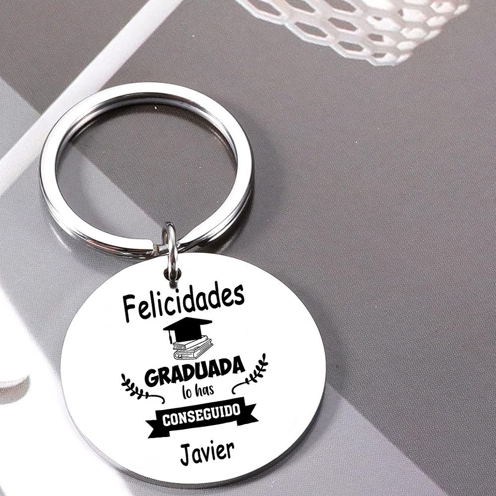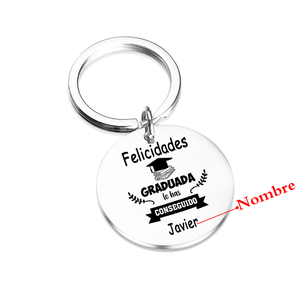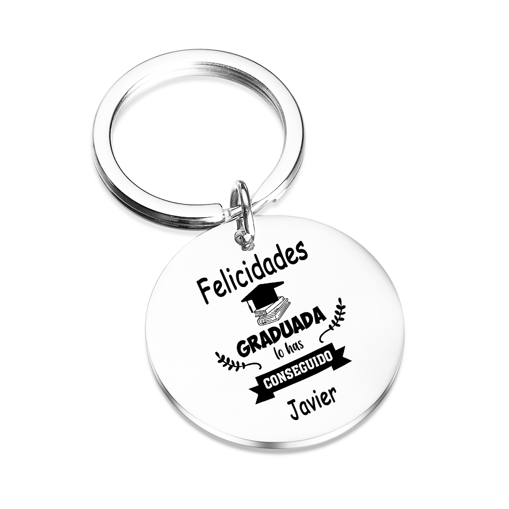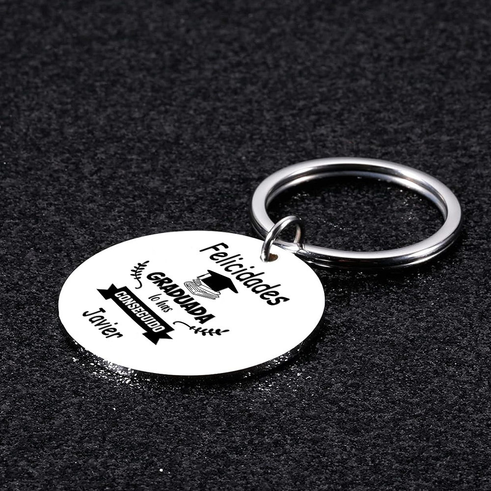 Graduación-Llavero de placa redonda personalizado con 1 nombre