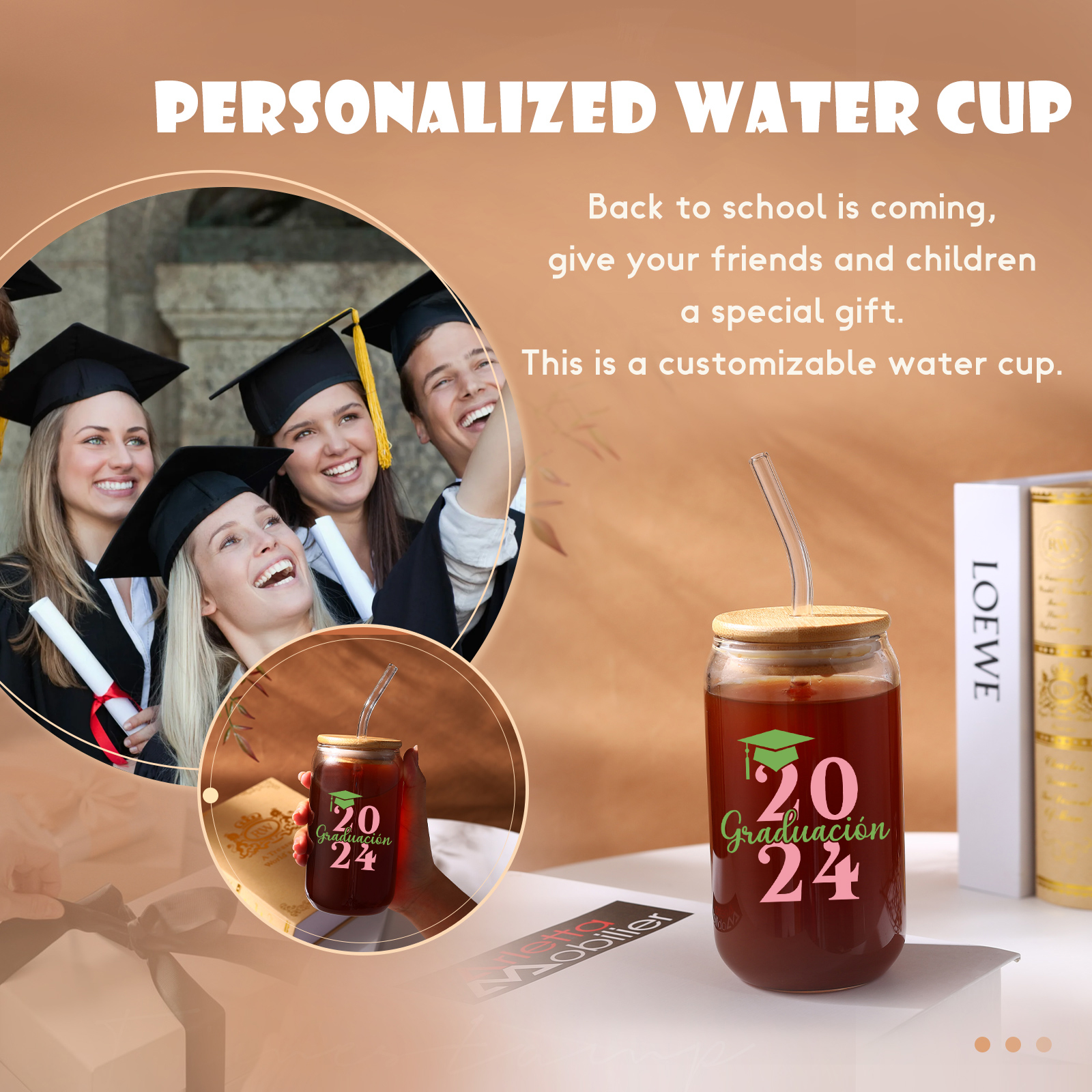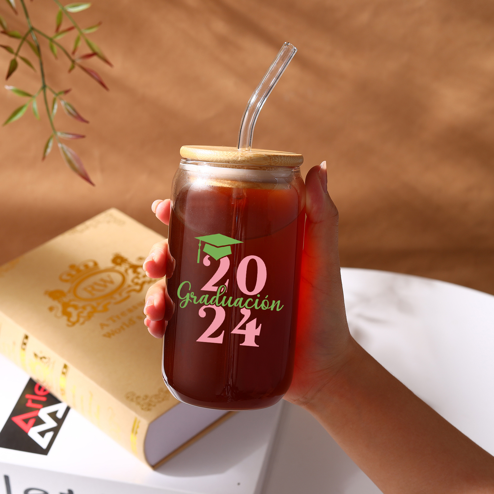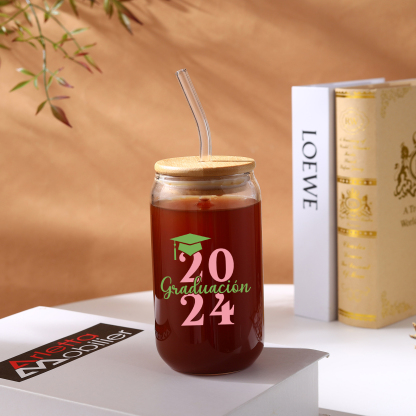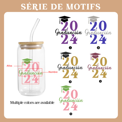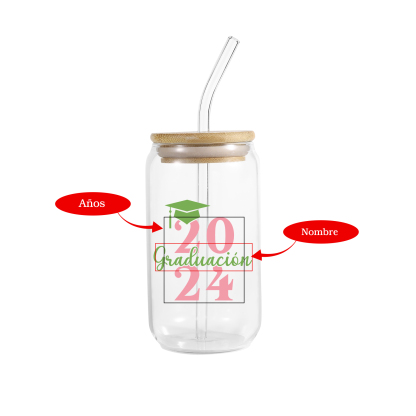 Graduación-Vaso con tapa y cañita personalizado con 1 nombre y año