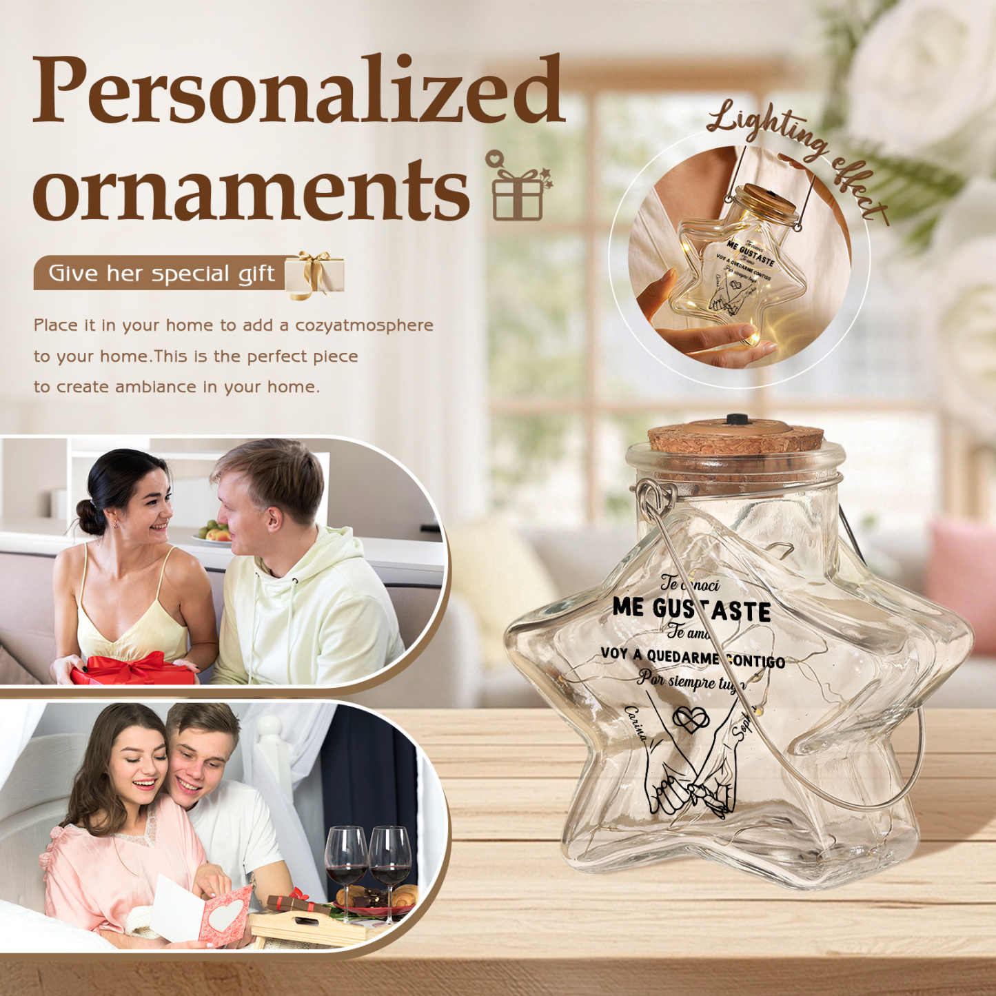 Lámpara Estrella Personalizada con Nombres – Tarro de Cristal Luminoso LED, Regalo para Pareja