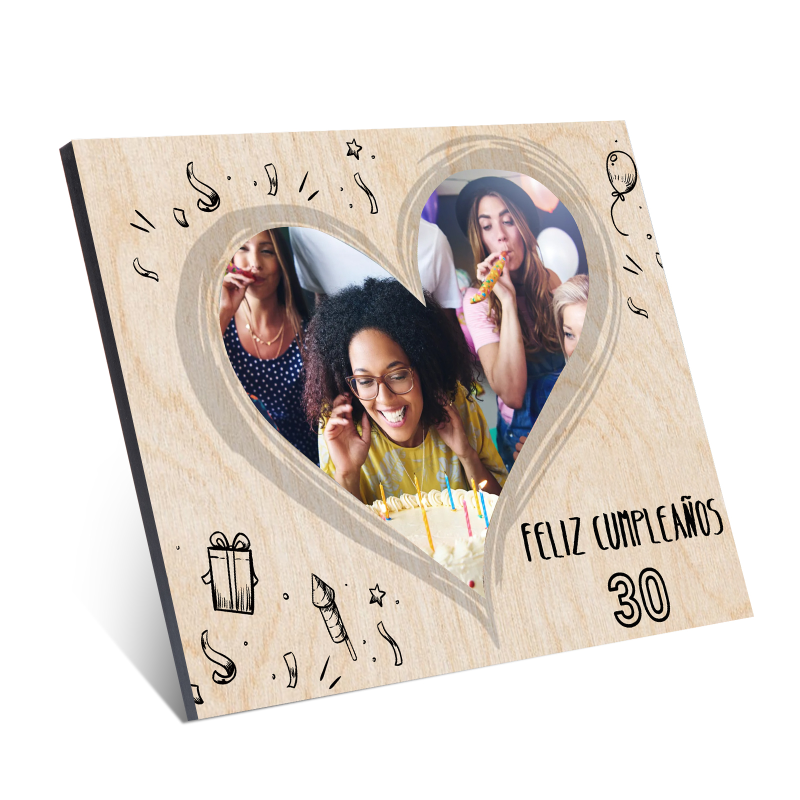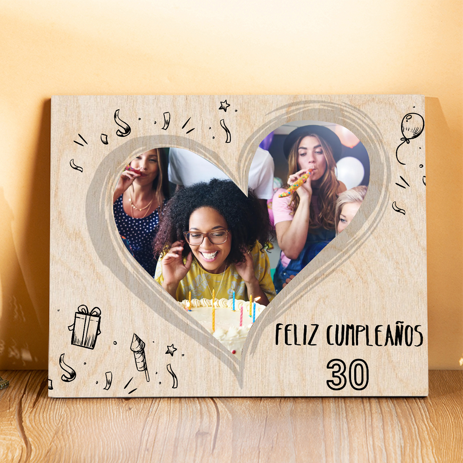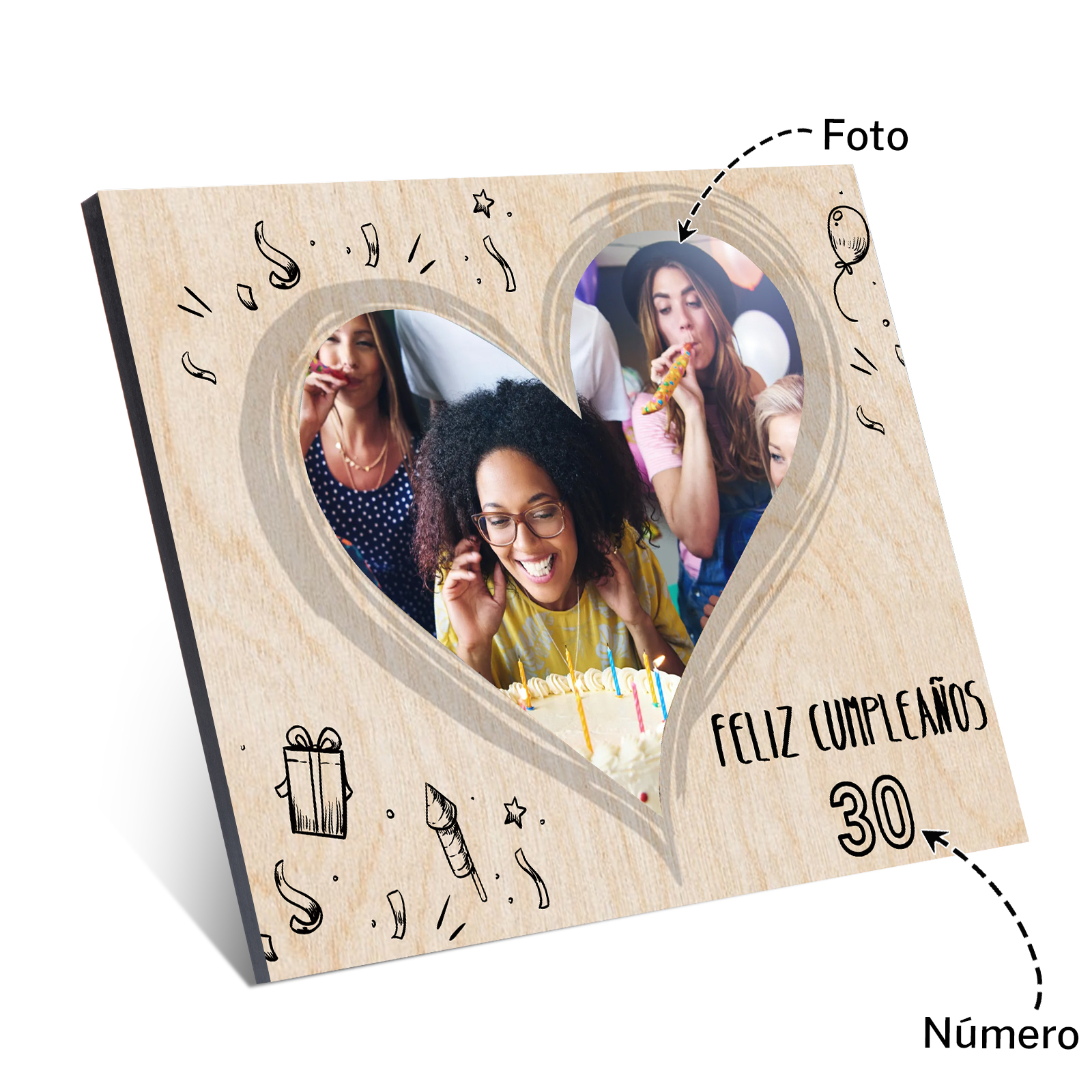 Lámina marco de madera feliz cumpleaños personalizado con foto y número