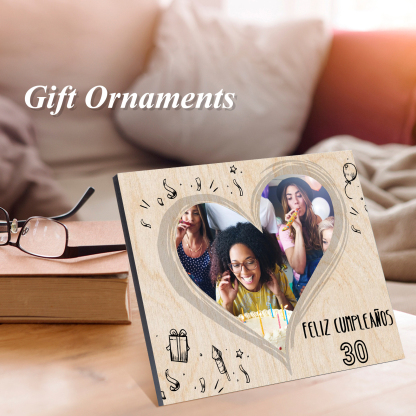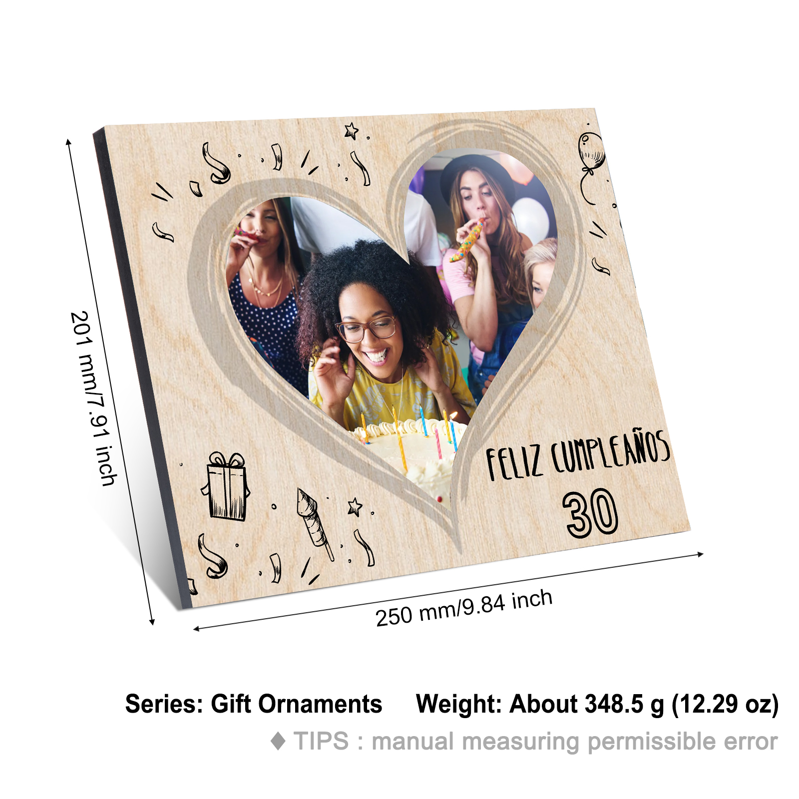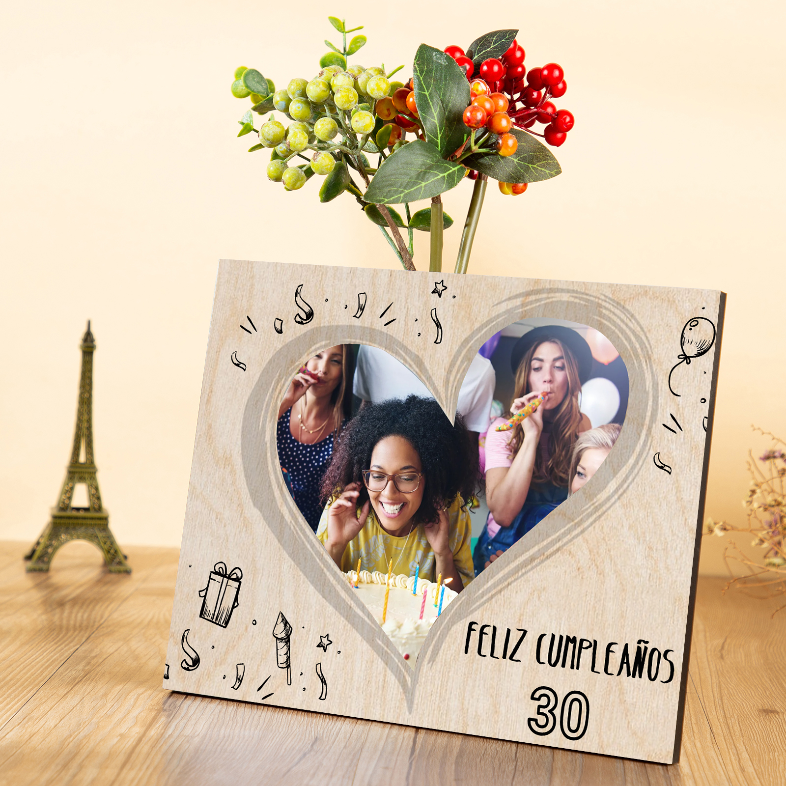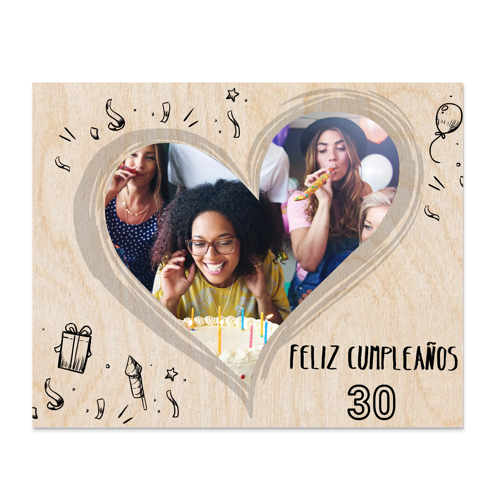 Lámina marco de madera feliz cumpleaños personalizado con foto y número